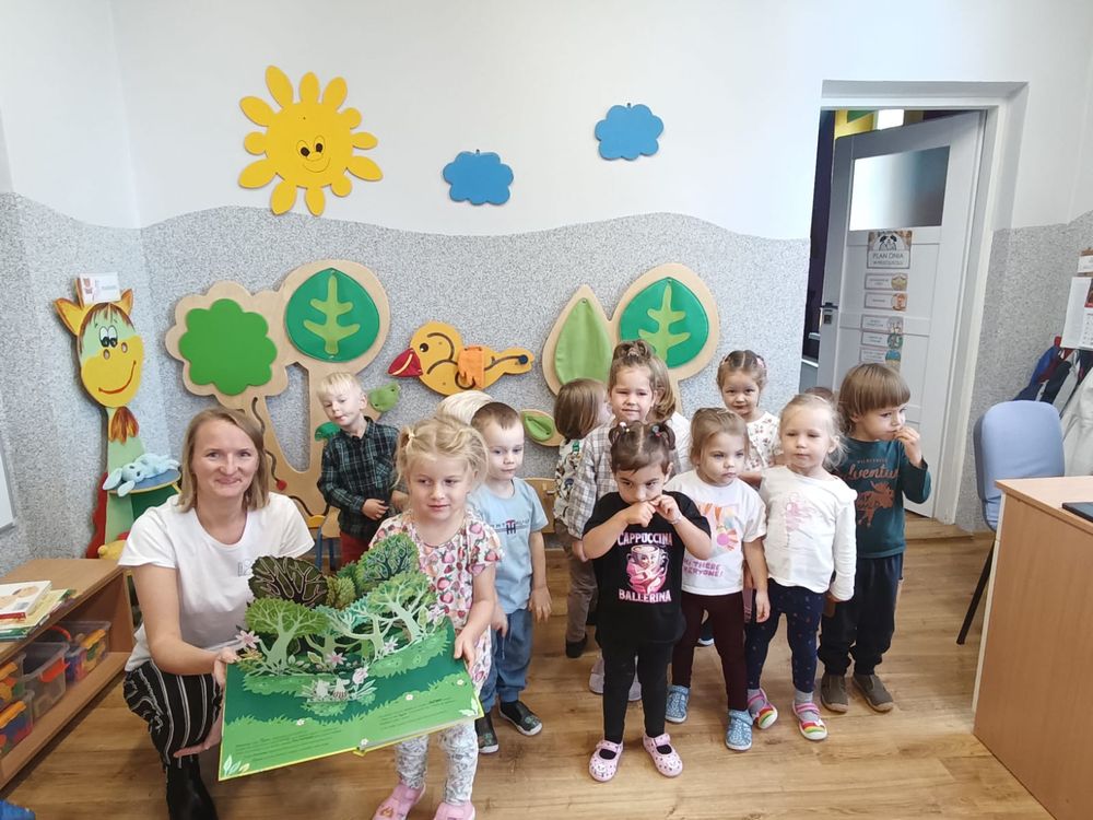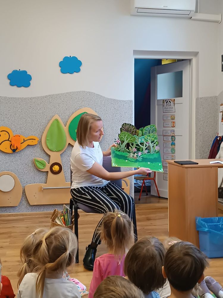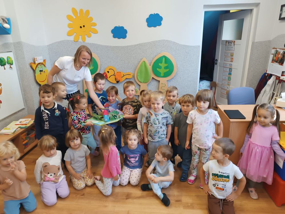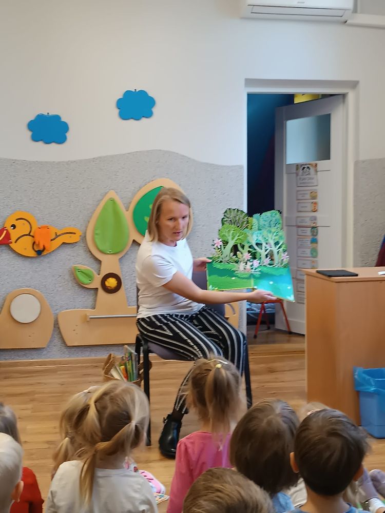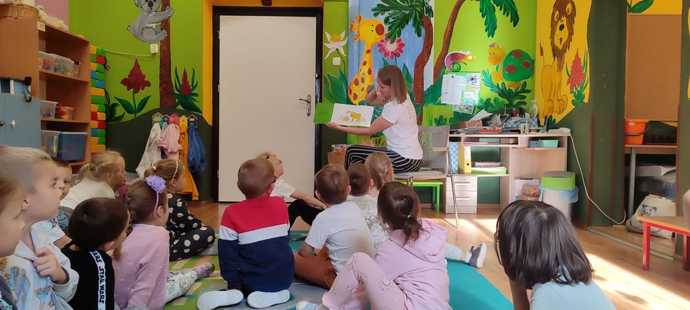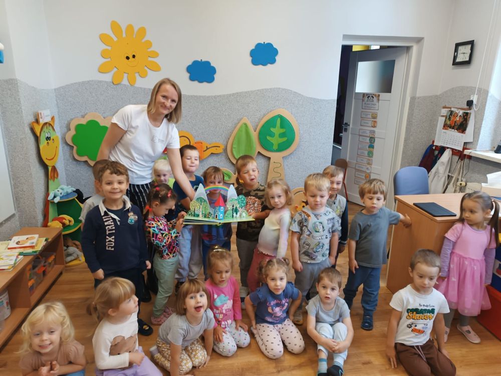 Dnia 26.09.2025 obchodziliśmy w przedszkolu Dzień Głośnego Czytania, którego celem jest promocja głośnego czytania, rozwijanie wyobraźni, słownictwa i pamięci. Naszym gościem specjalnym była Pani z Gminnej Biblioteki Publicznej w Grojcu, która czytała dla młodszych i starszych przedszkolaków teksty znane i nieznane z pięknie wydanych książek. Serdecznie dziękujemy za czas poświęcony szerzeniu czytelnictwa wśród dzieci.