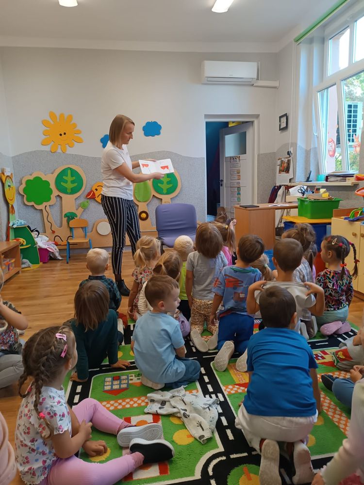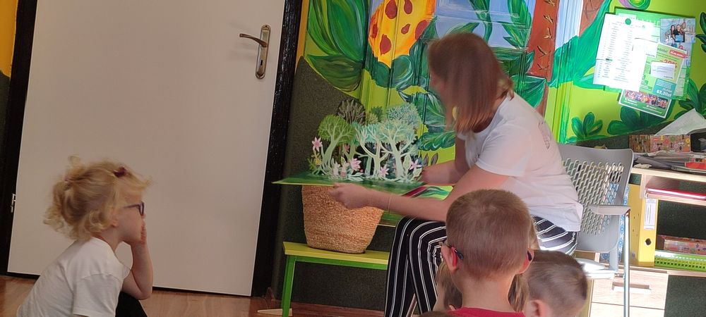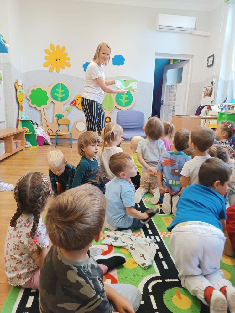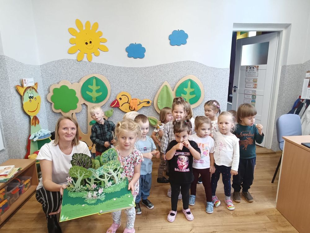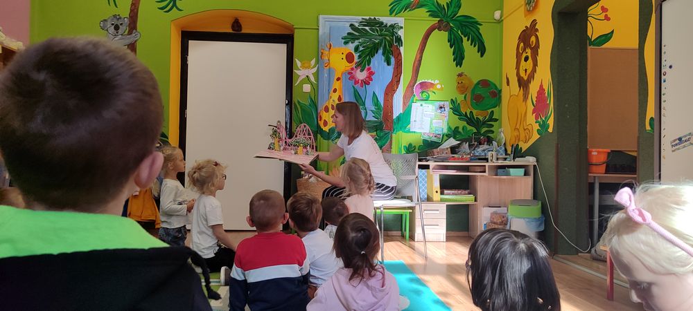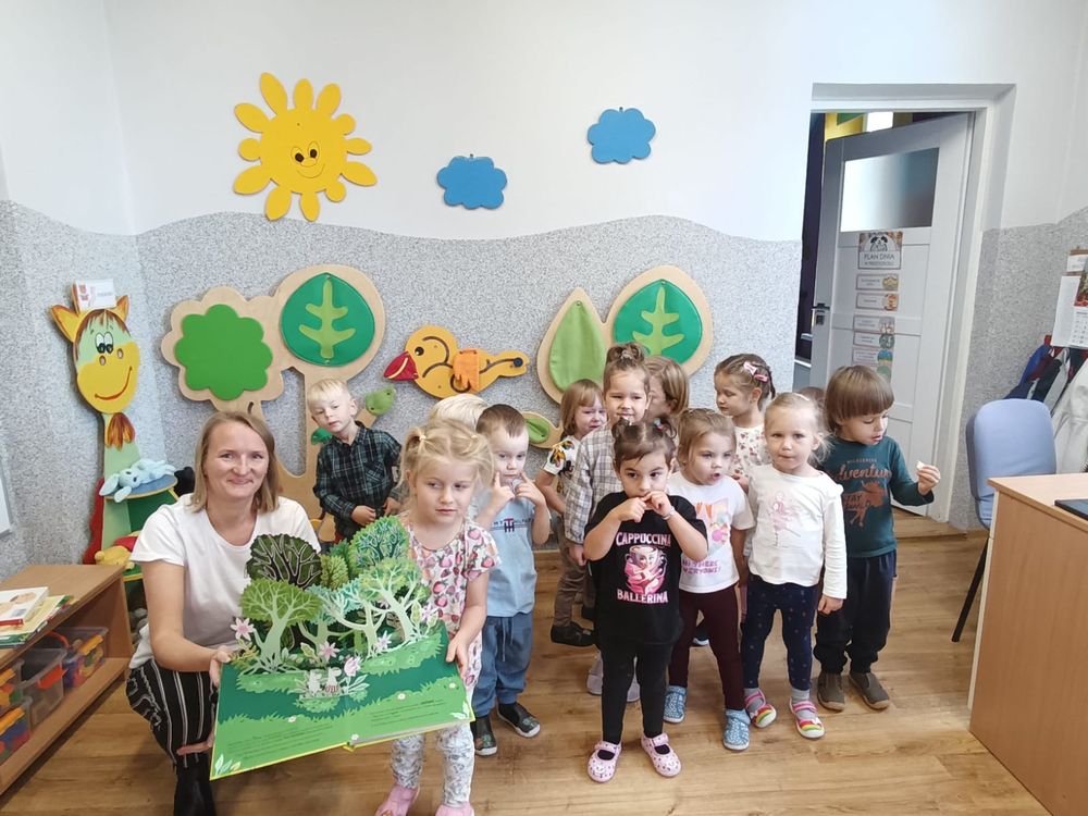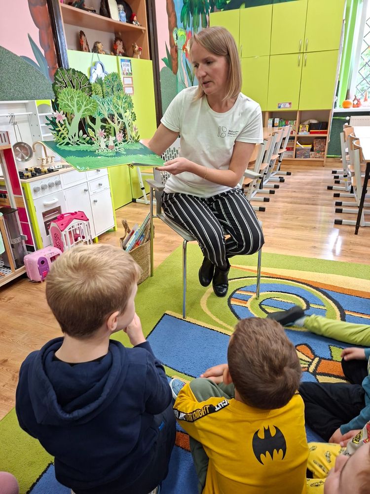 Dnia 26.09.2025 obchodziliśmy w przedszkolu Dzień Głośnego Czytania, którego celem jest promocja głośnego czytania, rozwijanie wyobraźni, słownictwa i pamięci. Naszym gościem specjalnym była Pani z Gminnej Biblioteki Publicznej w Grojcu, która czytała dla młodszych i starszych przedszkolaków teksty znane i nieznane z pięknie wydanych książek. Serdecznie dziękujemy za czas poświęcony szerzeniu czytelnictwa wśród dzieci.