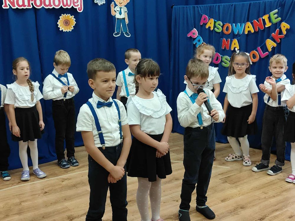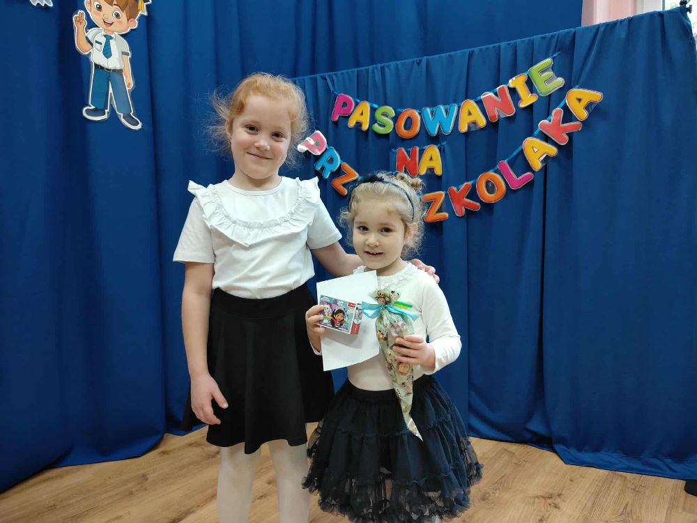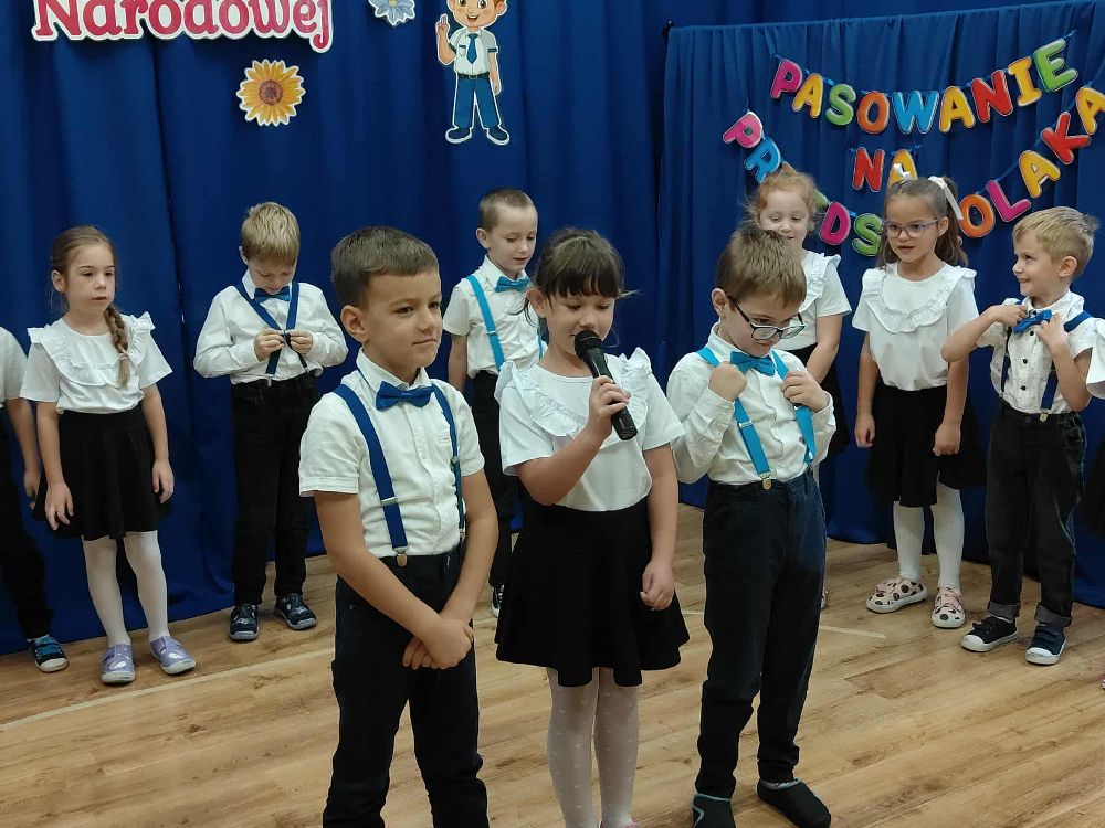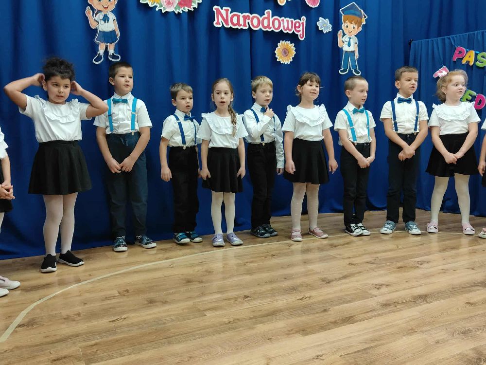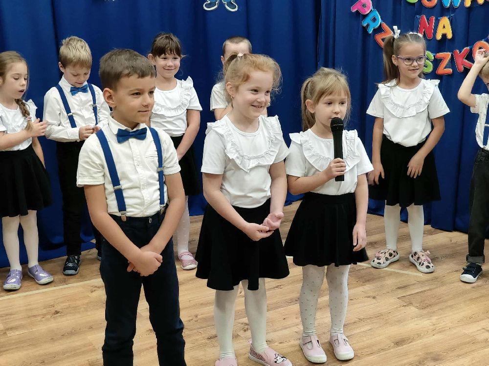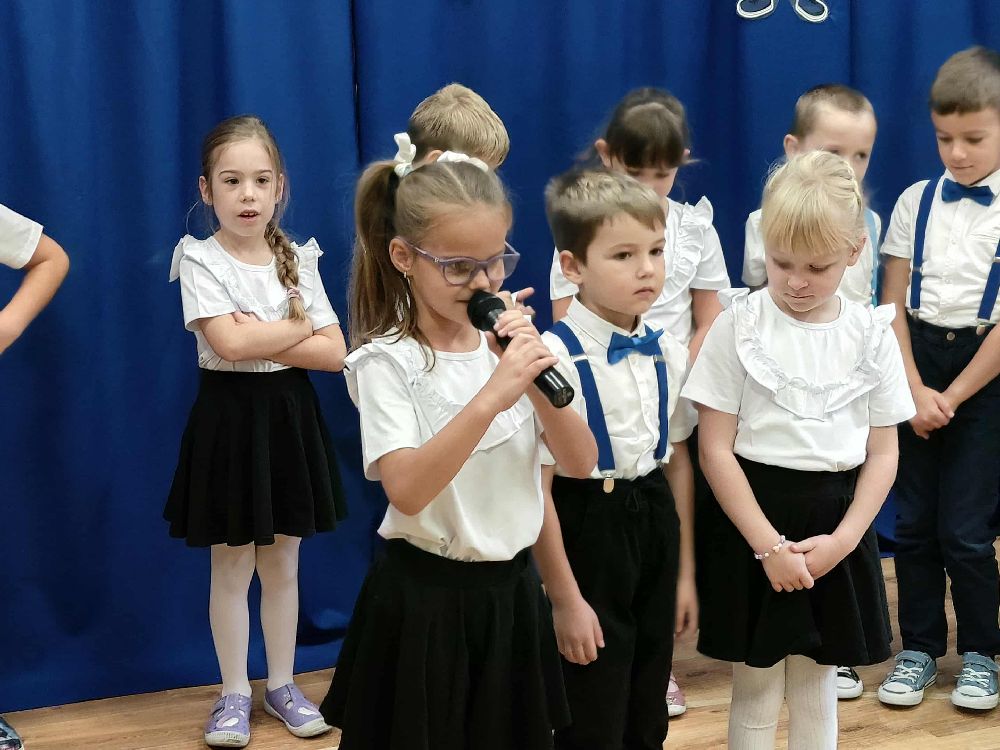 Najważniejszym momentem uroczystości było oczywiście Pasowanie na Przedszkolaka. Najmłodsze dzieci złożyły uroczyste przyrzeczenie, po czym pani dyrektor dokonała symbolicznego pasowania „czarodziejskim ołówkiem”.