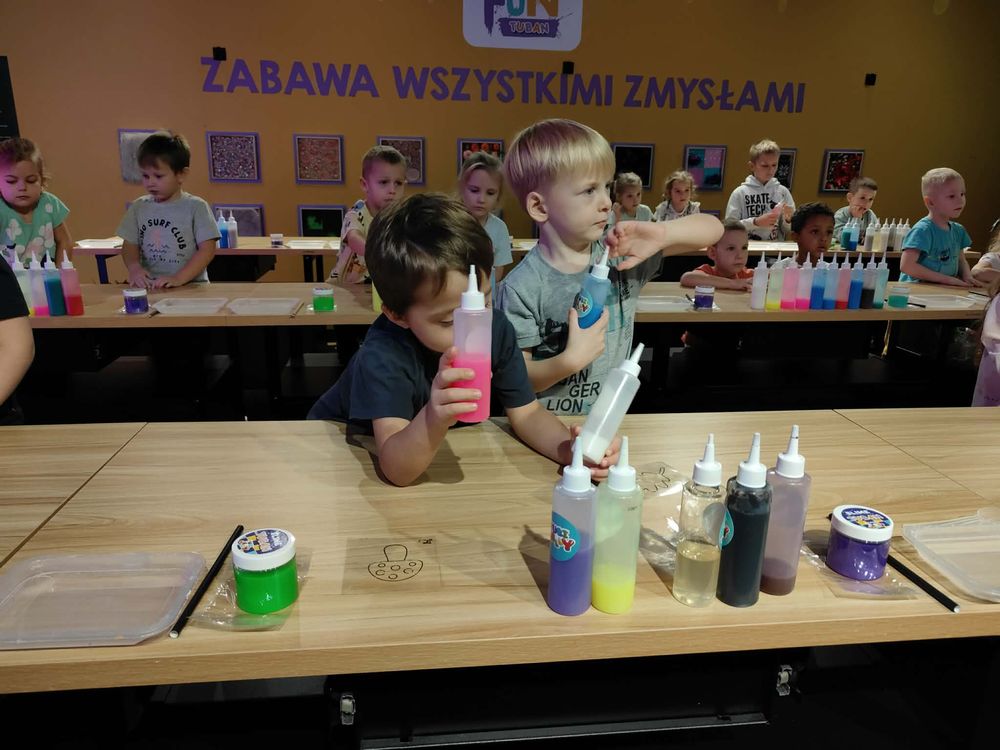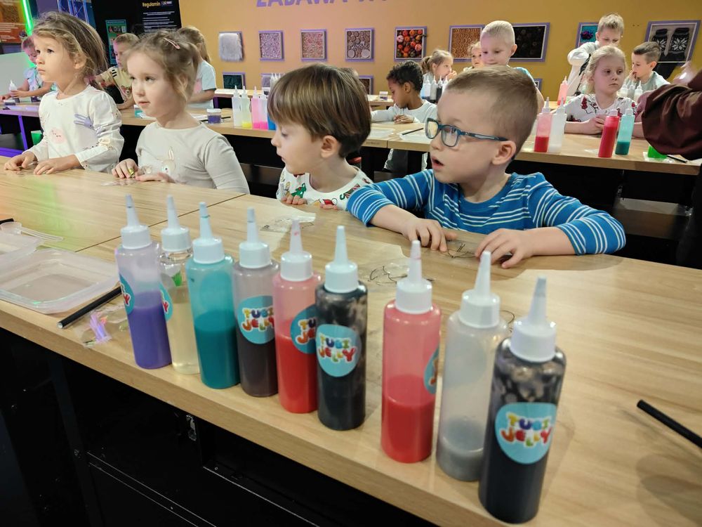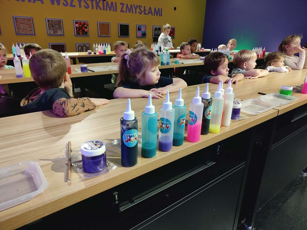 Podczas pobytu przedszkolaki wzięły udział w warsztatach sensorycznych, dzięki którym mogły doświadczać świata wszystkimi zmysłami. Zajęcia dostarczyły im wielu radości, a jednocześnie wspierały rozwój wyobraźni, koordynacji oraz umiejętności współpracy. Wycieczka była pełna uśmiechu, zabawy i niezapomnianych wrażeń.
