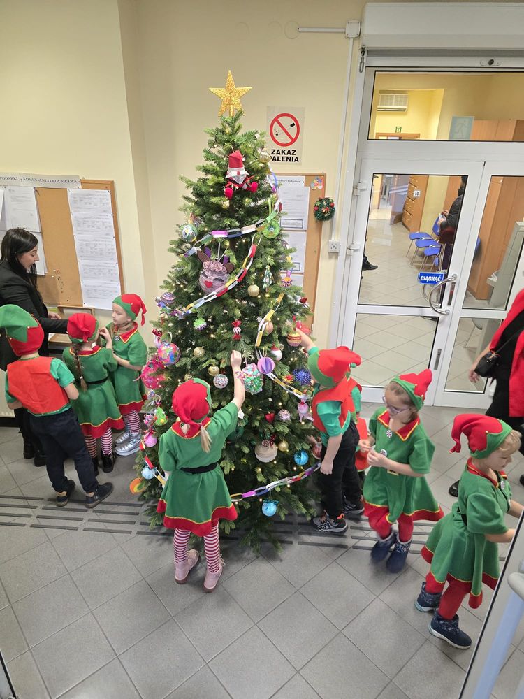 W dniu 4 grudnia nasze przedszkolaki, przebrane w stroje elfów, wybrały się do Urzędu Gminy w Oświęcimiu, aby wspólnie ubierać choinkę. W wydarzeniu wzięli udział Wójt Gminy, Pan Mirosław Smolarek, oraz Pani Dyrektor Jolanta Zapała.