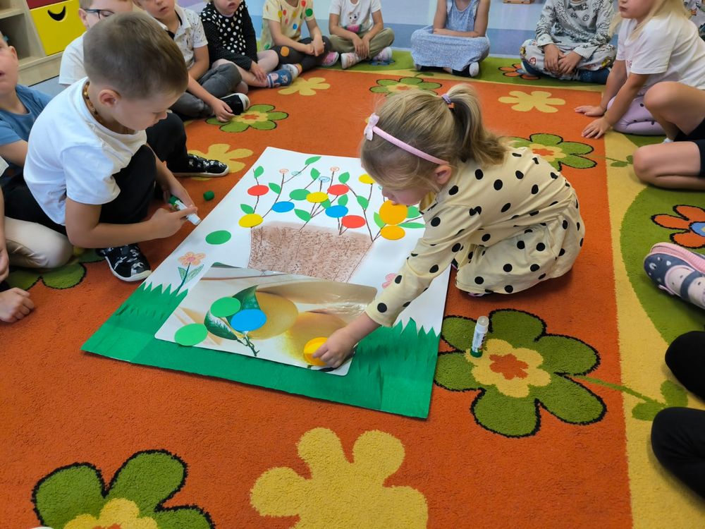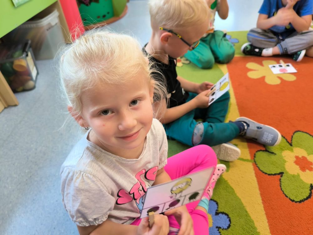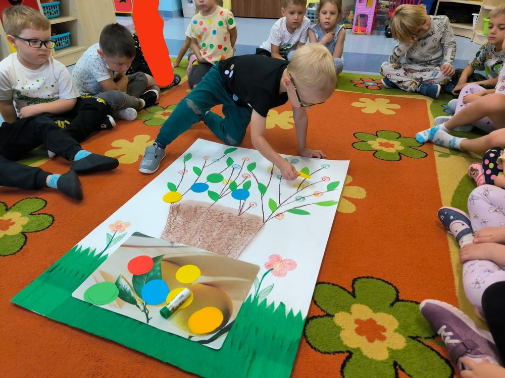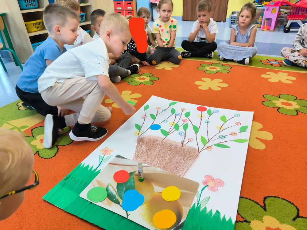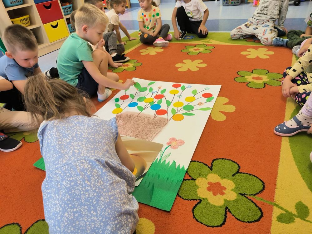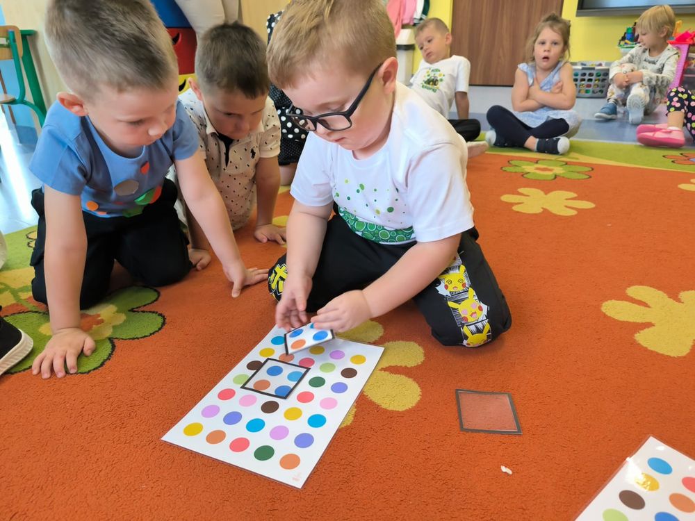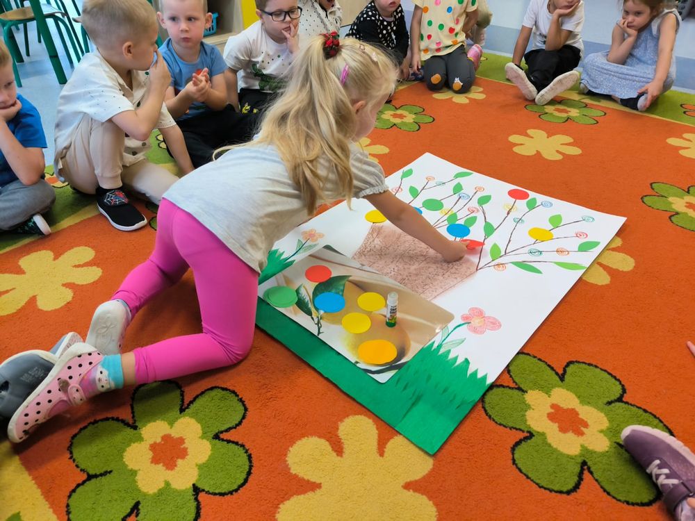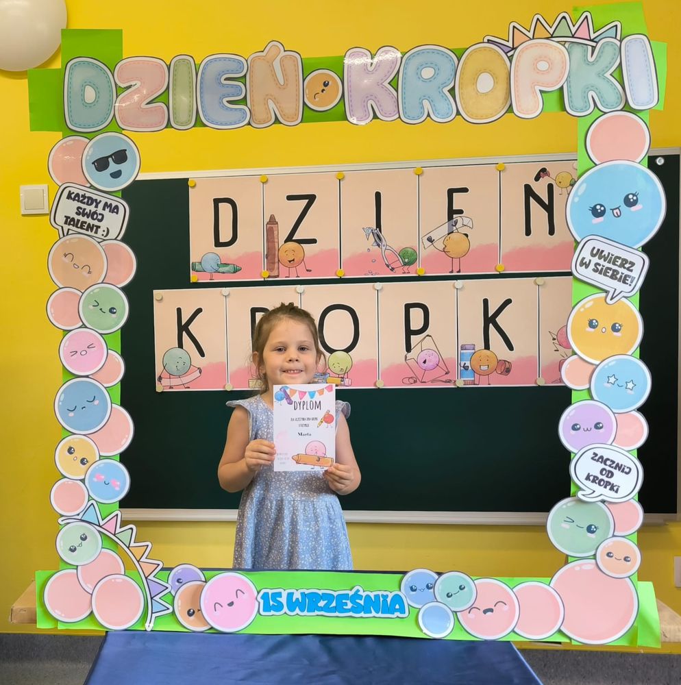 16 września dzieci z grupy Biedronek obchodziły Dzień Kropki. W trakcie zajęć poznały historię dziewczynki, która odkryła swój talent i odzyskała wiarę we własne możliwości. Na dzieci czekały różnorodne zadania: musiały odnaleźć cień pasujący do ilustracji oraz ćwiczyć swoją spostrzegawczość. Biedronki utrwalały także nazwy kolorów podczas wspólnej pracy plastycznej. Dodatkowo rozwijały swoją sprawność ruchową podczas zabawy z kolorowymi krążkami. Z wszystkimi zadaniami poradziły sobie doskonale. Na zakończenie zajęć, przedszkolaki miały wykonane zdjęcia oraz otrzymały pamiątkowy dyplom.