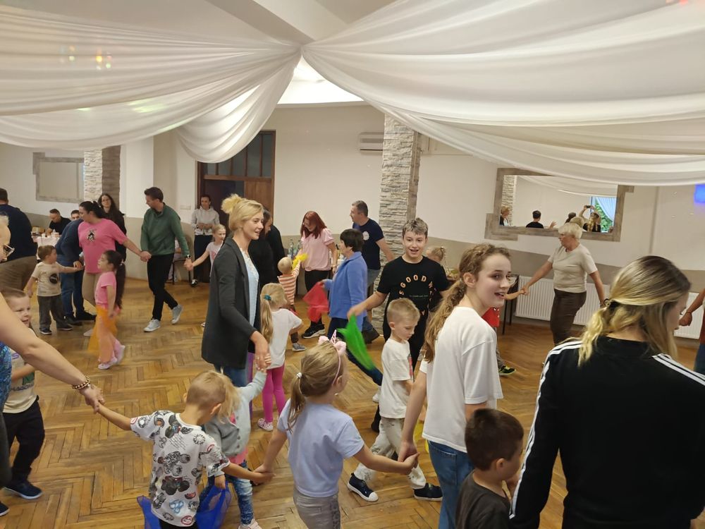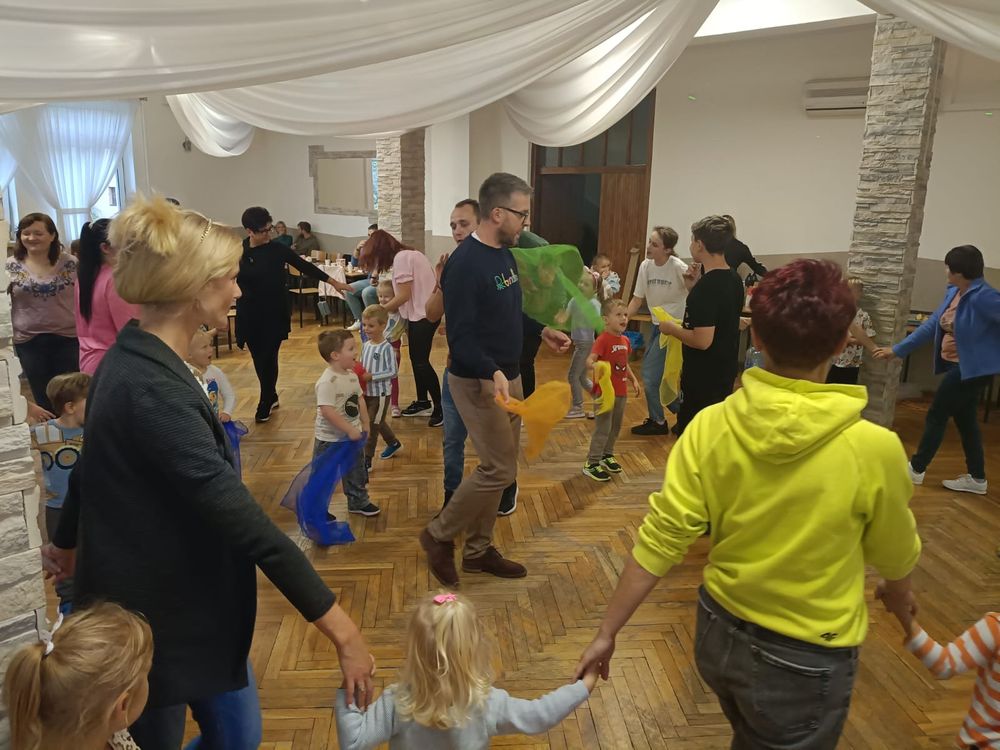24 września w naszym przedszkolu odbyło się ognisko integracyjne. Niestety, pogoda w tym dniu nie sprzyjała naszym planom, dlatego część imprezy musieliśmy przenieść do sali OSP we Włosienicy. Na zewnątrz przygotowano ognisko, przy którym rodzice mogli upiec pyszne kiełbaski. Na sali czekał na wszystkich poczęstunek w postaci smacznych ciast upieczonych przez rodziców, a także ciepłej kawy, herbaty oraz popcornu dla dzieci. Podczas imprezy dzieci brały udział w zajęciach sportowych, które zorganizowali panowie z Bax Sport & Fun. Na przedszkolaki czekała również zabawa do dziecięcych przebojów. Serdecznie dziękujemy wszystkim za wspólną zabawę oraz pomoc w organizacji ogniska.