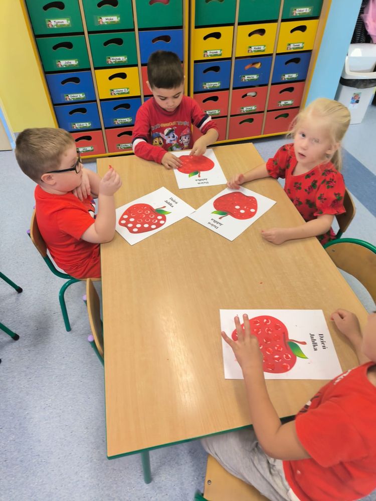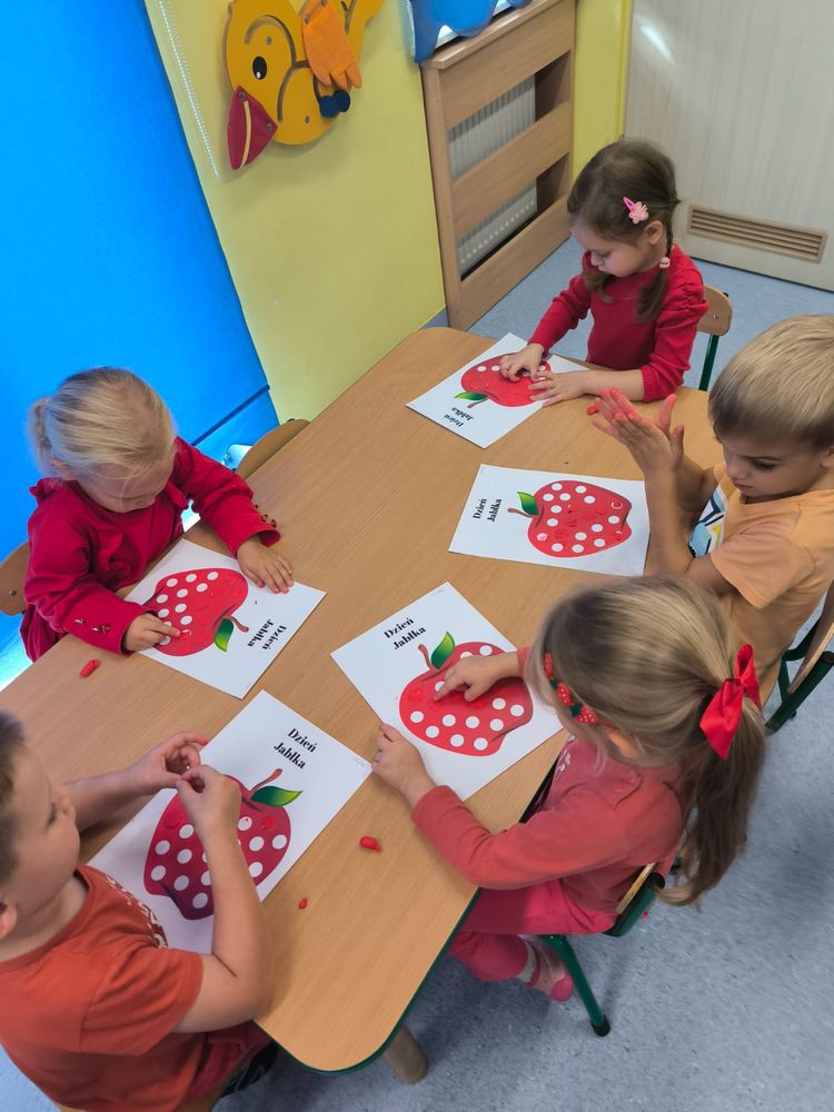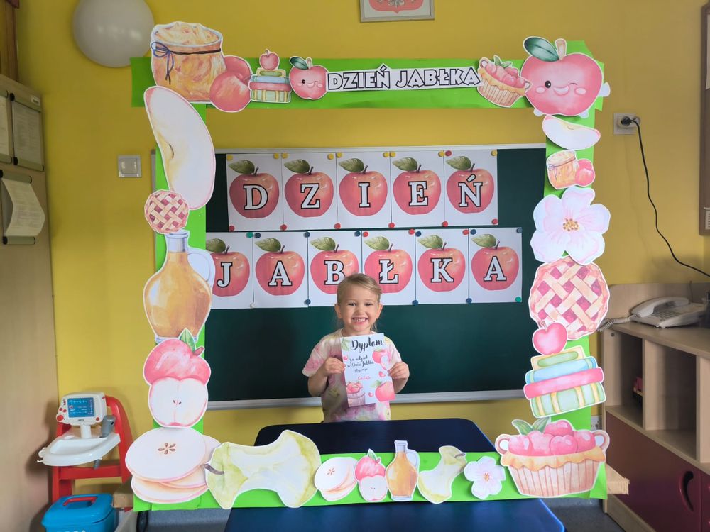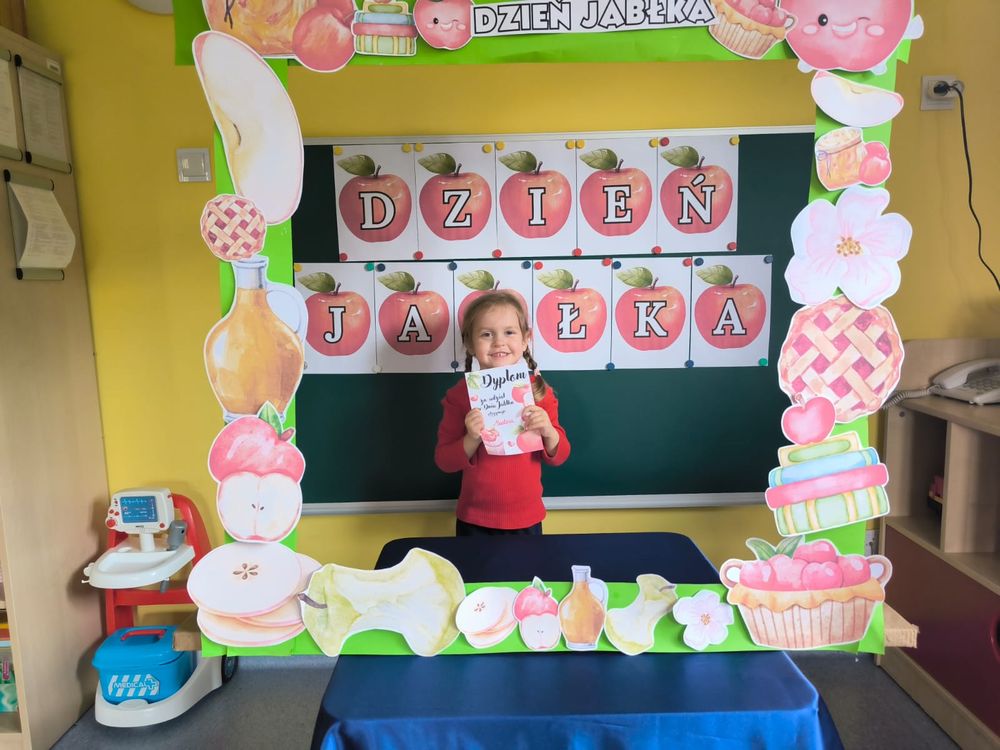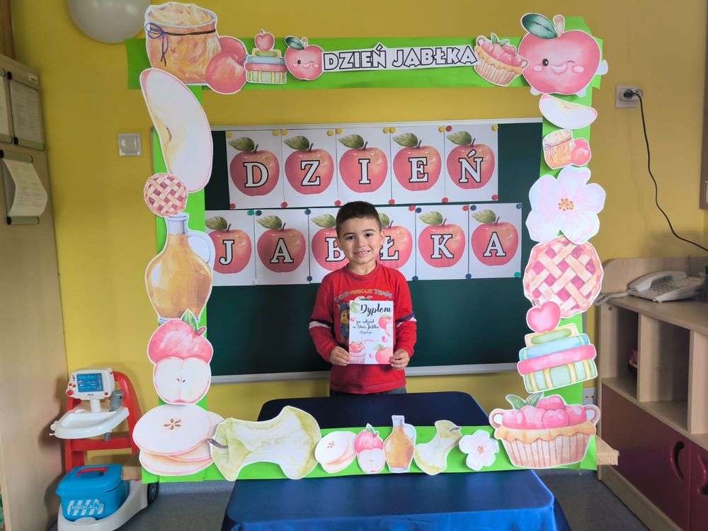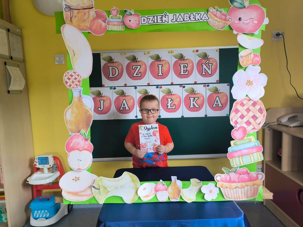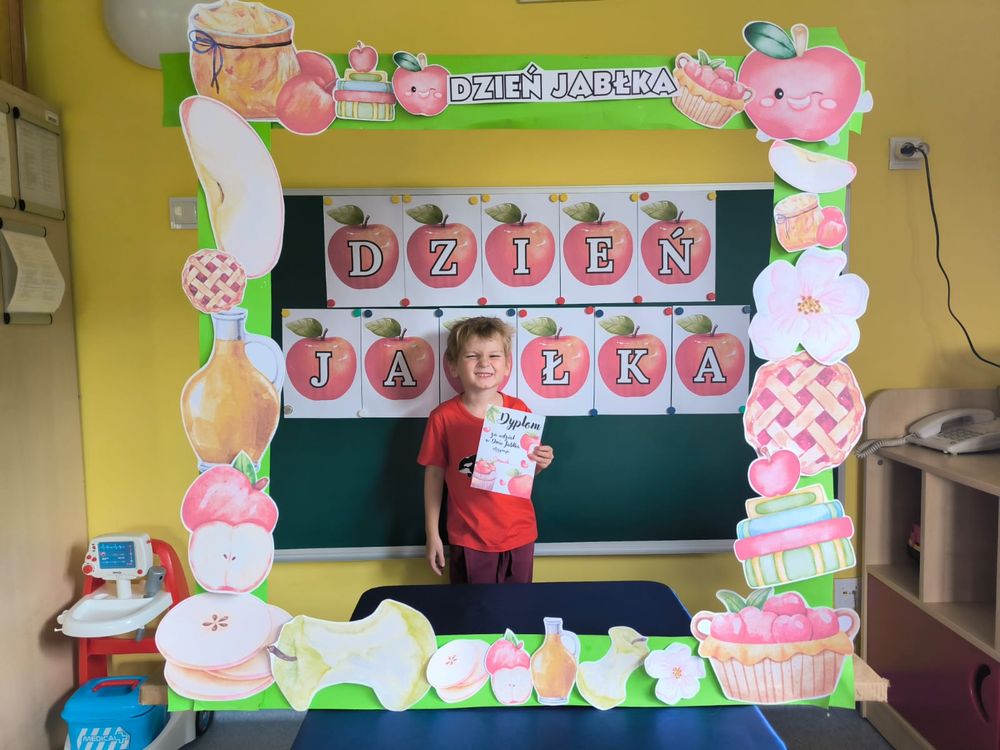 Dzień Jabłka w Biedronkach Przedszkolaki dowiedziały się, jak wygląda jabłko w środku, a także poznawały jego części i nazwy. Na dzieci czekało wiele zabaw, podczas których rozwijały swoje zdolności matematyczne, sprawność ruchową oraz spostrzegawczość. Biedronki wykonały również pracę plastyczną, którą później mogły pochwalić się rodzicom. Ale to nie wszystko! Na zakończenie wszyscy otrzymali pamiątkowy dyplom i wykonali sobie zdjęcie w fotobudce. To był naprawdę owocowy i pełen wrażeń dzień!