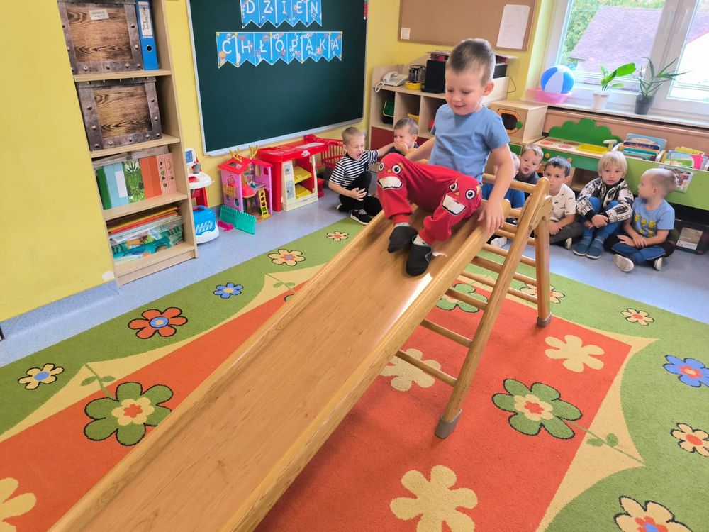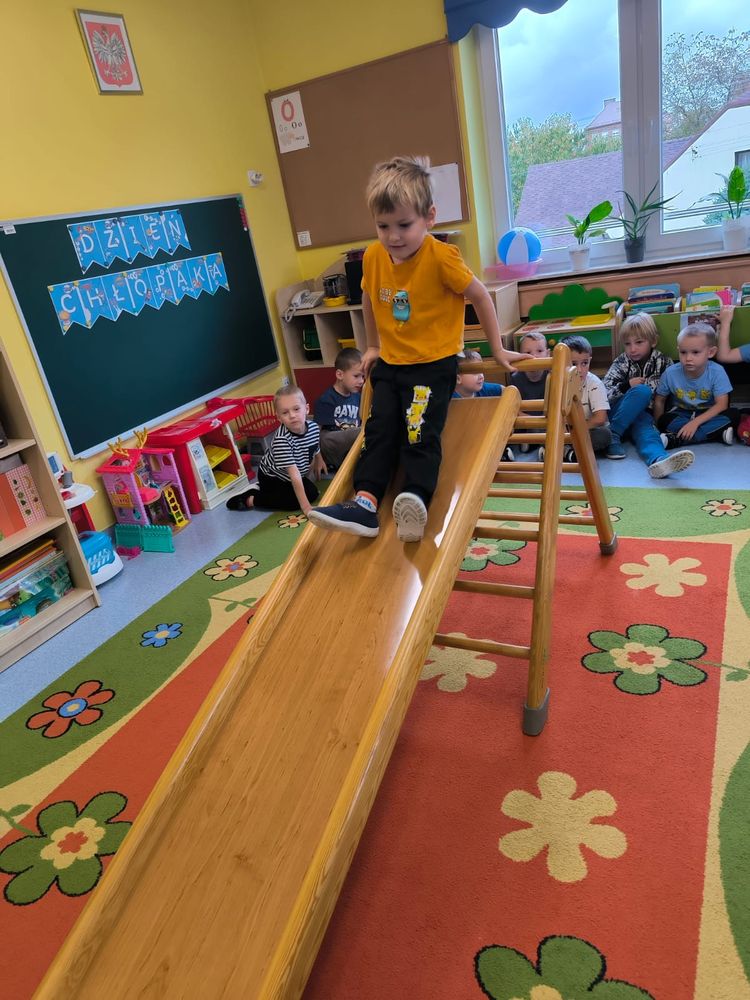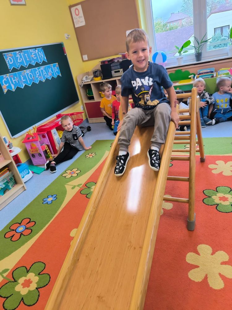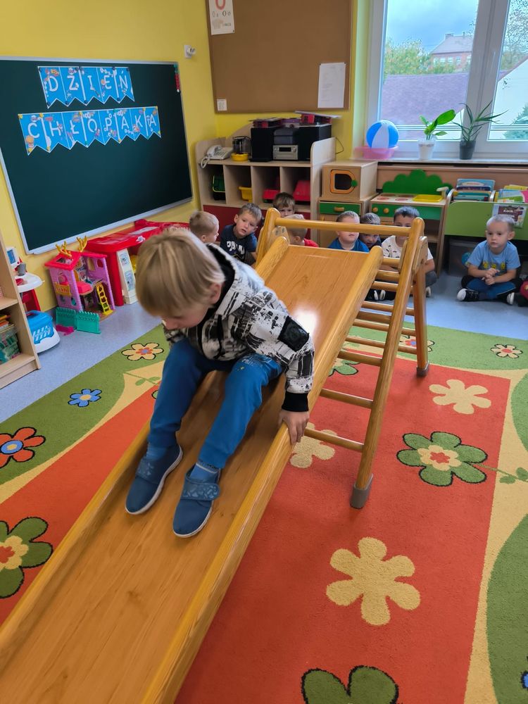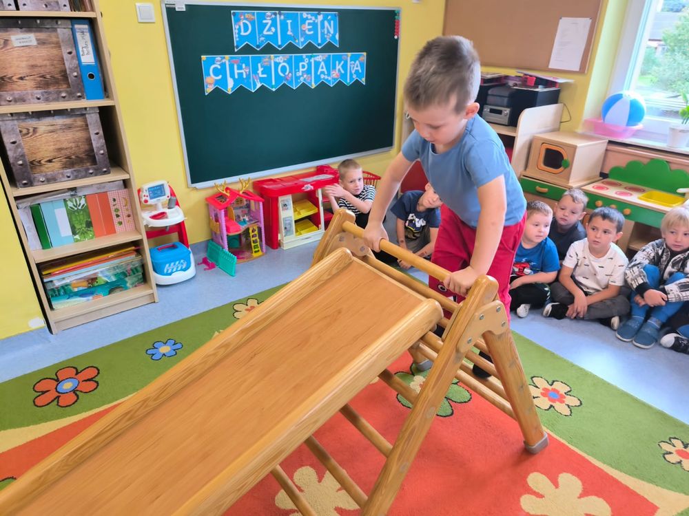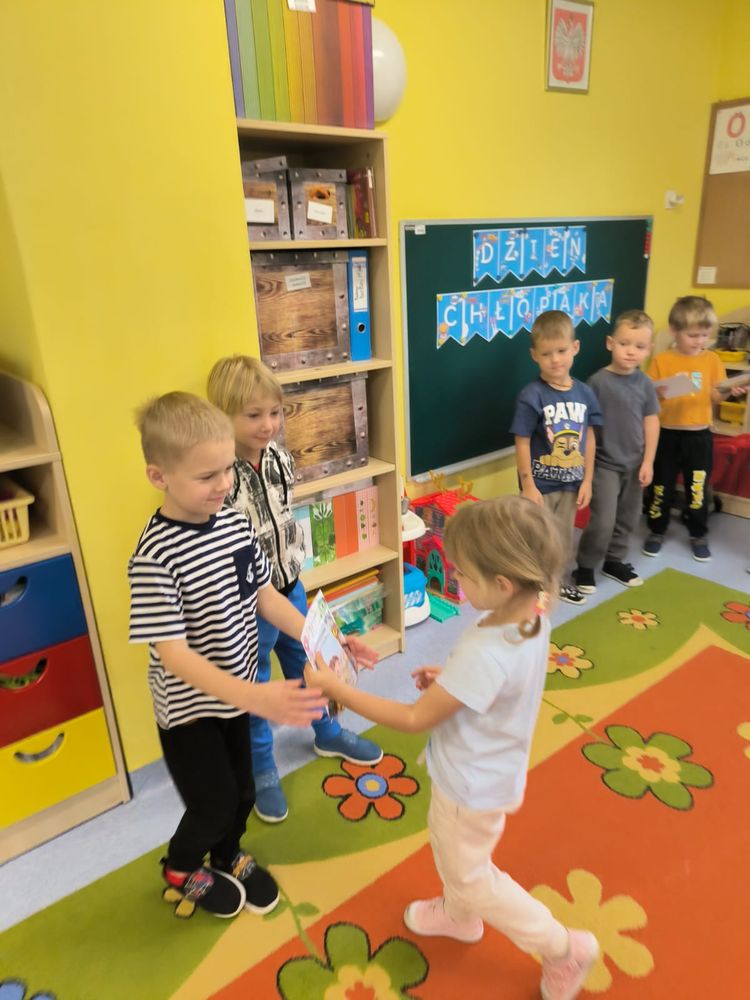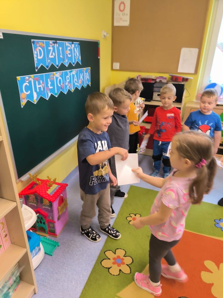 Dzień chłopaka w grupie Biedronek upłynął pod hasłem zabaw sportowych. W tym dniu nasi chłopcy musieli wykazać się sprawnością ruchową, zwinnością i szybkością podczas przygotowanych dla nich dyscyplin sportowych. Ze wszystkimi zadaniami chłopcy poradzili sobie znakomicie. Jednak czekał na nich jeszcze jeden test – test odwagi. Zadaniem chłopców było zjedzenie małego kawałka cytryny. Chłopcy udowodnili, że są bardzo dzielni i z zadaniem świetnie sobie poradzili. Na zakończenie na chłopaków czekały dyplomy i upominki, które wręczyła im ich koleżanki z grupy.