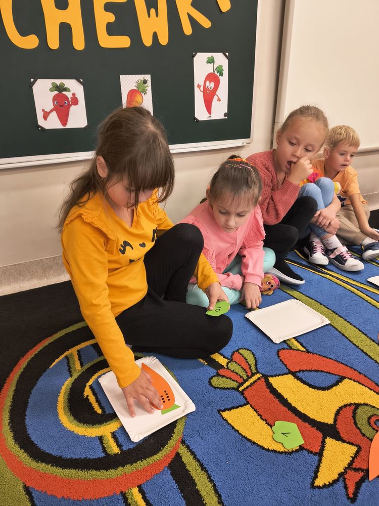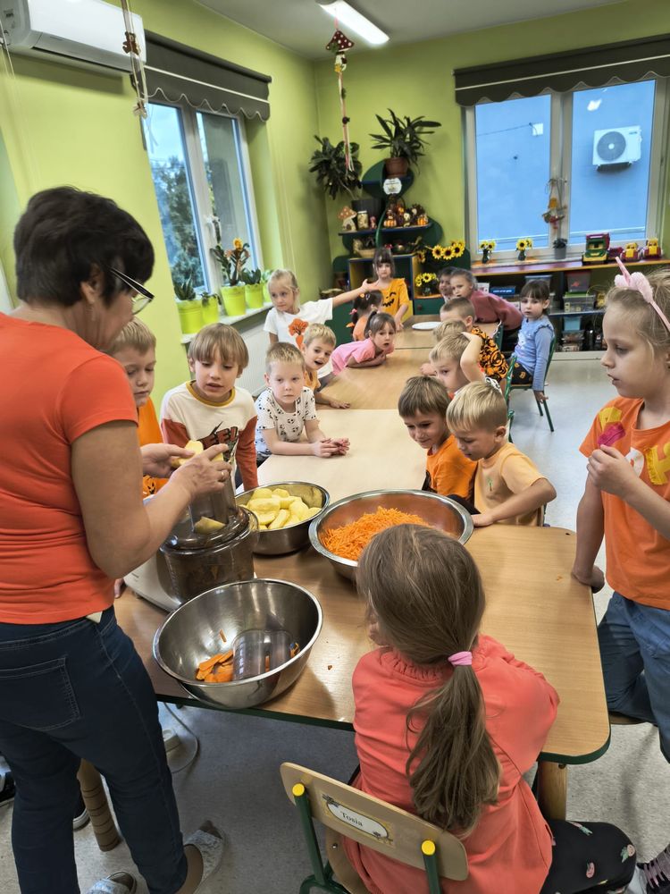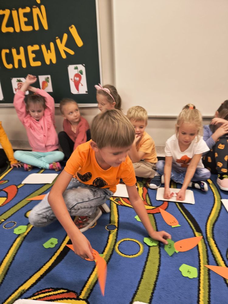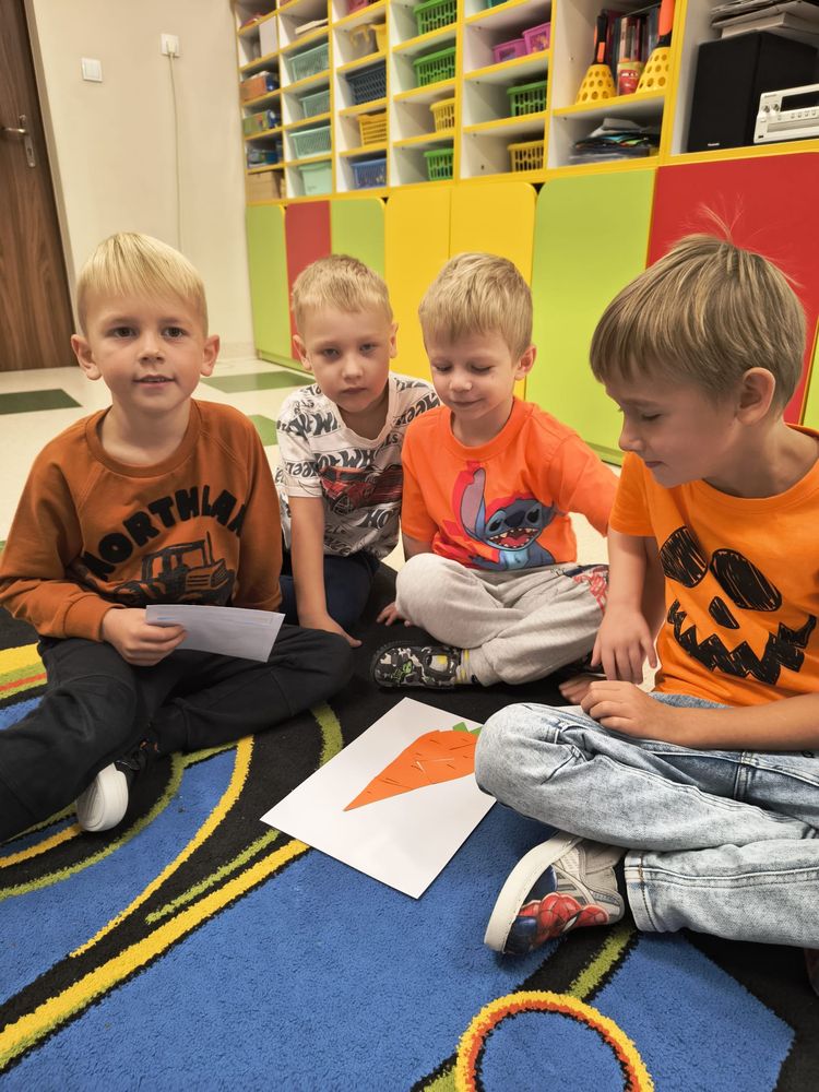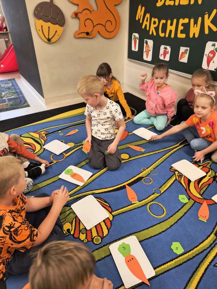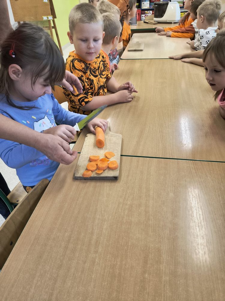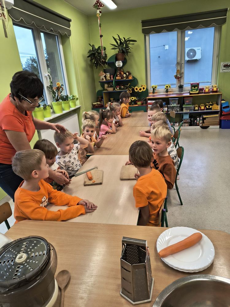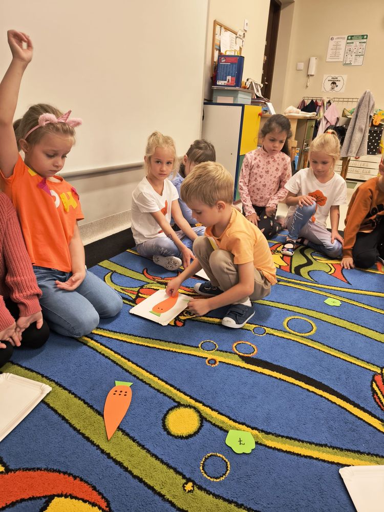 ,,Pszczółki” uczestnicząc w zajęciach związanych z tą tematyką obchodziły DZIEŃ MARCHEWKI. W tym dniu dominującym kolorem był kolor pomarańczowy, a bohaterem zadań do wykonania była marchewka. Przedszkolaki układały puzzle, przeliczały elementy, wycinały i kleiły. Wykonały też przepyszną surówkę marchewkowo – jabłkową, którą podzieliły
