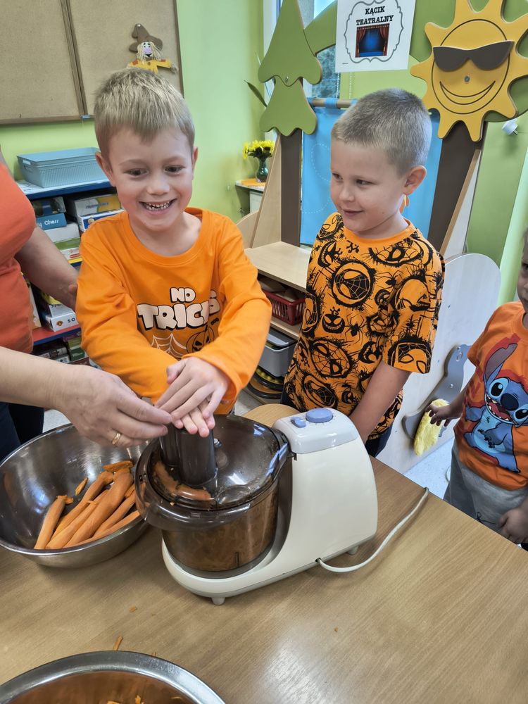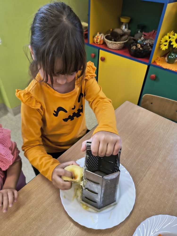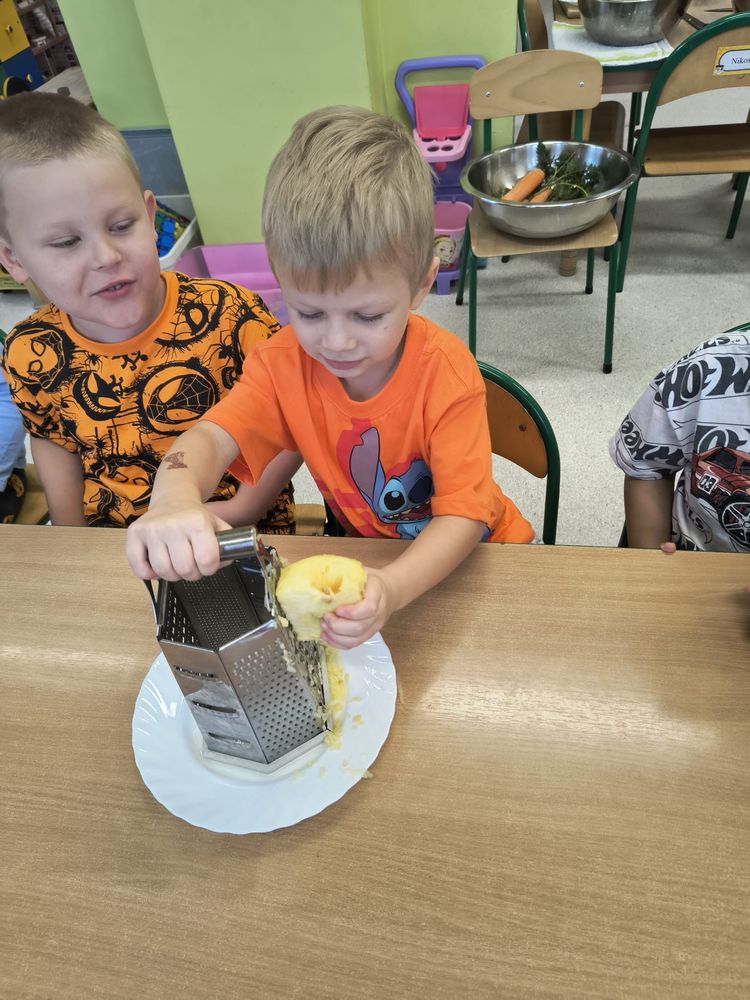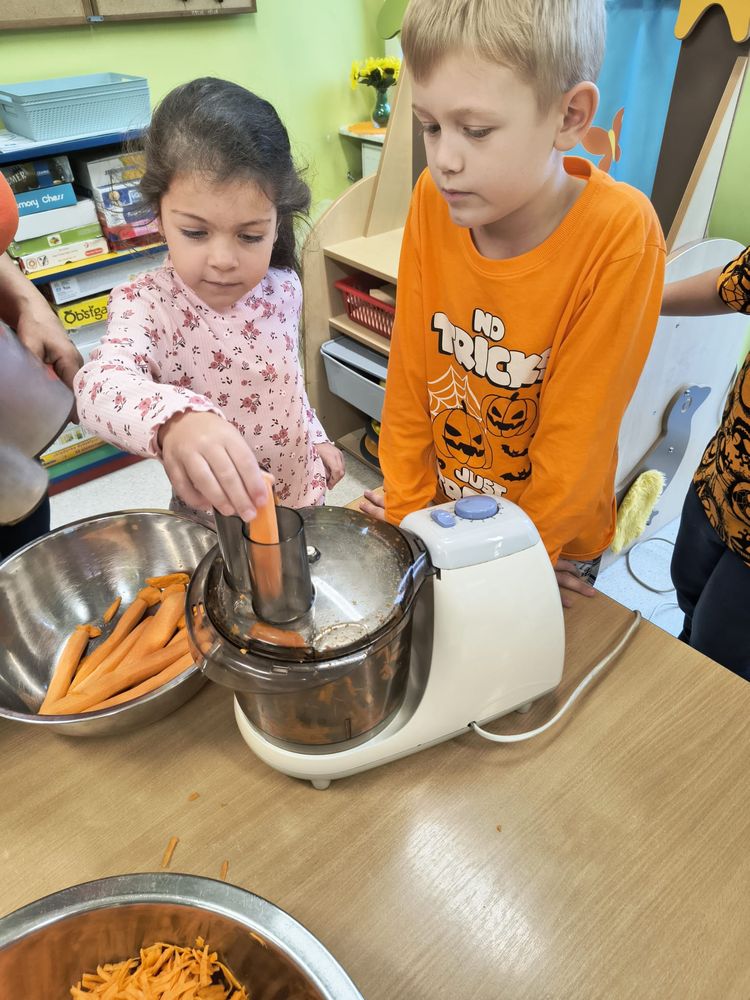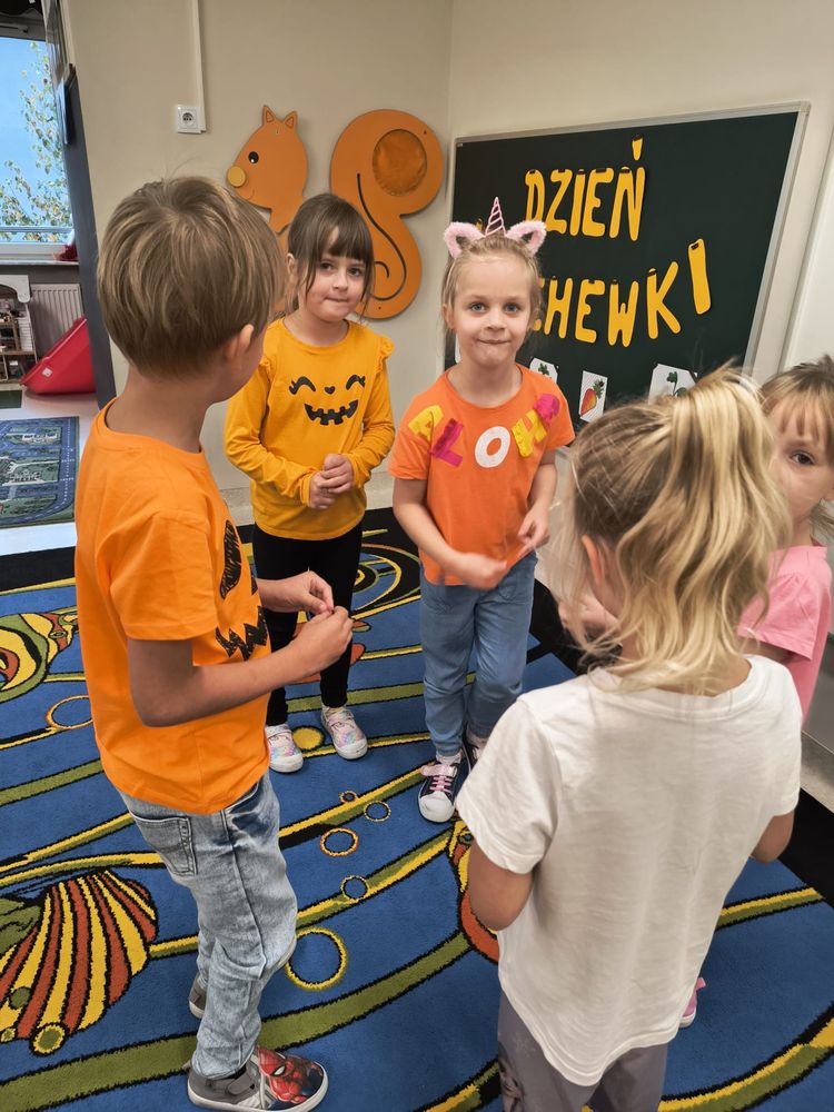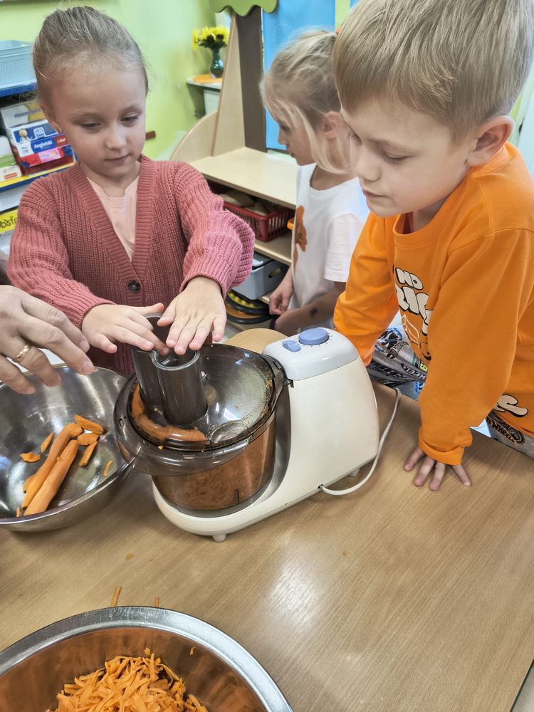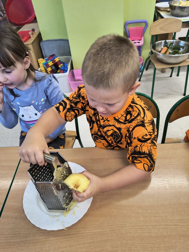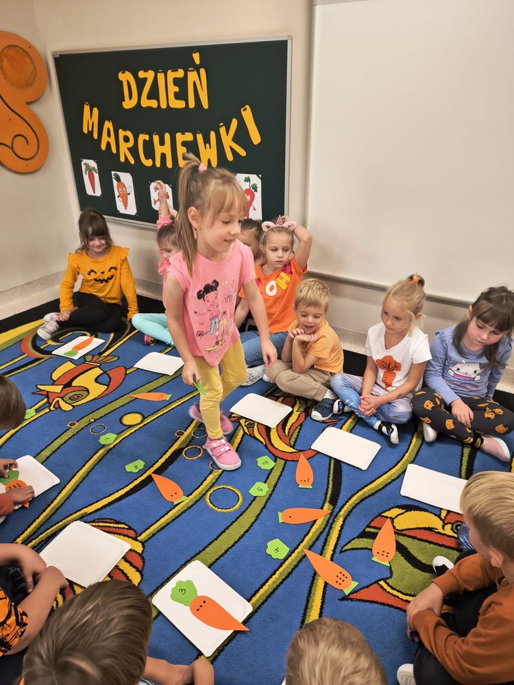 ,,Pszczółki” uczestnicząc w zajęciach związanych z tą tematyką obchodziły DZIEŃ MARCHEWKI. W tym dniu dominującym kolorem był kolor pomarańczowy, a bohaterem zadań do wykonania była marchewka. Przedszkolaki układały puzzle, przeliczały elementy, wycinały i kleiły. Wykonały też przepyszną surówkę marchewkowo – jabłkową, którą podzieliły