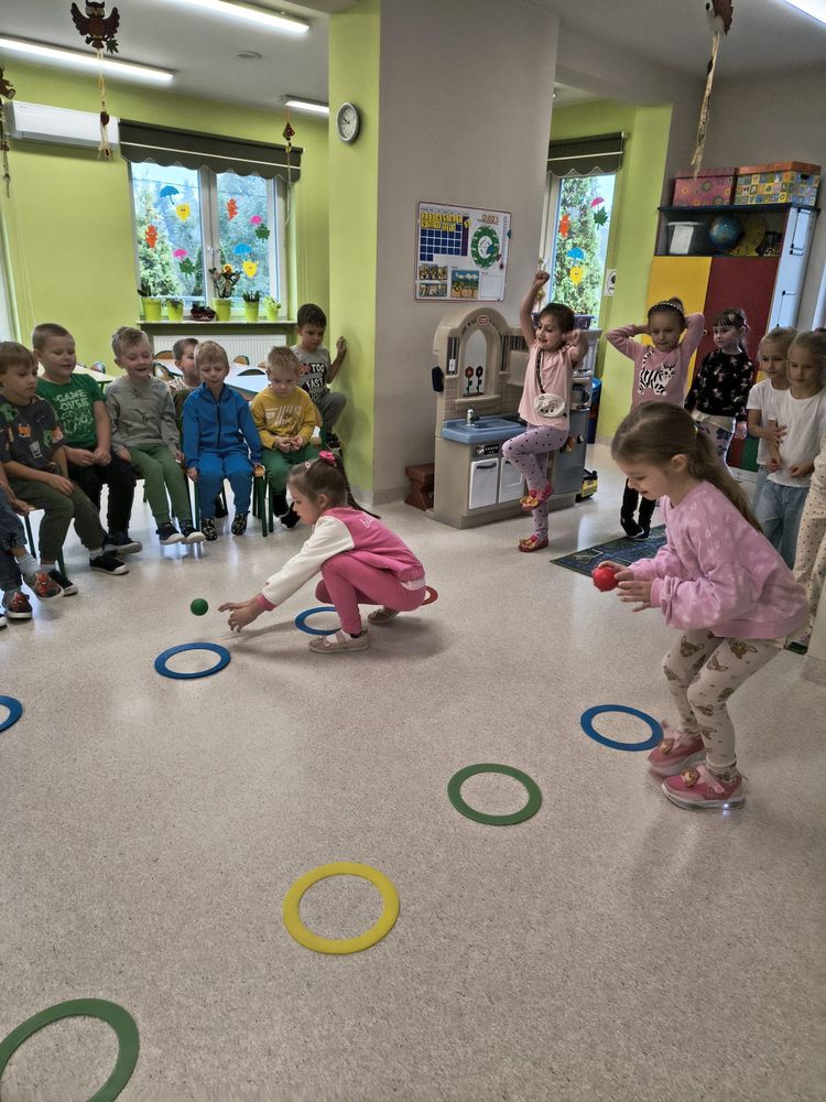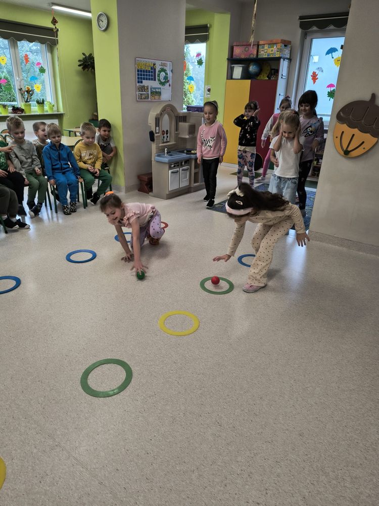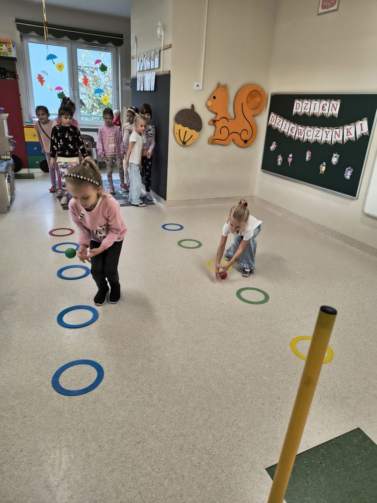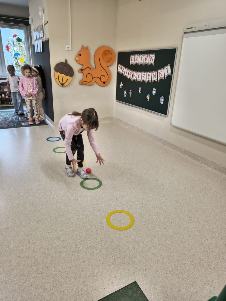Dzień Dziewczynek w grupie ,,Pszczółek” przebiegał w sportowej atmosferze. Chłopcy z dumą spoglądali na koleżanki, które rywalizując między sobą wykazywały się zręcznością, zwinnością, szybkością oraz umiejętnością łapania piłeczki i rzucania woreczkiem. Doping ze strony chłopaków był bardzo głośny, co tylko zachęcało dziewczynki do jak najlepszego wykonania poszczególnych zadań. Humory wszystkim dopisywały, a zabawa dostarczyła