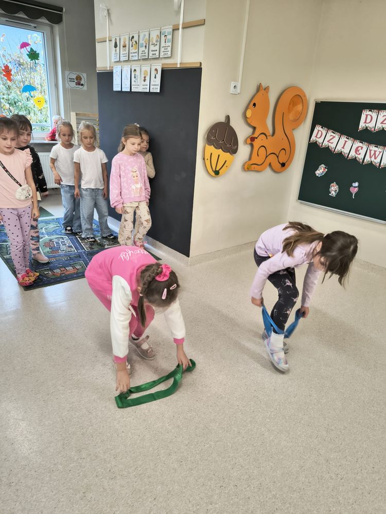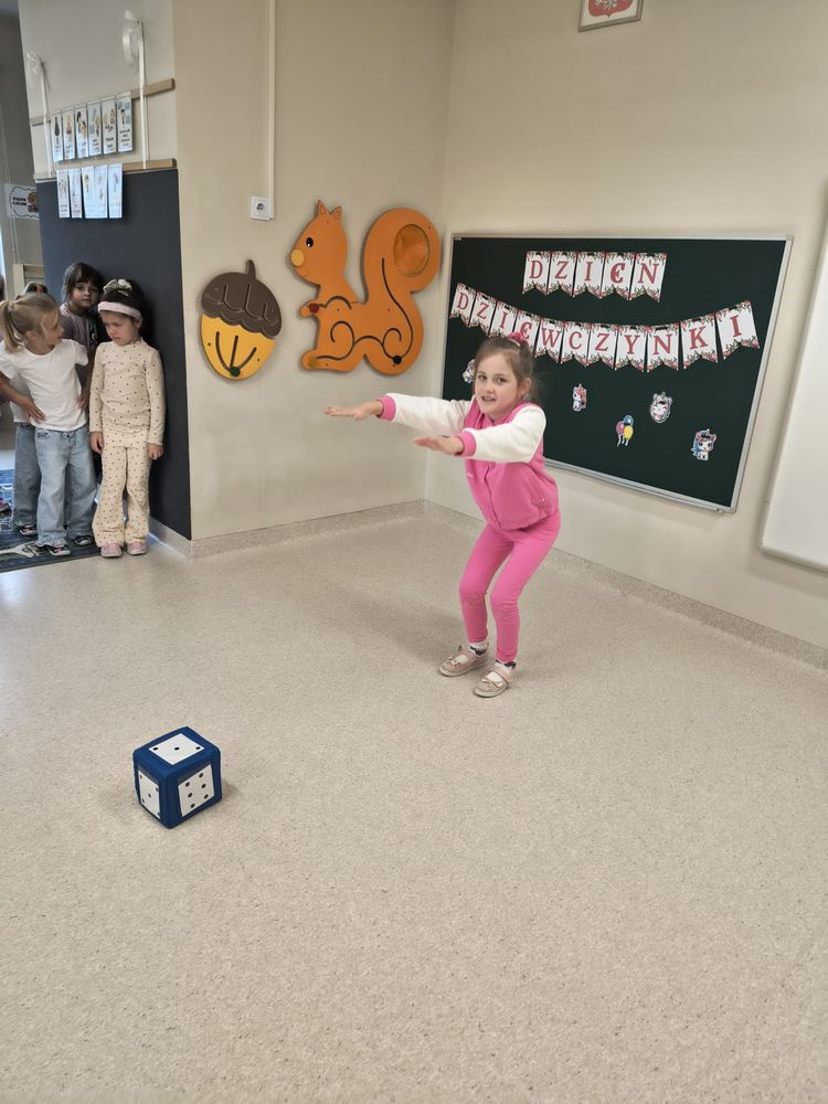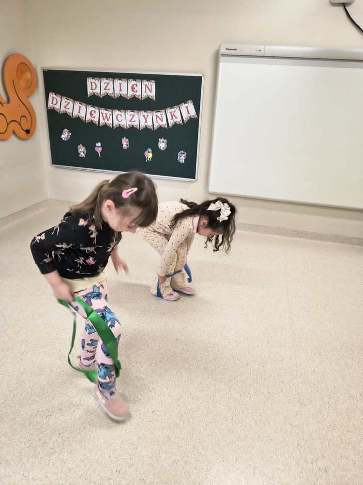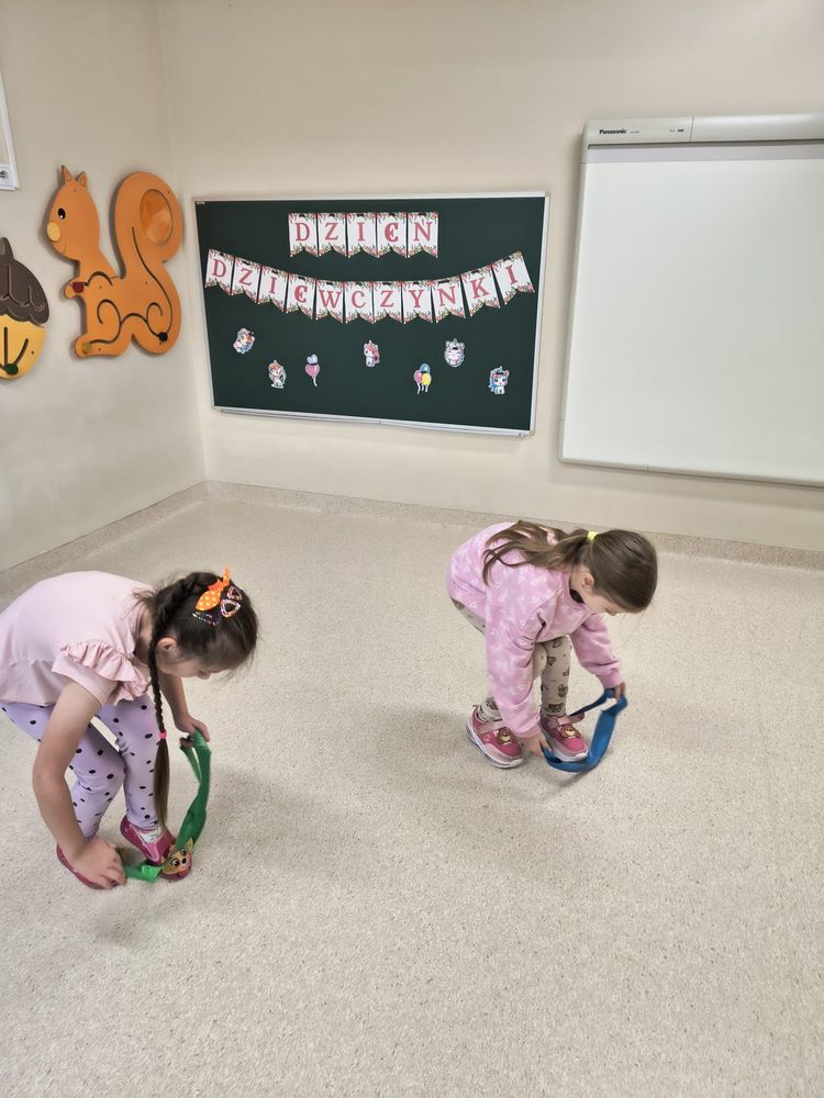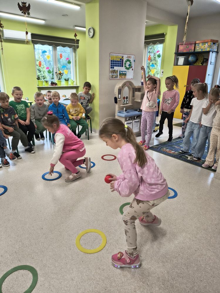 Dzień Dziewczynek w grupie ,,Pszczółek” przebiegał w sportowej atmosferze. Chłopcy z dumą spoglądali na koleżanki, które rywalizując między sobą wykazywały się zręcznością, zwinnością, szybkością oraz umiejętnością łapania piłeczki i rzucania woreczkiem. Doping ze strony chłopaków był bardzo głośny, co tylko zachęcało dziewczynki do jak najlepszego wykonania poszczególnych zadań. Humory wszystkim dopisywały, a zabawa dostarczyła