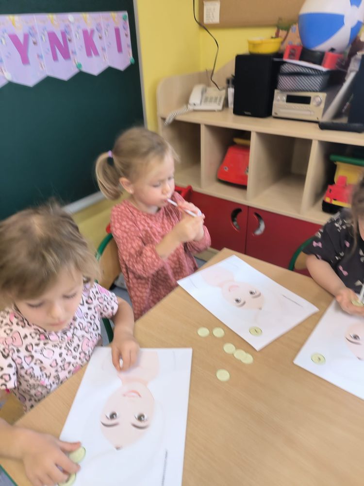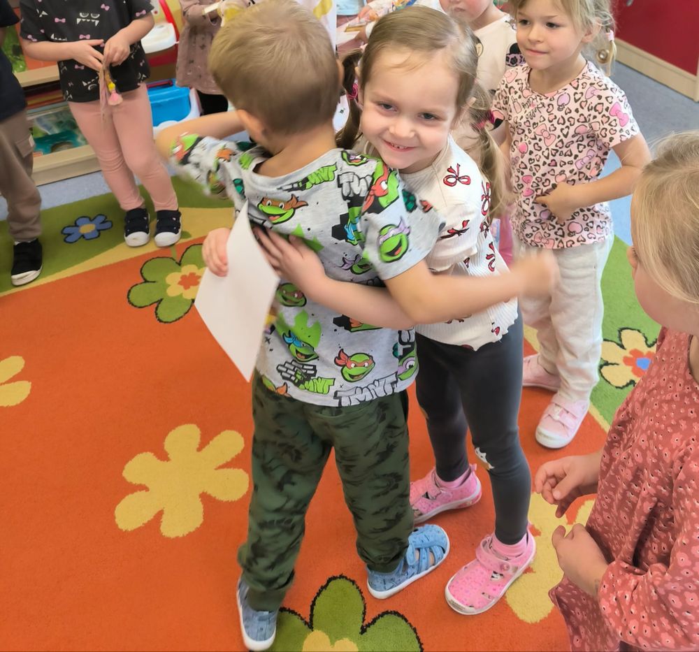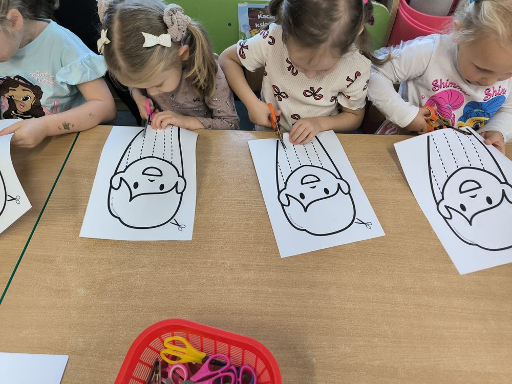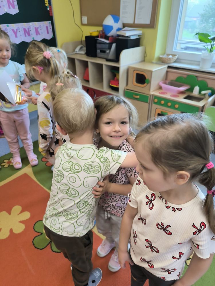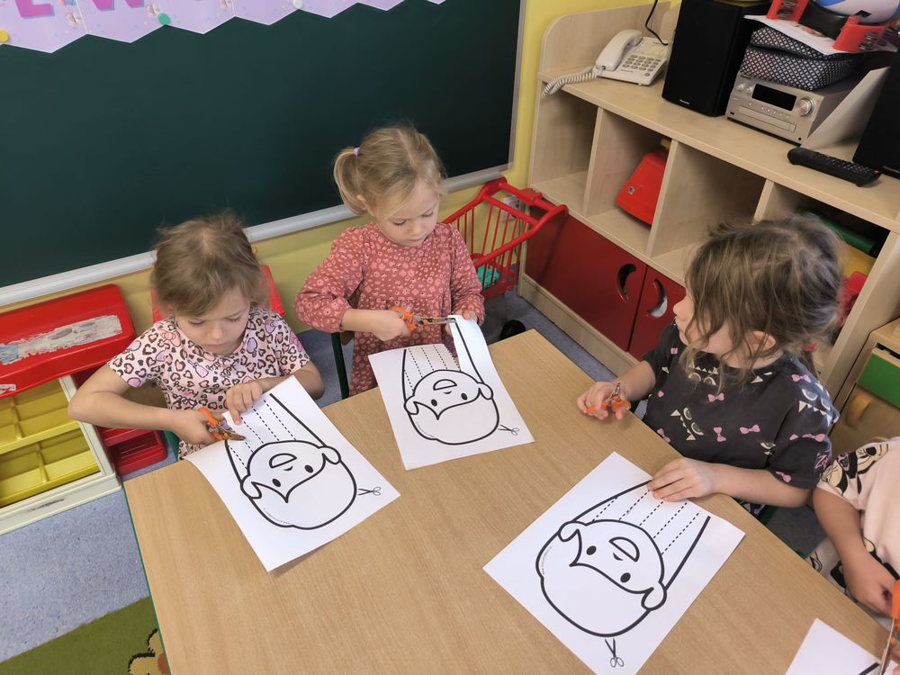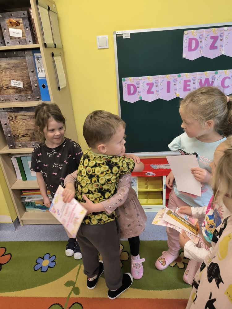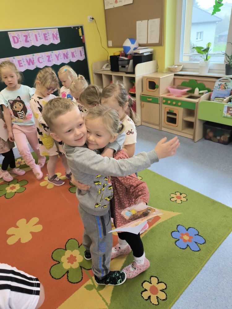Podczas swojego święta dziewczynki świetnie się bawiły. Pierwszym zadaniem było pokonanie ścieżki sensorycznej, z którym doskonale sobie poradziły. Następnie nasze małe damy przystąpiły do zadań przy stoliku, doskonaląc swoje umiejętności wycinania nożyczkami, spostrzegawczość oraz sprawność manualną. Chłopcy bacznie obserwowali pracę dziewczyn i kibicowali im, a także musieli spełnić ich życzenia, wykonując wskazane ćwiczenia gimnastyczne Na zakończenie dziewczynki otrzymały pamiątkowy dyplom oraz upominek, który wręczyli im koledzy z grupy.