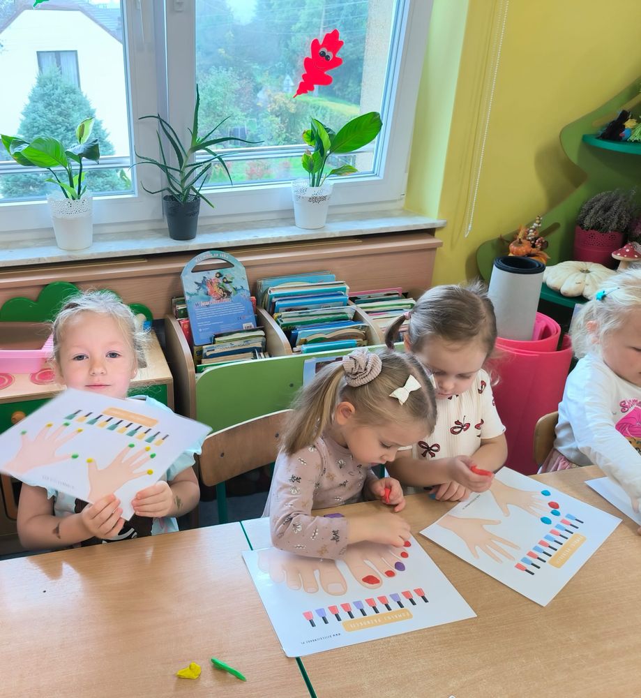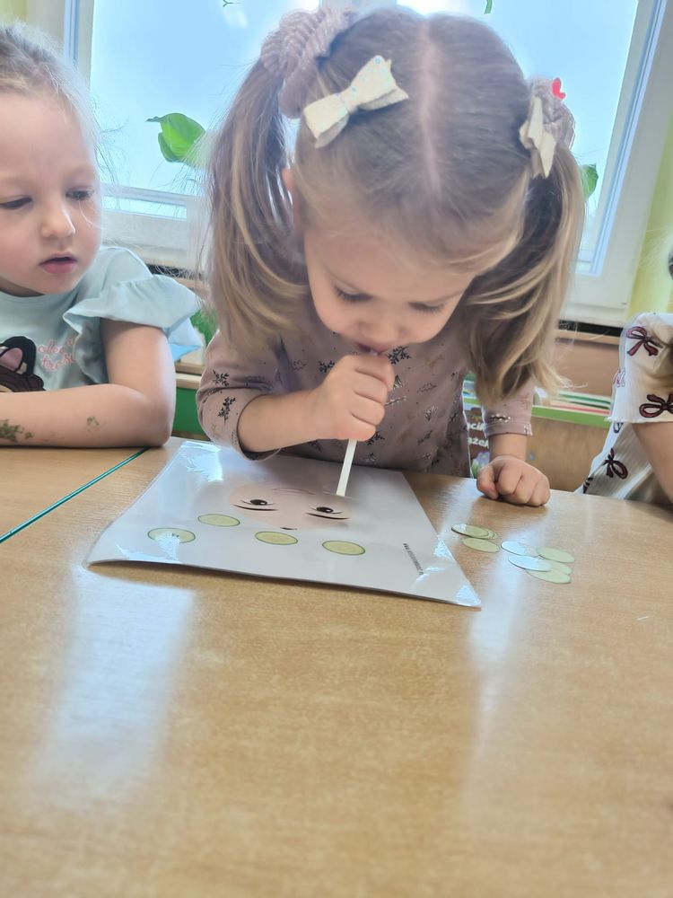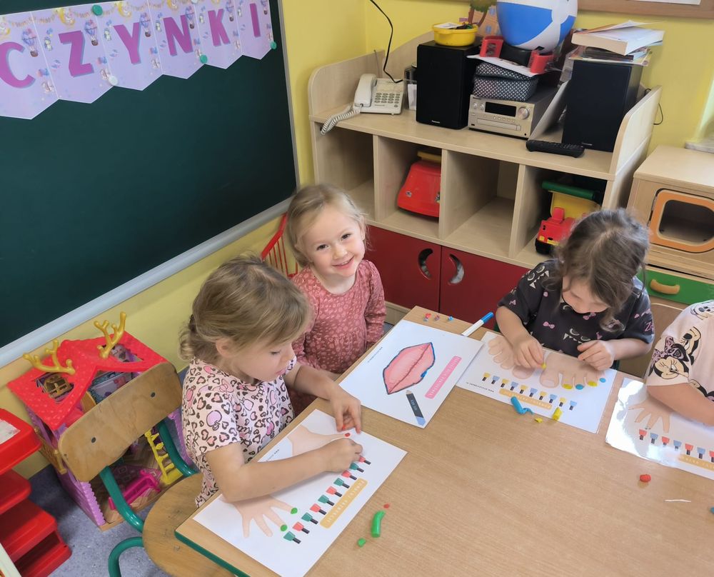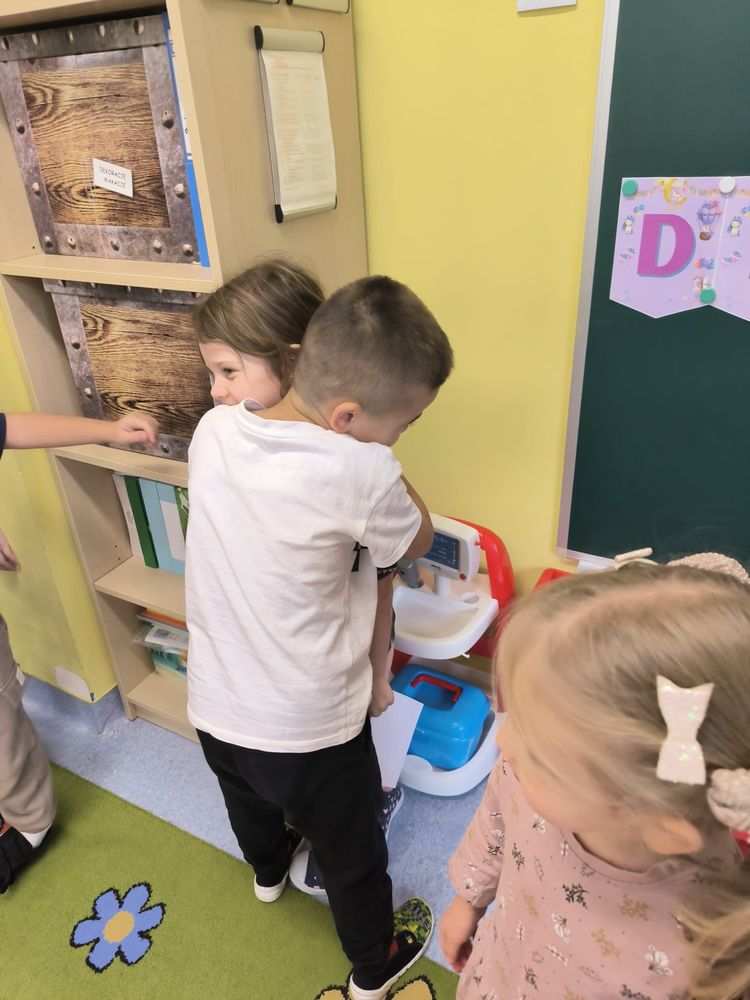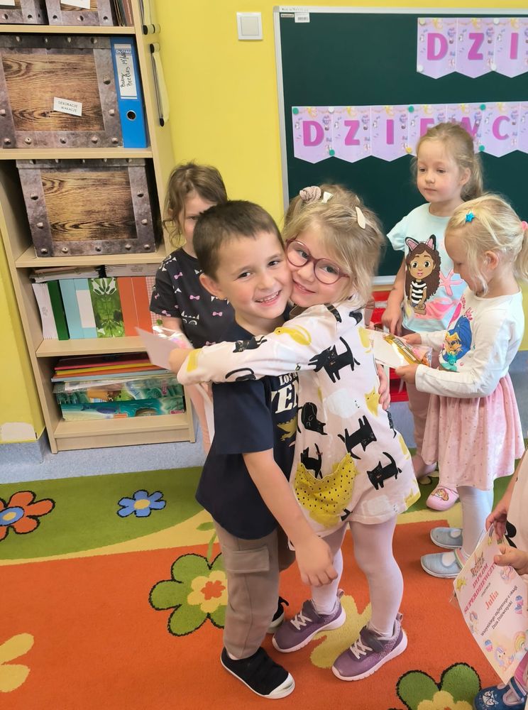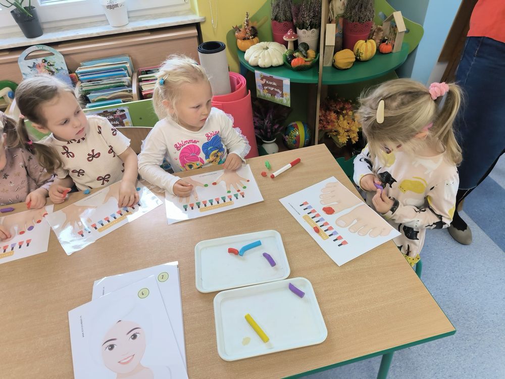 Podczas swojego święta dziewczynki świetnie się bawiły. Pierwszym zadaniem było pokonanie ścieżki sensorycznej, z którym doskonale sobie poradziły. Następnie nasze małe damy przystąpiły do zadań przy stoliku, doskonaląc swoje umiejętności wycinania nożyczkami, spostrzegawczość oraz sprawność manualną. Chłopcy bacznie obserwowali pracę dziewczyn i kibicowali im, a także musieli spełnić ich życzenia, wykonując wskazane ćwiczenia gimnastyczne Na zakończenie dziewczynki otrzymały pamiątkowy dyplom oraz upominek, który wręczyli im koledzy z grupy.