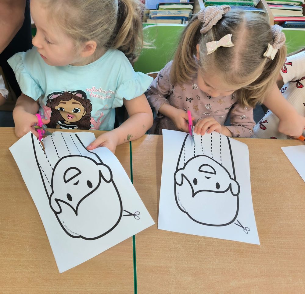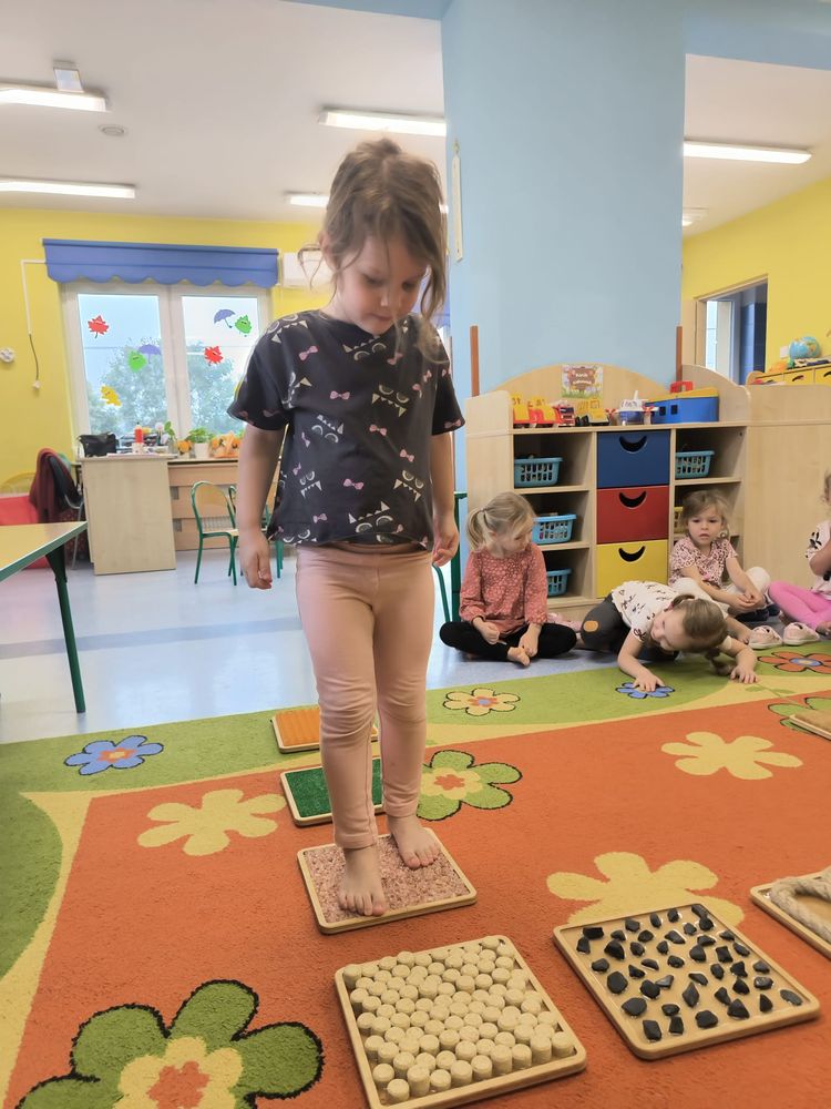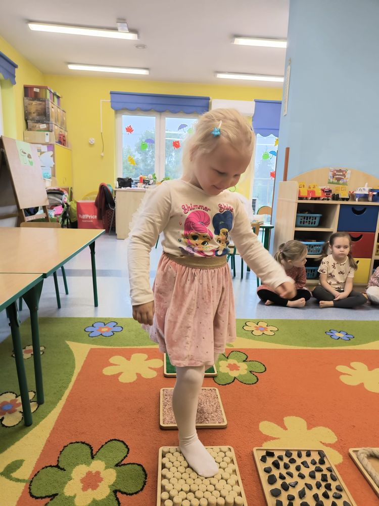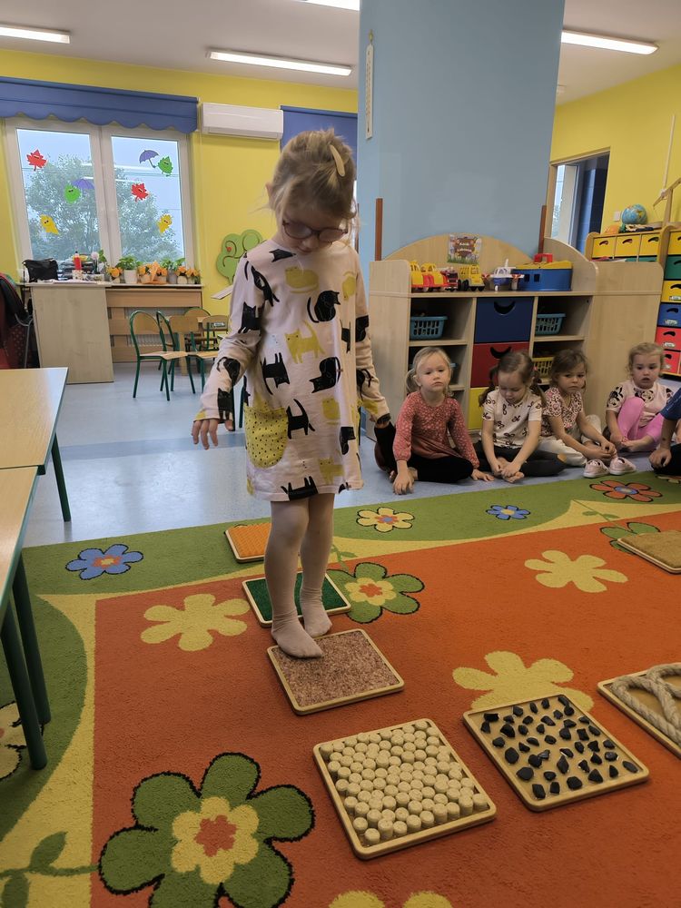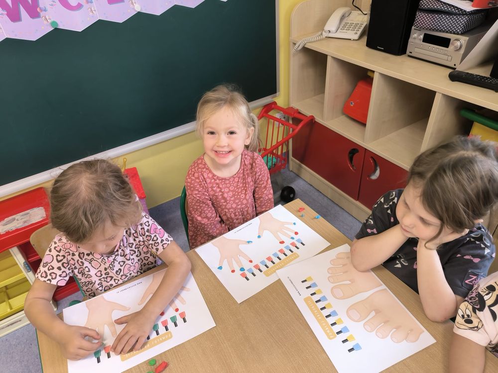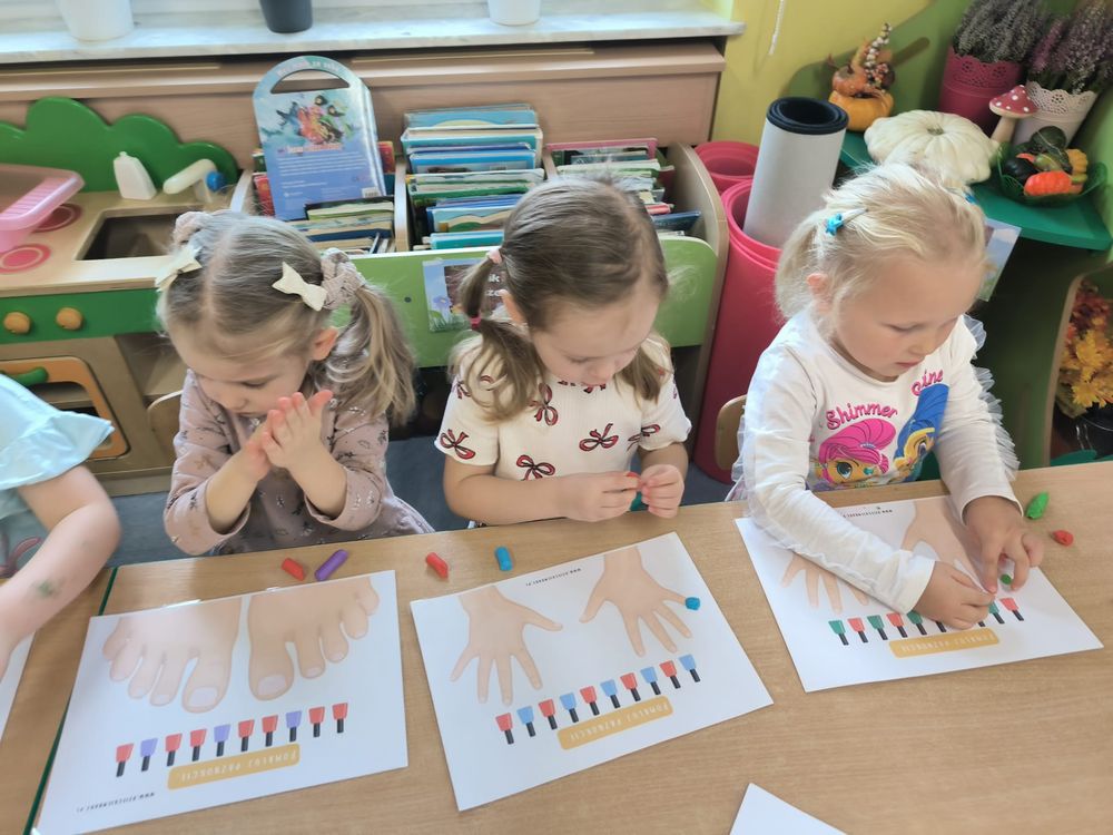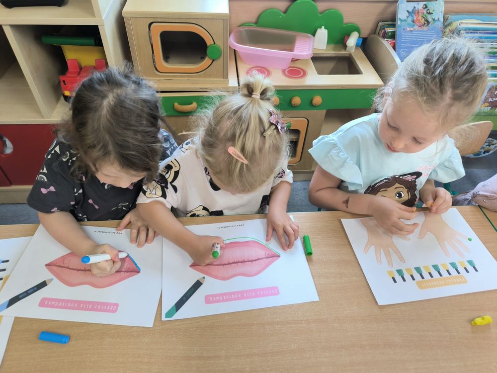 Podczas swojego święta dziewczynki świetnie się bawiły. Pierwszym zadaniem było pokonanie ścieżki sensorycznej, z którym doskonale sobie poradziły. Następnie nasze małe damy przystąpiły do zadań przy stoliku, doskonaląc swoje umiejętności wycinania nożyczkami, spostrzegawczość oraz sprawność manualną. Chłopcy bacznie obserwowali pracę dziewczyn i kibicowali im, a także musieli spełnić ich życzenia, wykonując wskazane ćwiczenia gimnastyczne Na zakończenie dziewczynki otrzymały pamiątkowy dyplom oraz upominek, który wręczyli im koledzy z grupy.