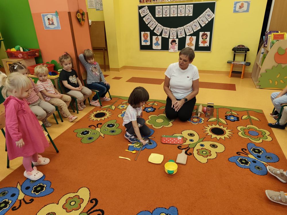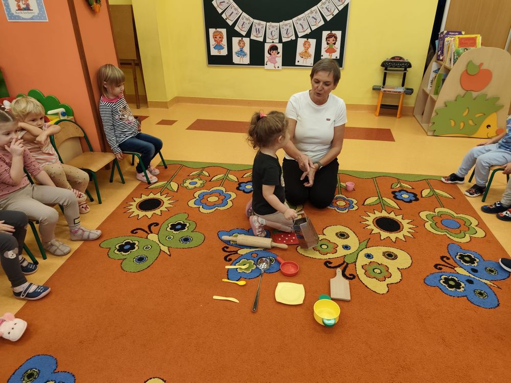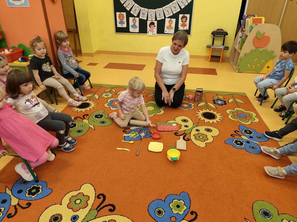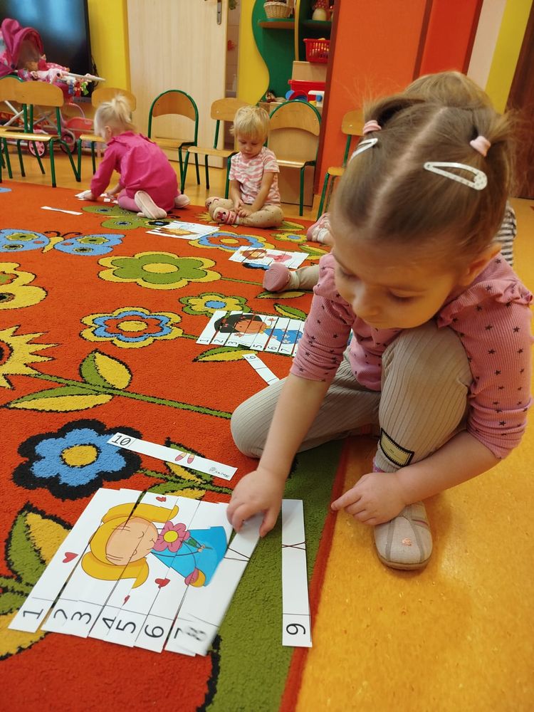 Dzień Dziewczynek w naszej grupie przebiegał w bardzo miłej i radosnej atmosferze. Dziewczynki zostały poddane kilku próbom, z którymi świetnie sobie poradziły, a wszstko to odbywało się pod bacznym okiem chłopców, którzy co rusz nagradzali dziewczynki gromkimi brawami za ich umiejętności. Na początku wysłuchaliśmy skocznej piosenki o Dniu Dziewczynek, następnie były wspólne zabawy przy muzyce, które cieszą się u nas dużym powodzeniem. Dziewczynki perfekcyjnie i z gracją przeniosły filiżankę na tacy, następnie nazywały przedmioty kuchenne i omawiały ich przeznaczenie, a w kolejnej części zabawy dziewczynki układały obrazki dziewczynek pocięte na paski i ku naszemu zdumieniu świetnie sobie poradziły z tym zadaniem. W tym dniu nie zabrakło też zabawy z ksieżniczkami, które tak lubią wszystkie małe dziewczynki i do której włączyli się również chłopcy. Na zakończenie dziewczynki otrzymały drobne upominki i uczestniczyły w mini sesji zdjęciowej.