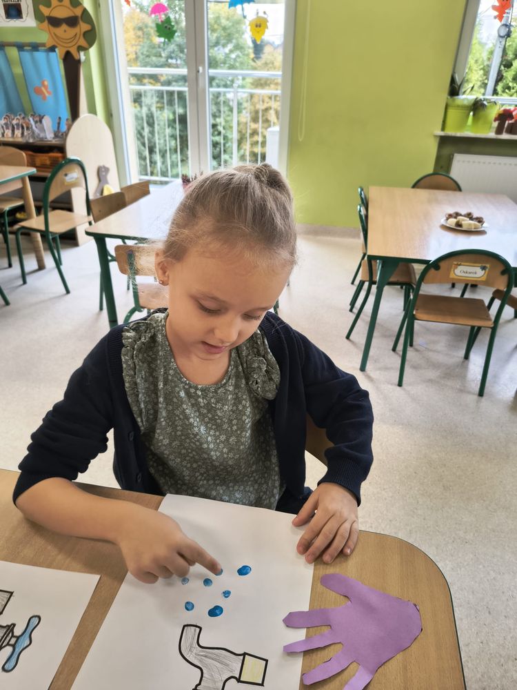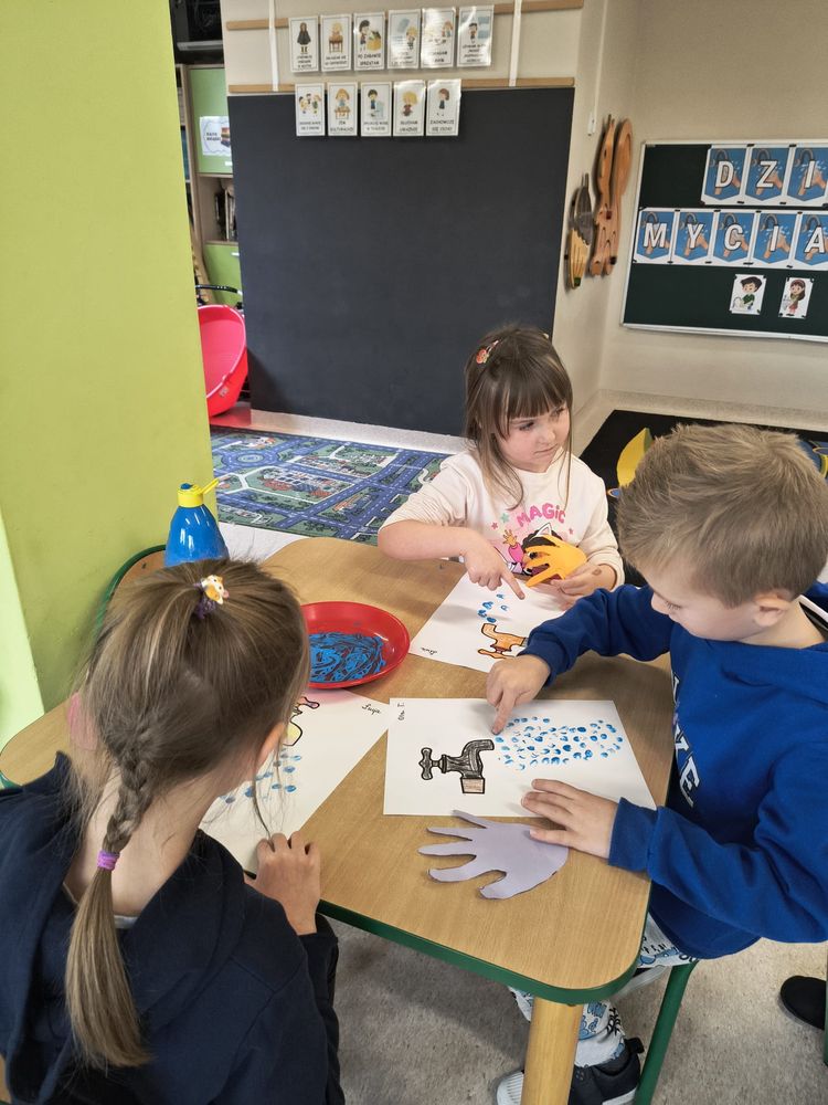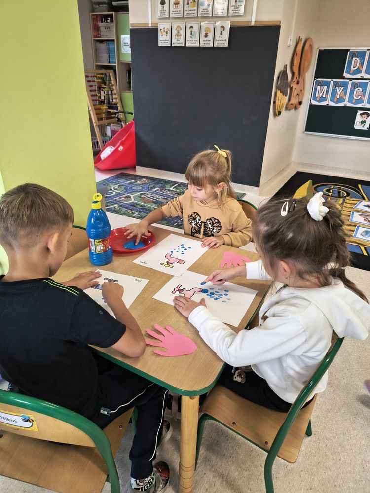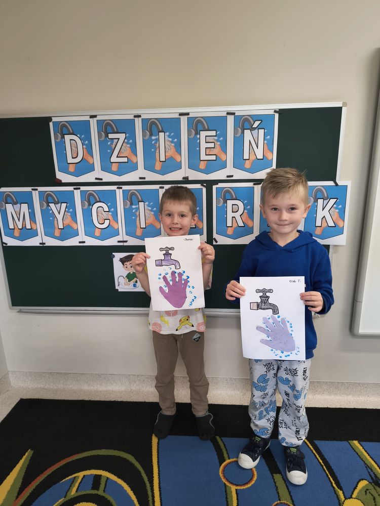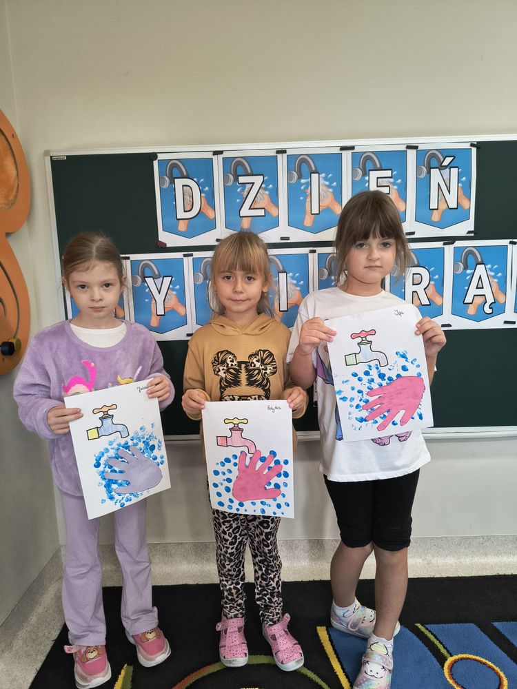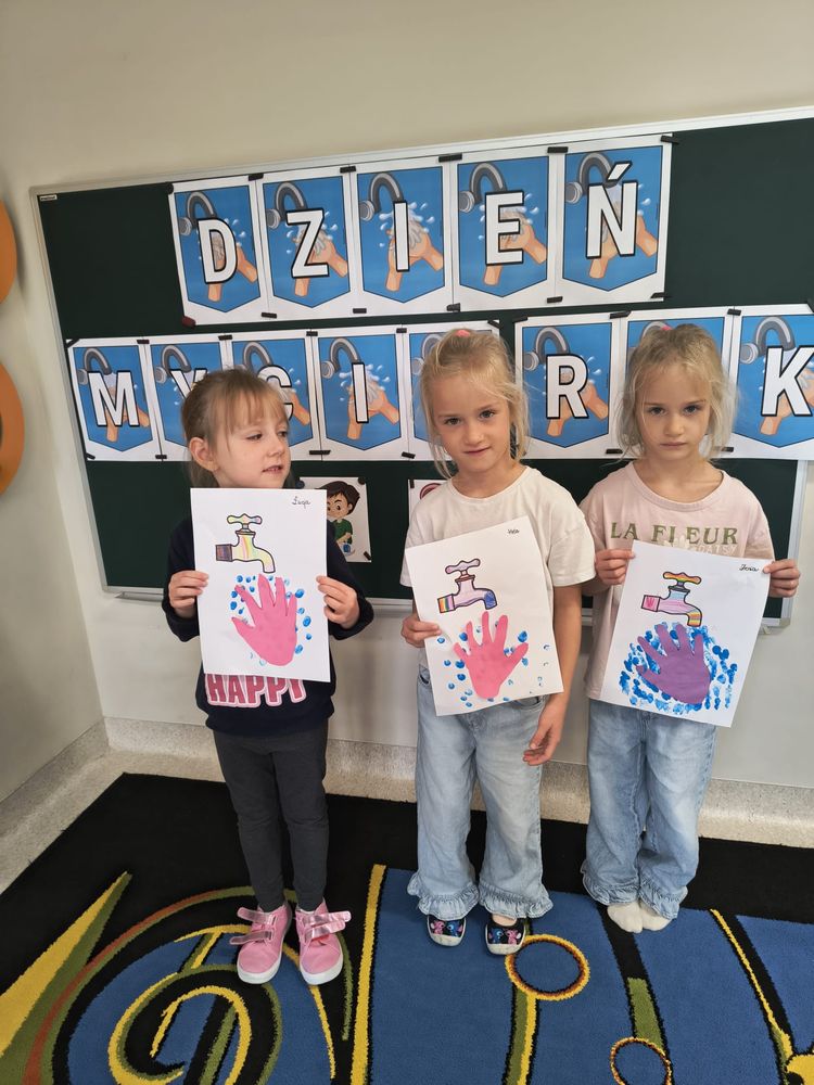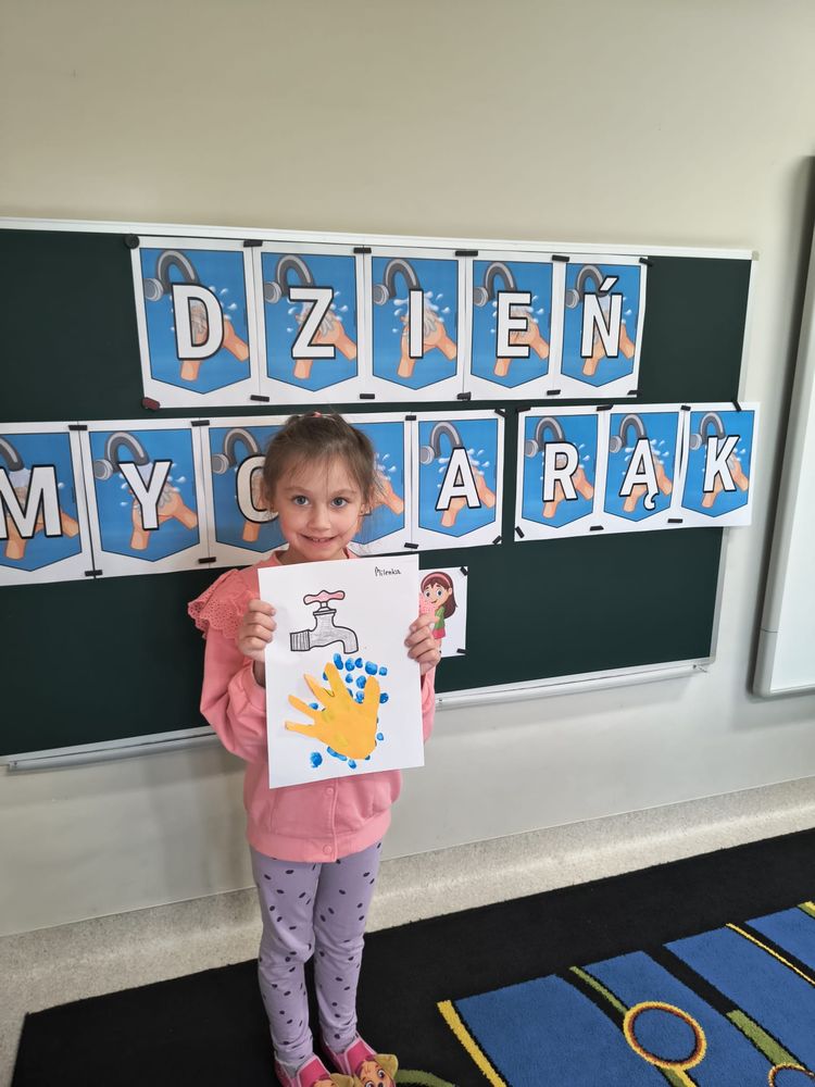 Z tej okazji została przeprowadzona pogadanka na temat tego, kiedy i jak prawidłowo myć ręce, oraz dlaczego jest to takie ważne dla naszego zdrowia. Dzieci dowiedziały się, jakie choroby mogą być spowodowane przez ,,brudne ręce” i jak można ich uniknąć. Przedszkolaki aktywnie uczestniczyły w rozmowie, chętnie odpowiadały na pytania i utrwalały etapy poprawnego mycia rąk. Zajęcia zakończyły się wykonaniem pracy plastycznej podsumowującej omawianą tematykę.