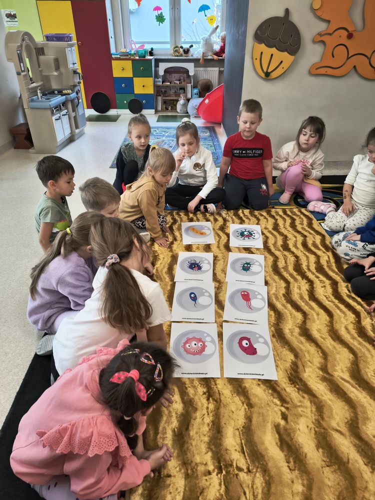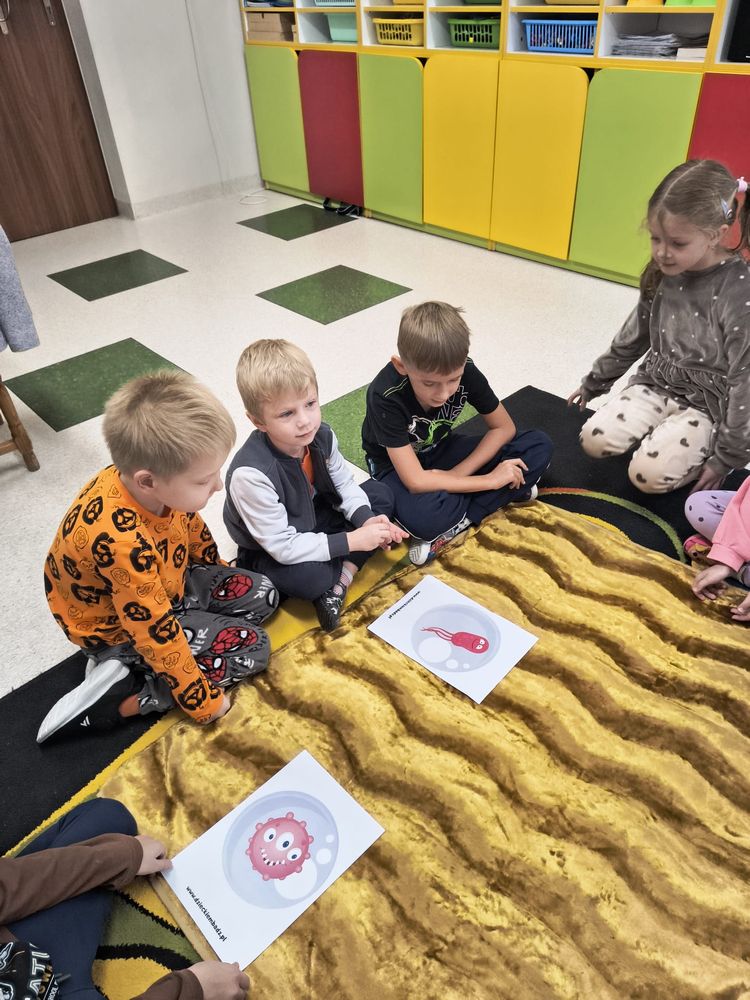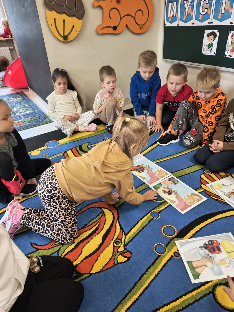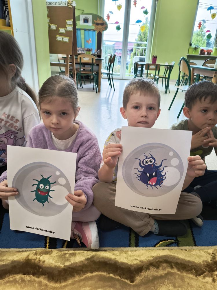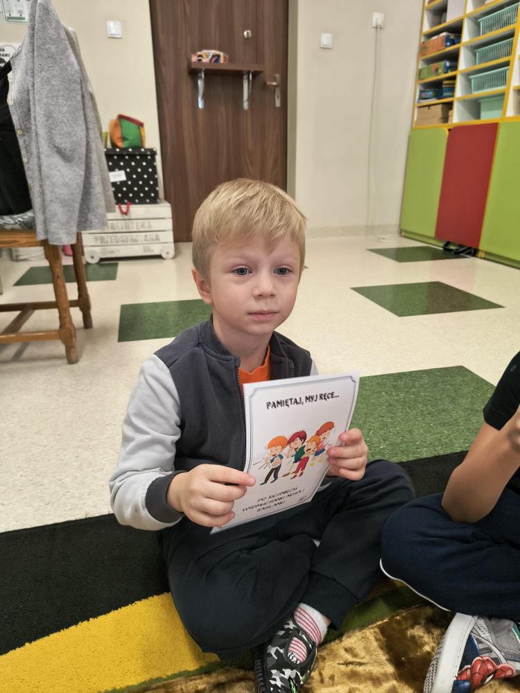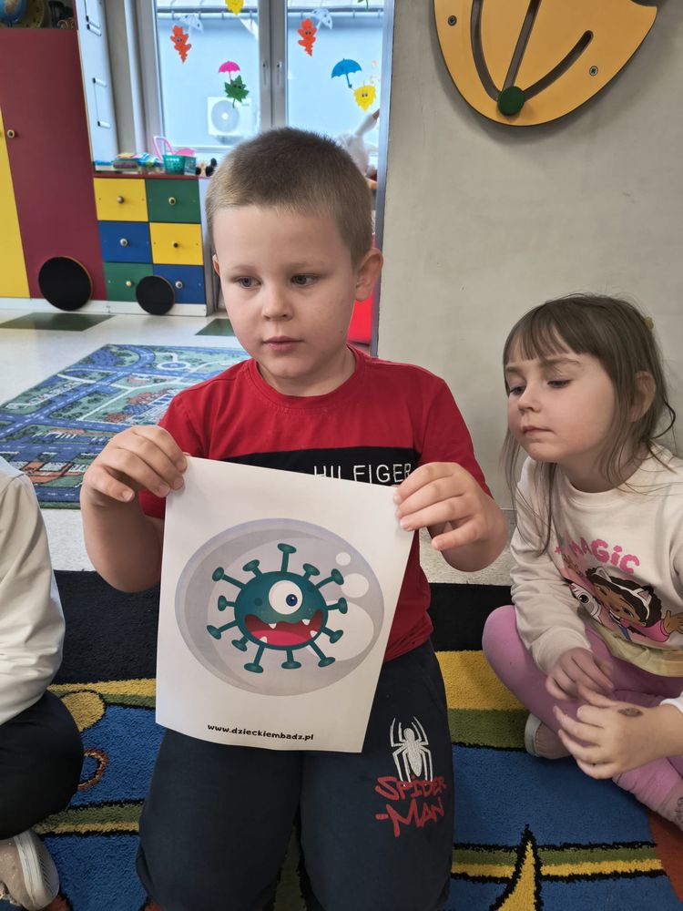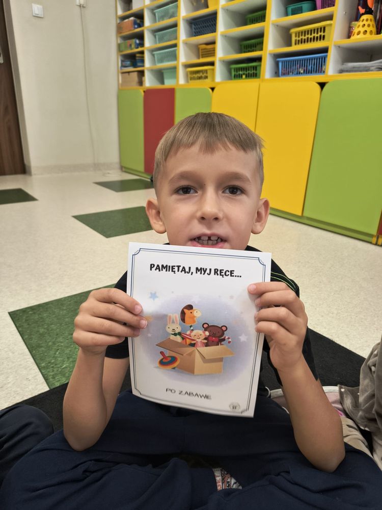 Z tej okazji została przeprowadzona pogadanka na temat tego, kiedy i jak prawidłowo myć ręce, oraz dlaczego jest to takie ważne dla naszego zdrowia. Dzieci dowiedziały się, jakie choroby mogą być spowodowane przez ,,brudne ręce” i jak można ich uniknąć. Przedszkolaki aktywnie uczestniczyły w rozmowie, chętnie odpowiadały na pytania i utrwalały etapy poprawnego mycia rąk. Zajęcia zakończyły się wykonaniem pracy plastycznej podsumowującej omawianą tematykę.