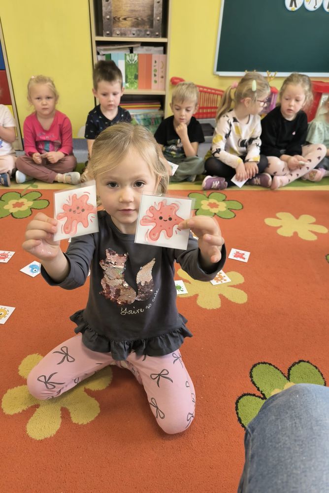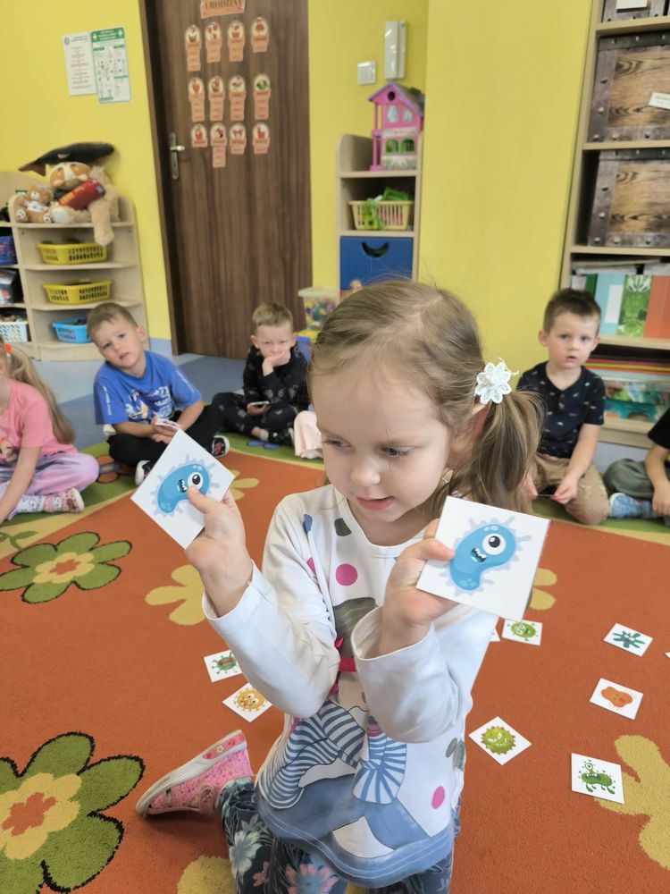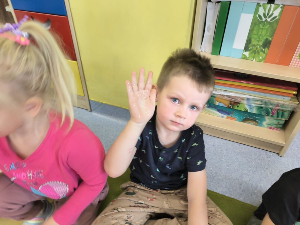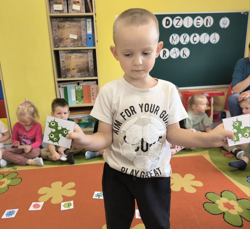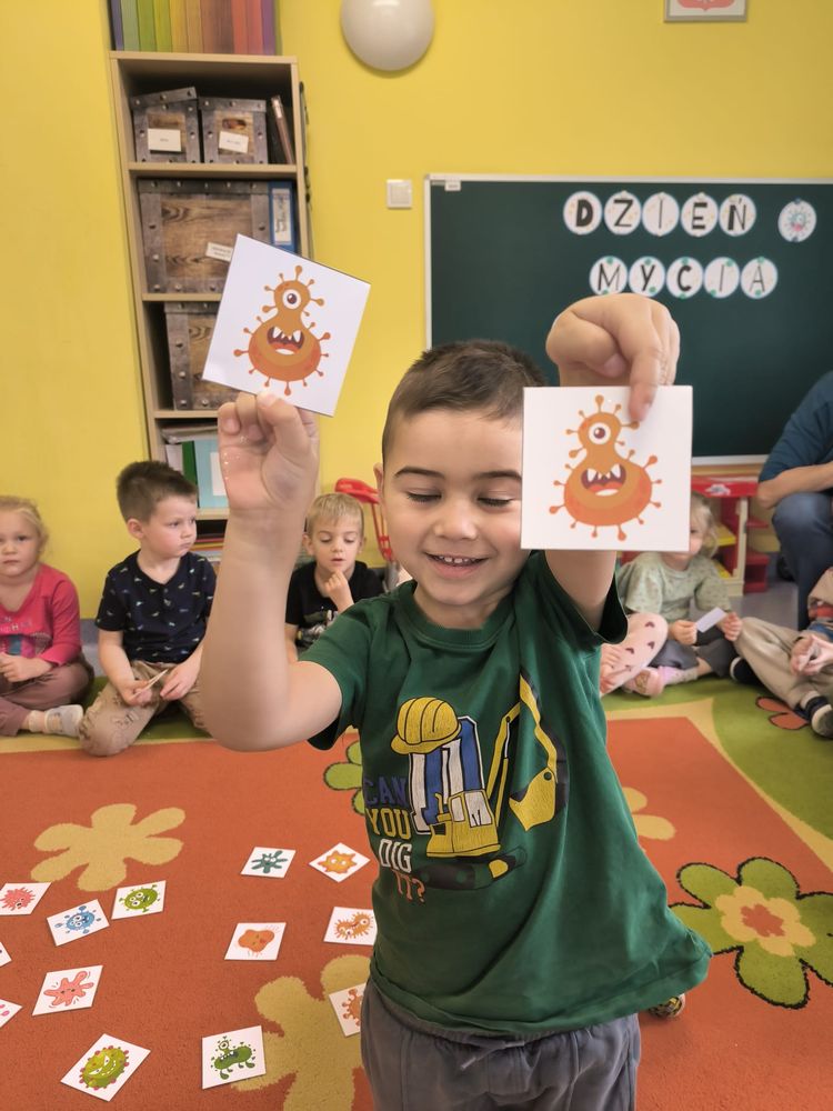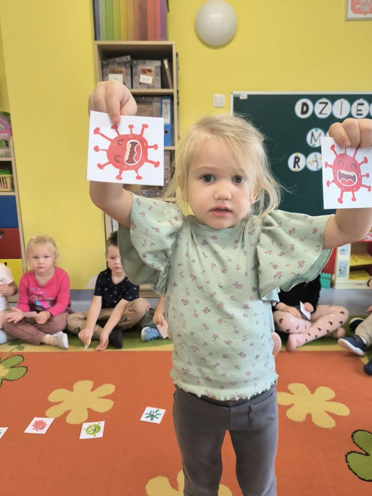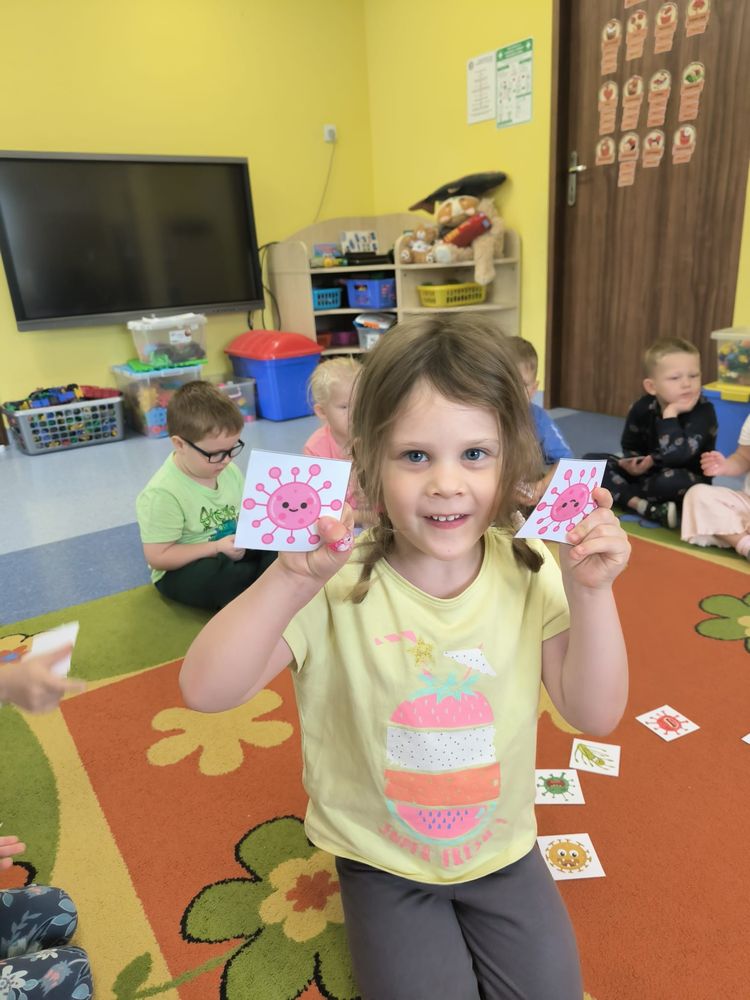 Na początku zajęć dzieci wysłuchały wiersza poświęconego czystym rączkom. Biedronki, dzięki eksperymentowi z brokatem, odkryły, jak szybko roznoszą się zarazki, wirusy i bakterie, gdy nie myjemy rąk. Uczestniczyły w zabawie ruchowej oraz ćwiczyły swoją spostrzegawczość podczas jednego z zadań. Poznały etapy prawidłowego mycia rąk i brały udział w eksperymencie „Uciekające zarazki”, który uświadomił im, jak istotne jest używanie mydła podczas mycia. Na zakończenie zajęć dzieci wykonały pracę plastyczną.