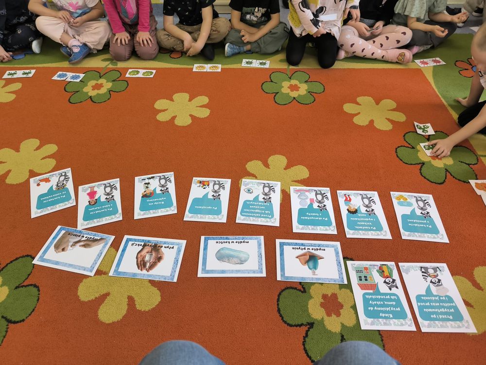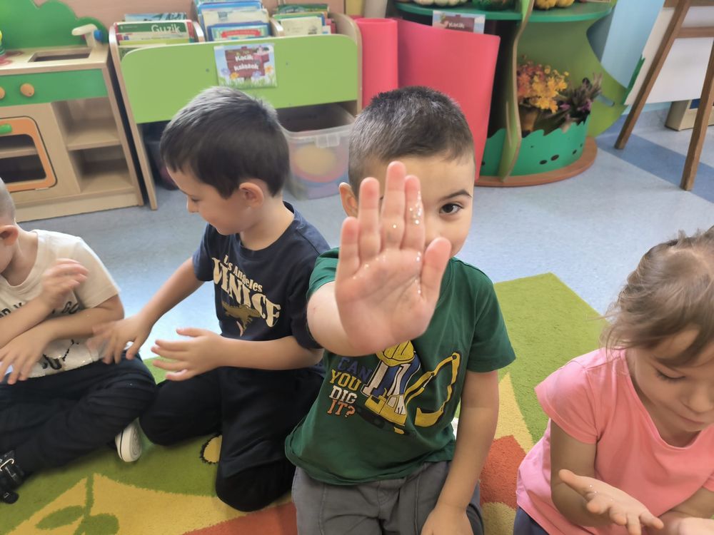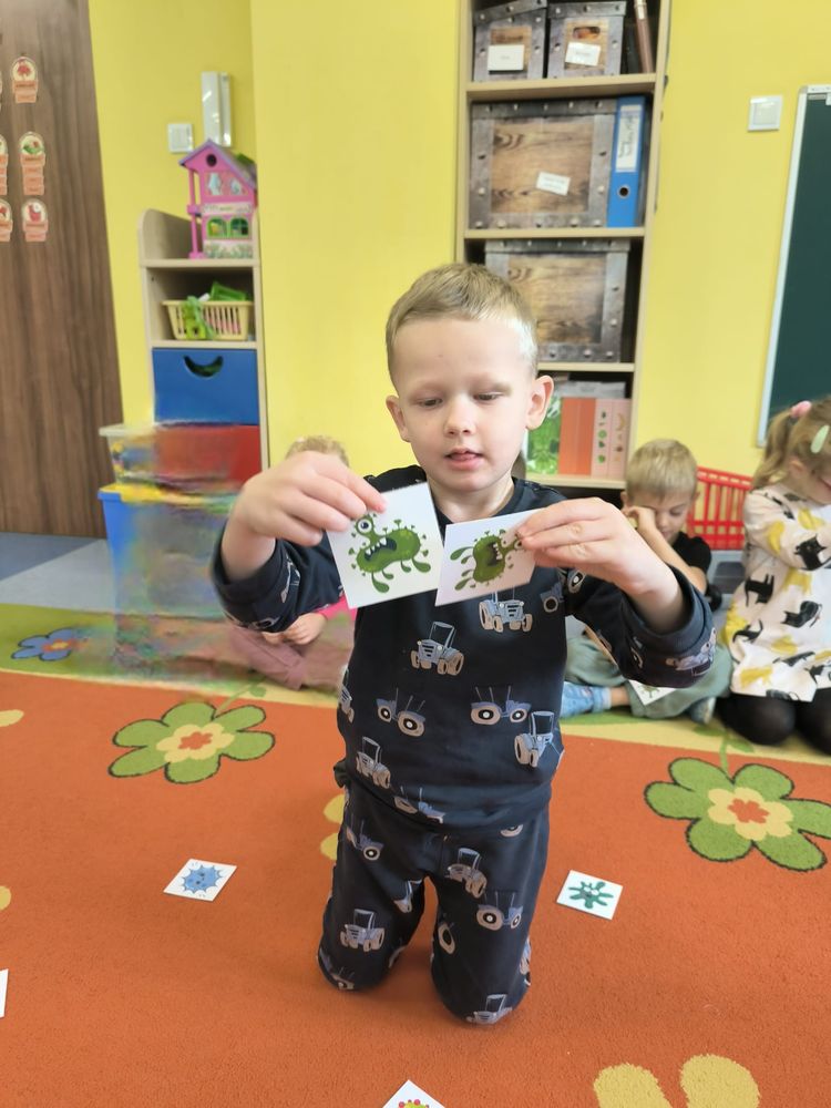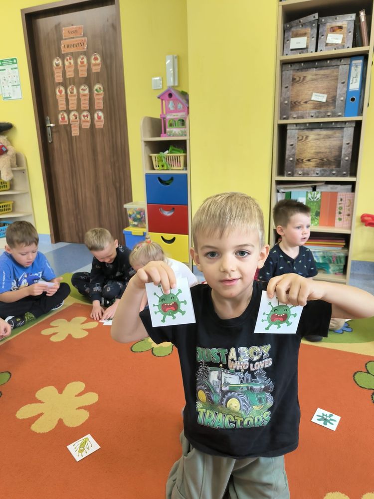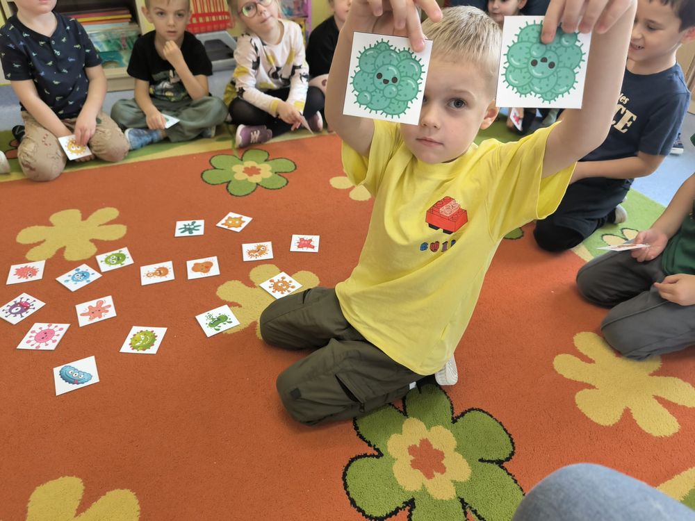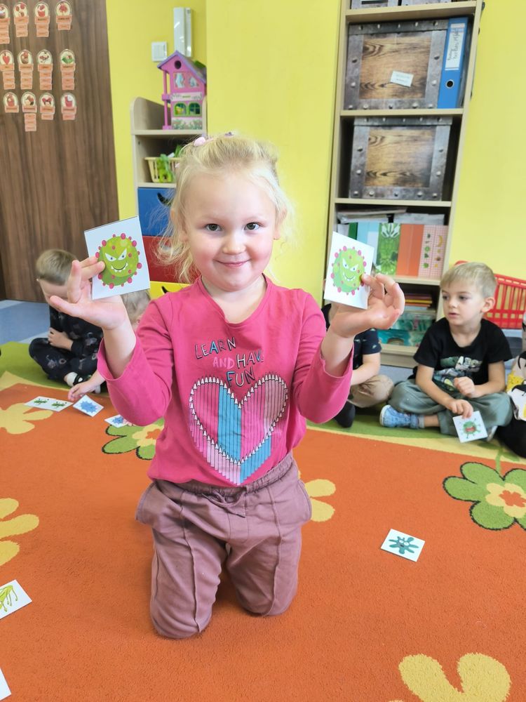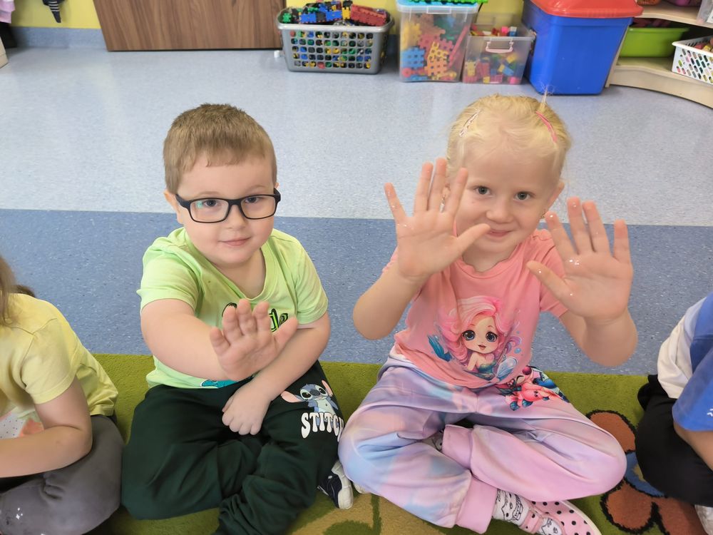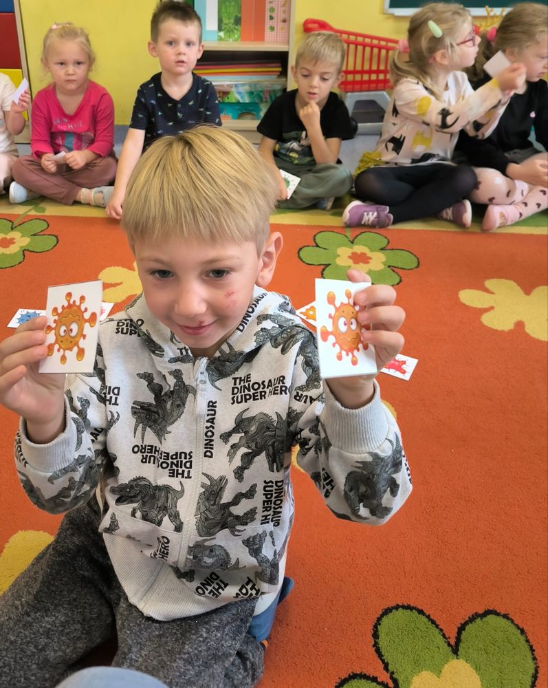 Na początku zajęć dzieci wysłuchały wiersza poświęconego czystym rączkom. Biedronki, dzięki eksperymentowi z brokatem, odkryły, jak szybko roznoszą się zarazki, wirusy i bakterie, gdy nie myjemy rąk. Uczestniczyły w zabawie ruchowej oraz ćwiczyły swoją spostrzegawczość podczas jednego z zadań. Poznały etapy prawidłowego mycia rąk i brały udział w eksperymencie „Uciekające zarazki”, który uświadomił im, jak istotne jest używanie mydła podczas mycia. Na zakończenie zajęć dzieci wykonały pracę plastyczną.