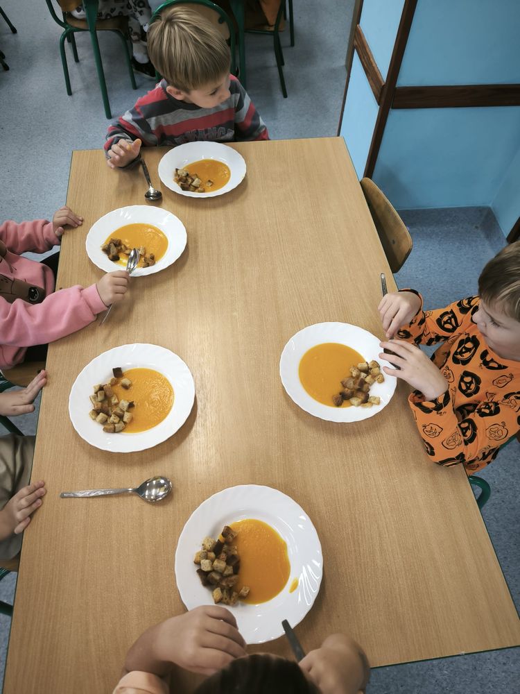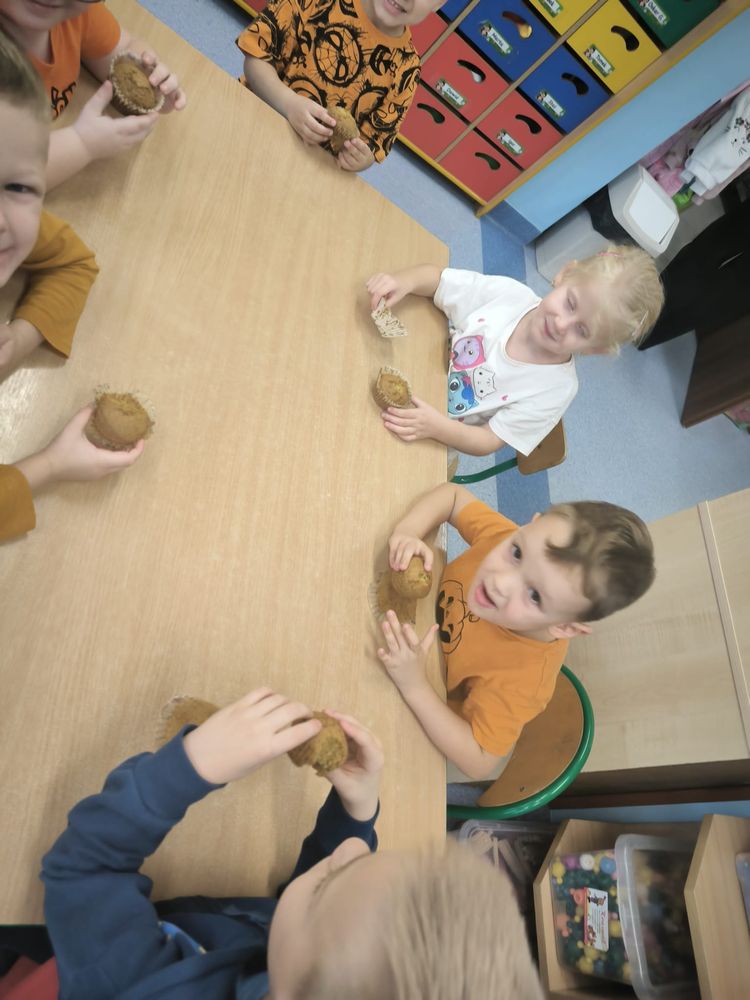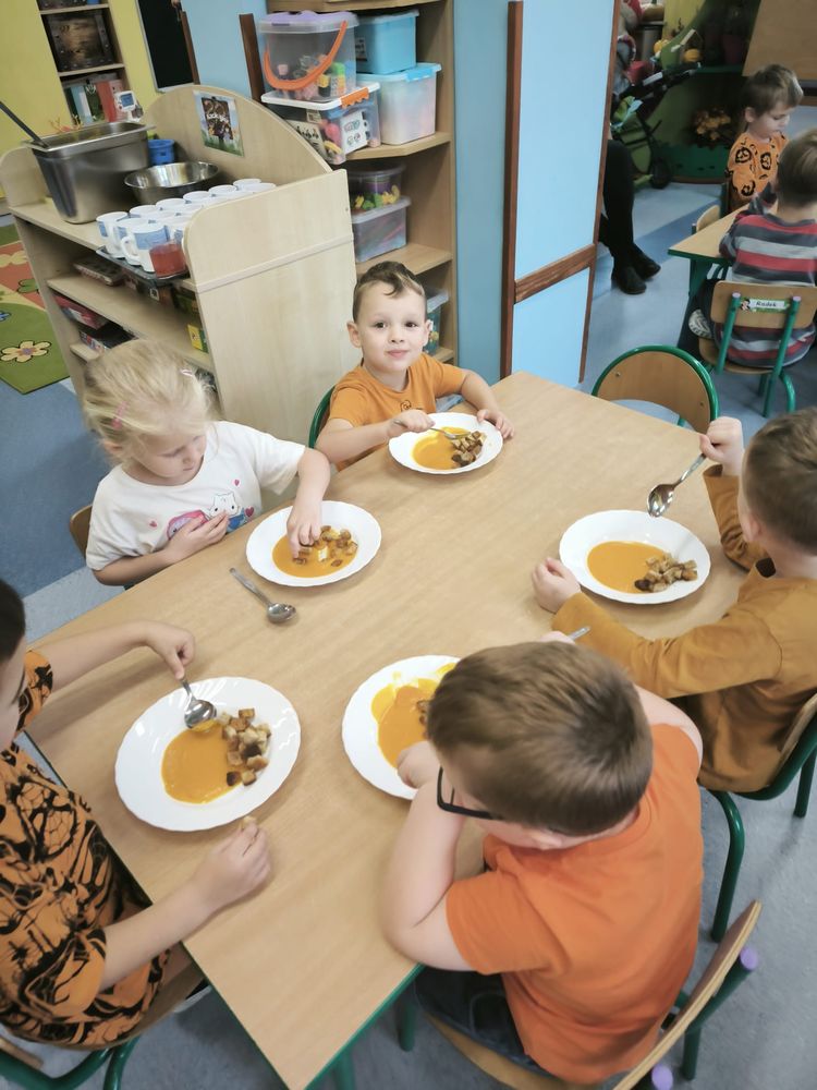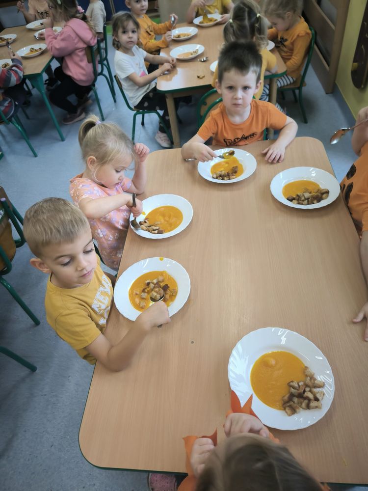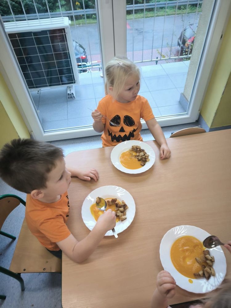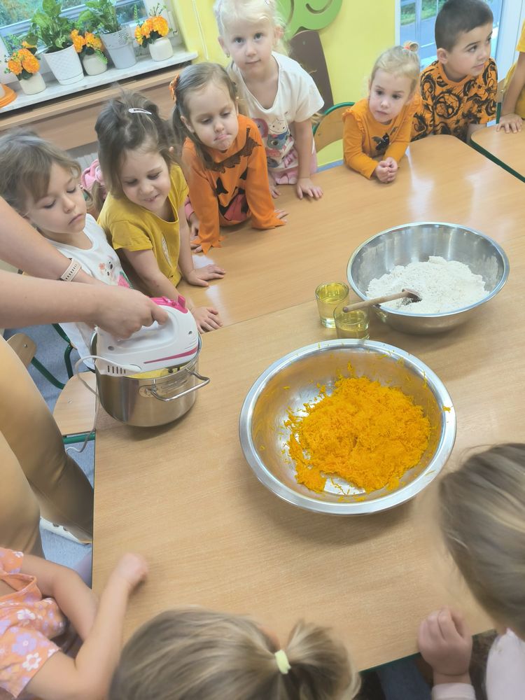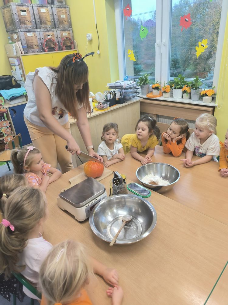24 października dzieci z grupy Biedronek obchodziły Dzień Dyni, który obfitował w liczne atrakcje. Pierwszym punktem zajęć było przygotowanie ciasta na pyszne dyniowe muffinki, które następnie upiekły nasze panie kucharki. Dzieci aktywnie uczestniczyły w procesie ich przygotowywania, mieszając suche składniki, przeliczając jajka potrzebne do ciasta oraz pomagając w ubijaniu piany. Kolejnym punktem dnia były zajęcia na dywanie, podczas których dzieci rozwijały swoją spostrzegawczość, umiejętności matematyczne oraz zdolność do współpracy w grupie. Panie kucharki przygotowały również dla dzieci niespodziankę w postaci pysznej zupy dyniowej. Na zakończenie dzieci otrzymały pamiątkowe dyplomy i miały okazję uczestniczyć w sesji zdjęciowej w dyniowej fotobudce.