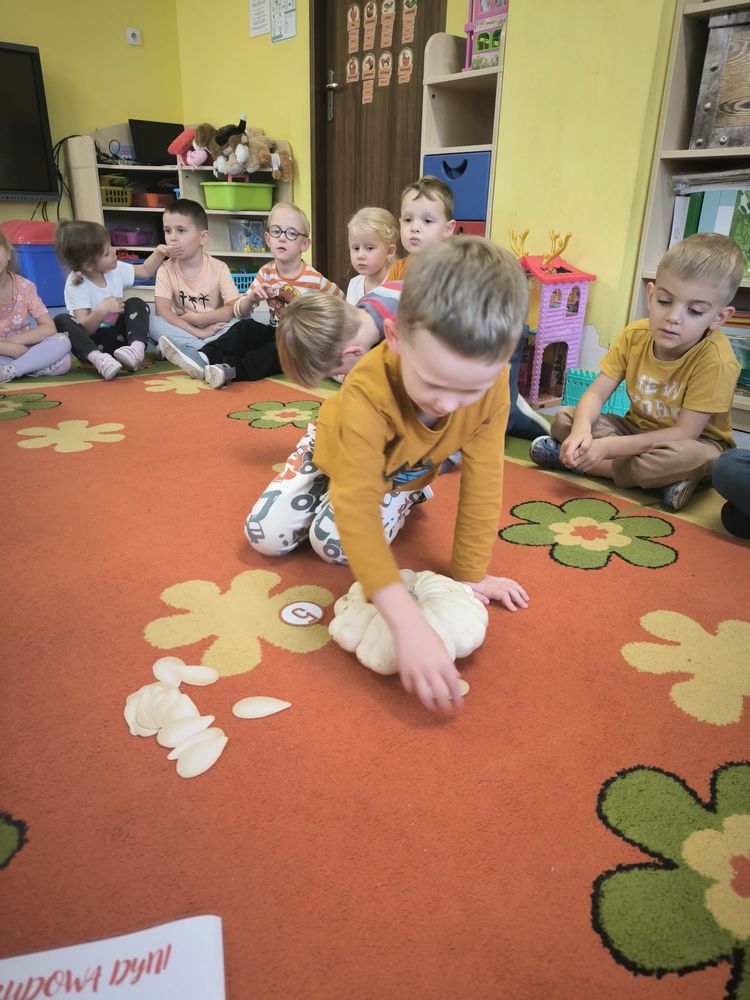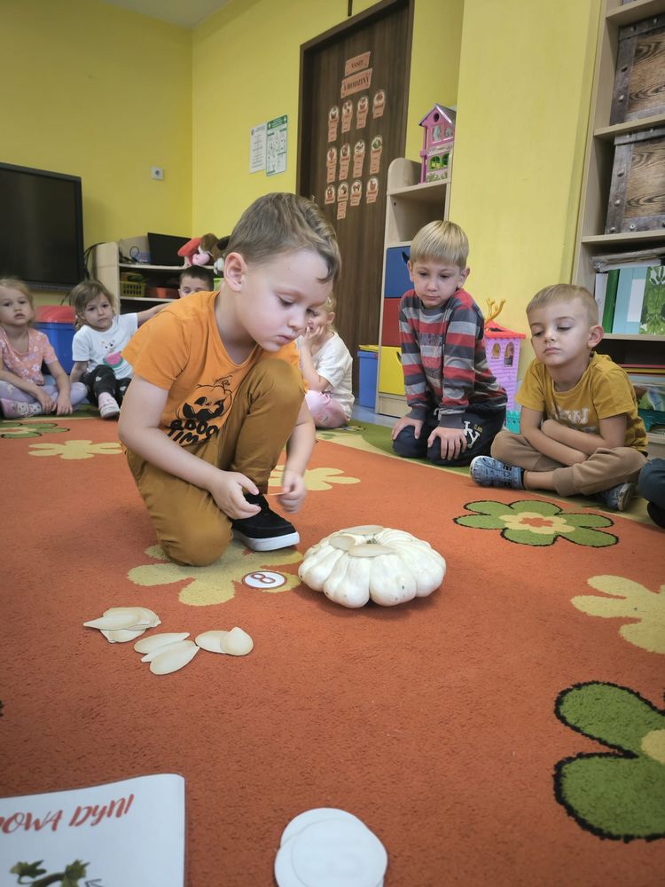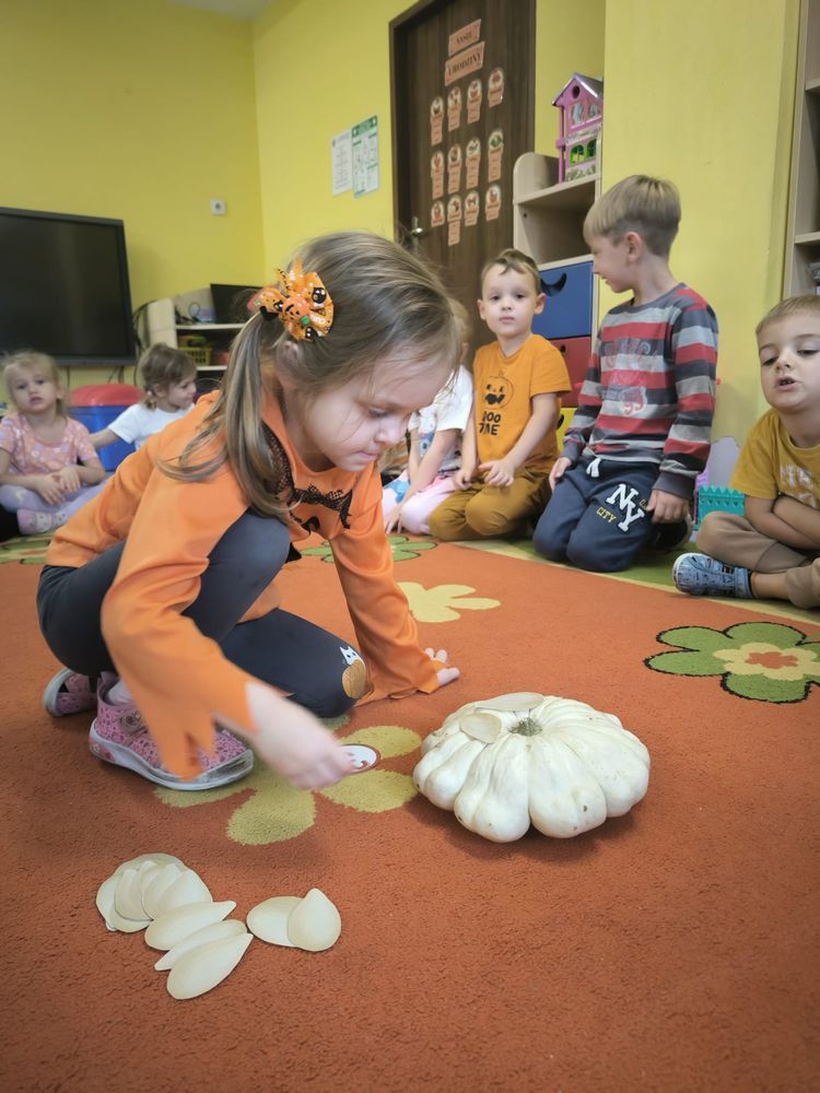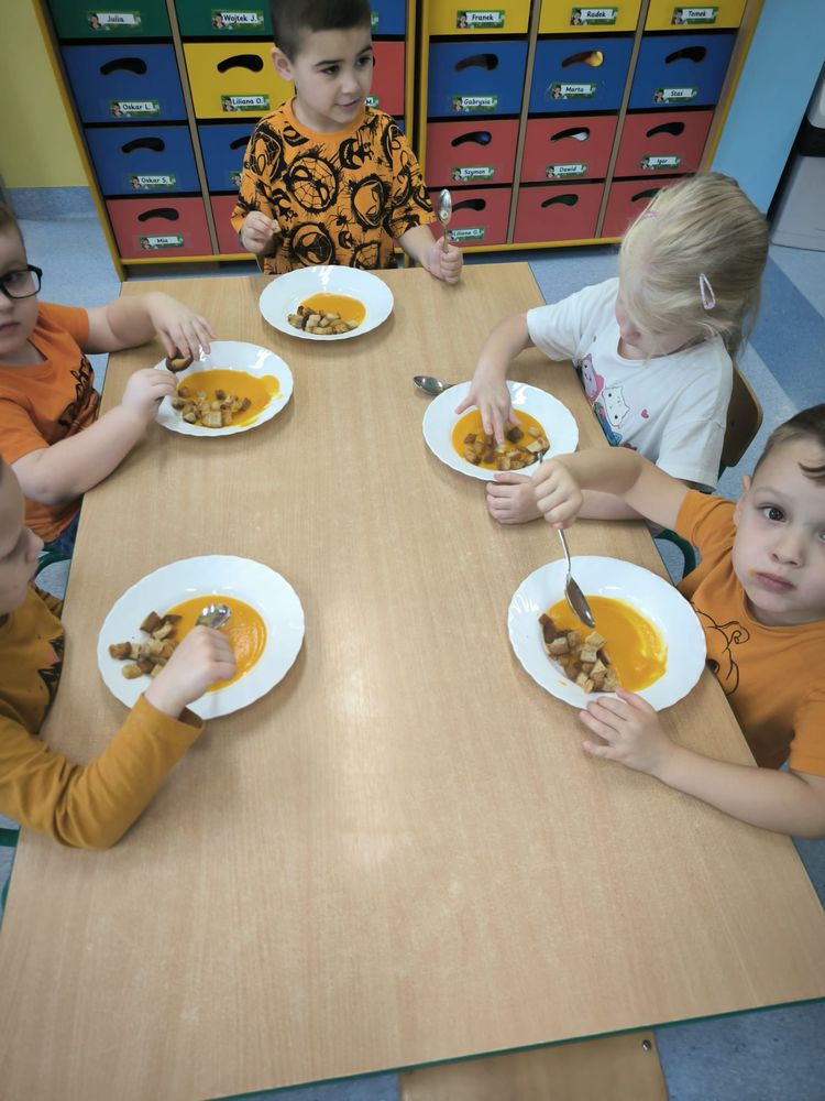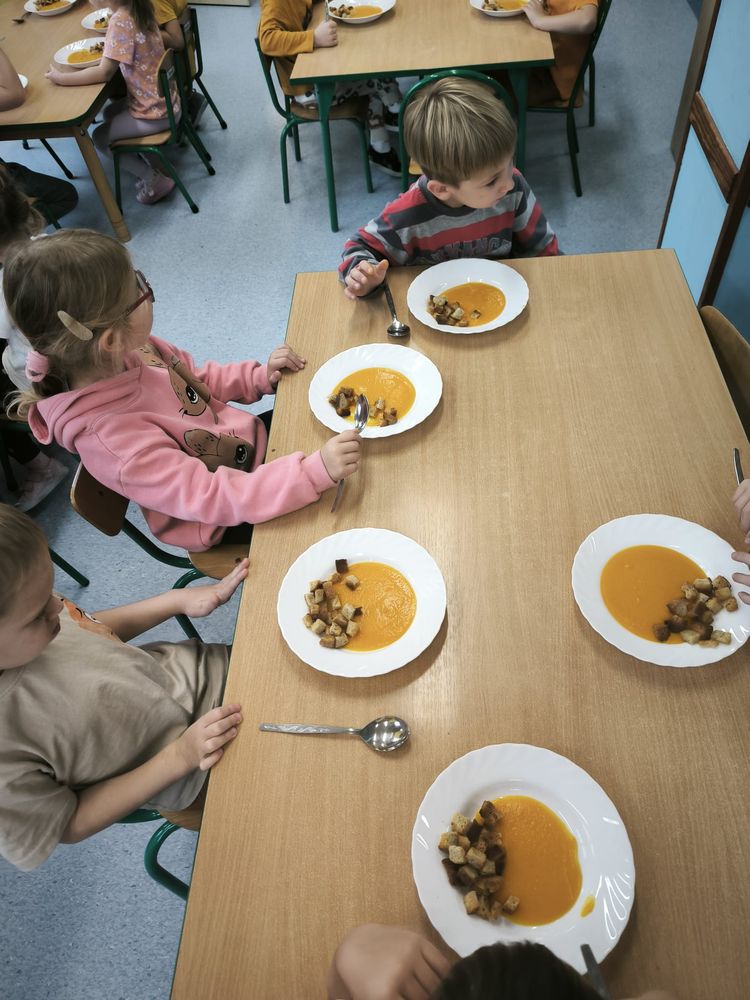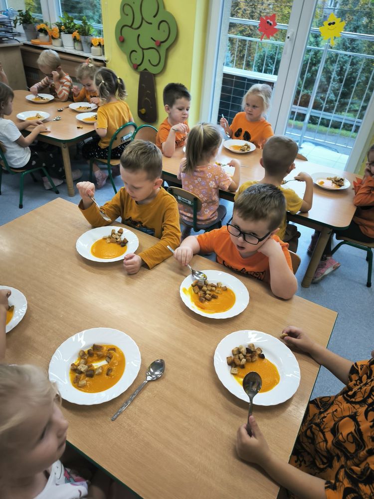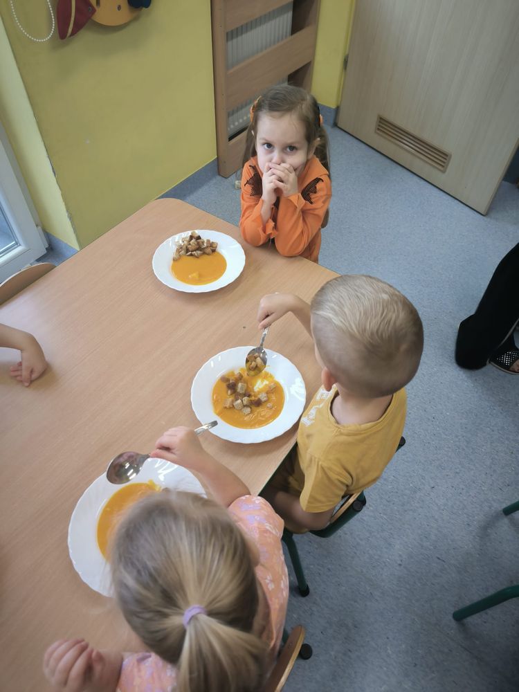 24 października dzieci z grupy Biedronek obchodziły Dzień Dyni, który obfitował w liczne atrakcje. Pierwszym punktem zajęć było przygotowanie ciasta na pyszne dyniowe muffinki, które następnie upiekły nasze panie kucharki. Dzieci aktywnie uczestniczyły w procesie ich przygotowywania, mieszając suche składniki, przeliczając jajka potrzebne do ciasta oraz pomagając w ubijaniu piany. Kolejnym punktem dnia były zajęcia na dywanie, podczas których dzieci rozwijały swoją spostrzegawczość, umiejętności matematyczne oraz zdolność do współpracy w grupie. Panie kucharki przygotowały również dla dzieci niespodziankę w postaci pysznej zupy dyniowej. Na zakończenie dzieci otrzymały pamiątkowe dyplomy i miały okazję uczestniczyć w sesji zdjęciowej w dyniowej fotobudce.