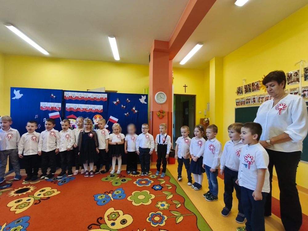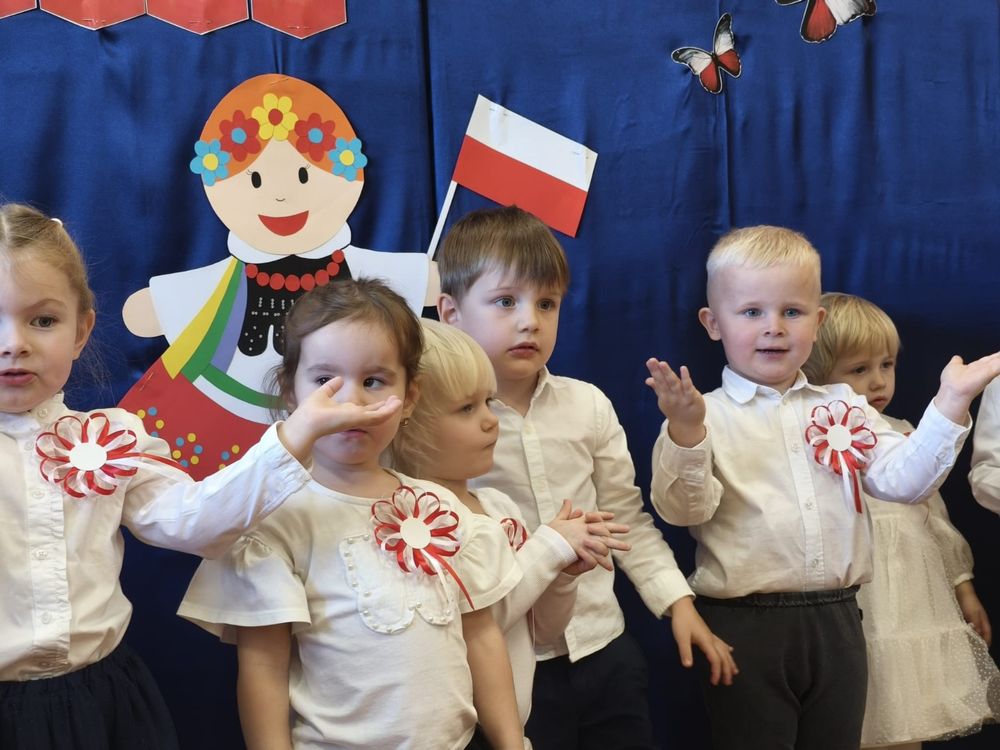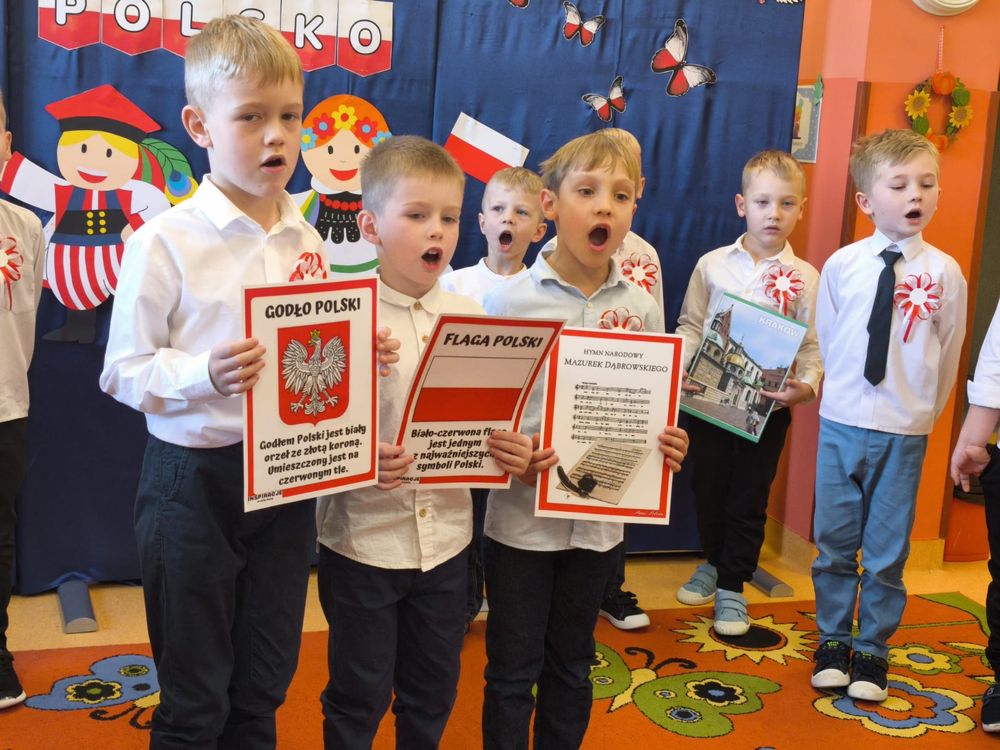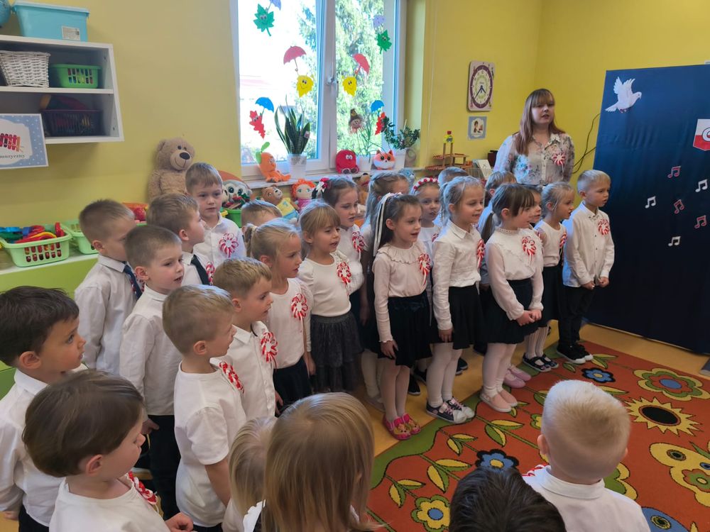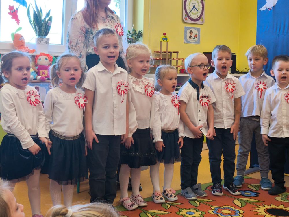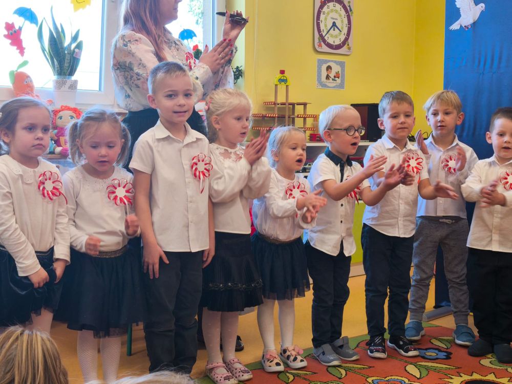 W piątek 7 listopada, jak każdego roku nasze przedszkole dołączyło do akcji „Szkoła do hymnu.” Z okazji zbliżającego się Święta Niepodległości, wszystkie dzieci zebrały się w jednej sali, aby o symbolicznej godzinie 11:11 uroczyście odśpiewać hymn narodowy. Następnie, każda grupa wykonała przygotowane krótkie programy artystyczne, które dawały wyraz pięknej patriotycznej postawy przedszkolaków i potrafiły wzruszyć do łez.
