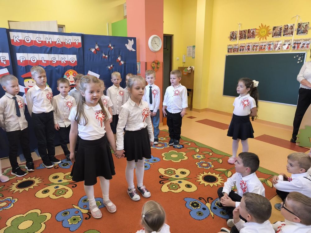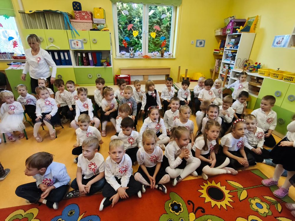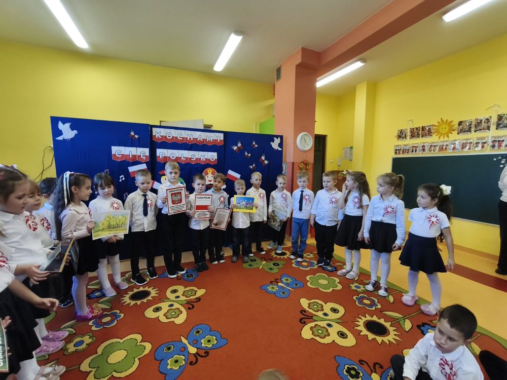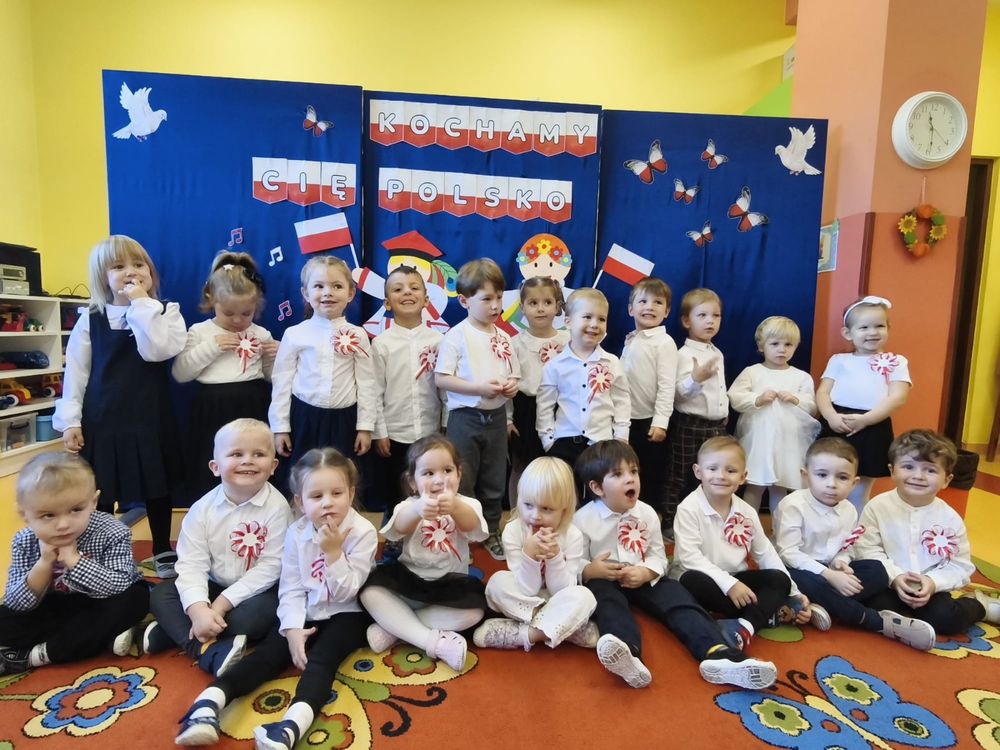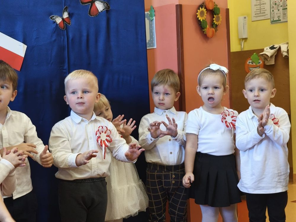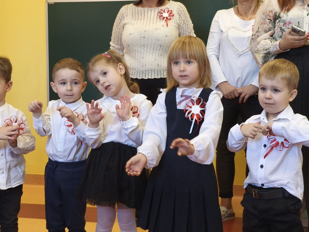 W piątek 7 listopada, jak każdego roku nasze przedszkole dołączyło do akcji „Szkoła do hymnu.” Z okazji zbliżającego się Święta Niepodległości, wszystkie dzieci zebrały się w jednej sali, aby o symbolicznej godzinie 11:11 uroczyście odśpiewać hymn narodowy. Następnie, każda grupa wykonała przygotowane krótkie programy artystyczne, które dawały wyraz pięknej patriotycznej postawy przedszkolaków i potrafiły wzruszyć do łez.