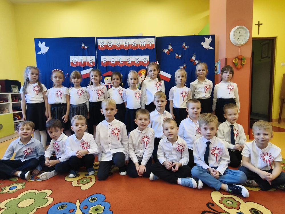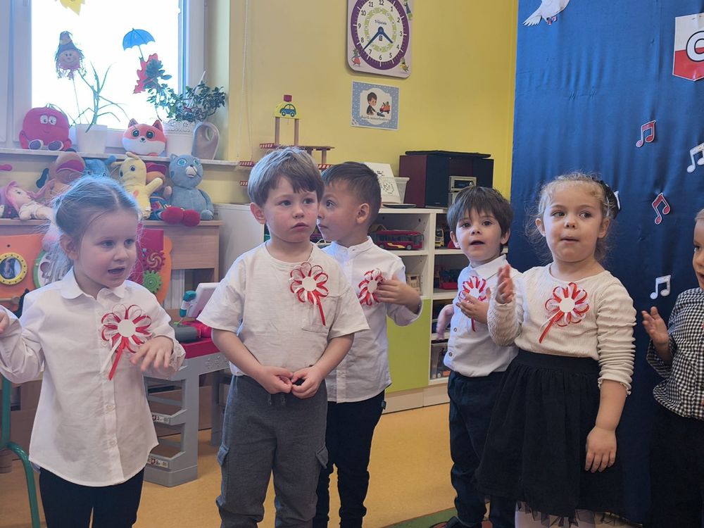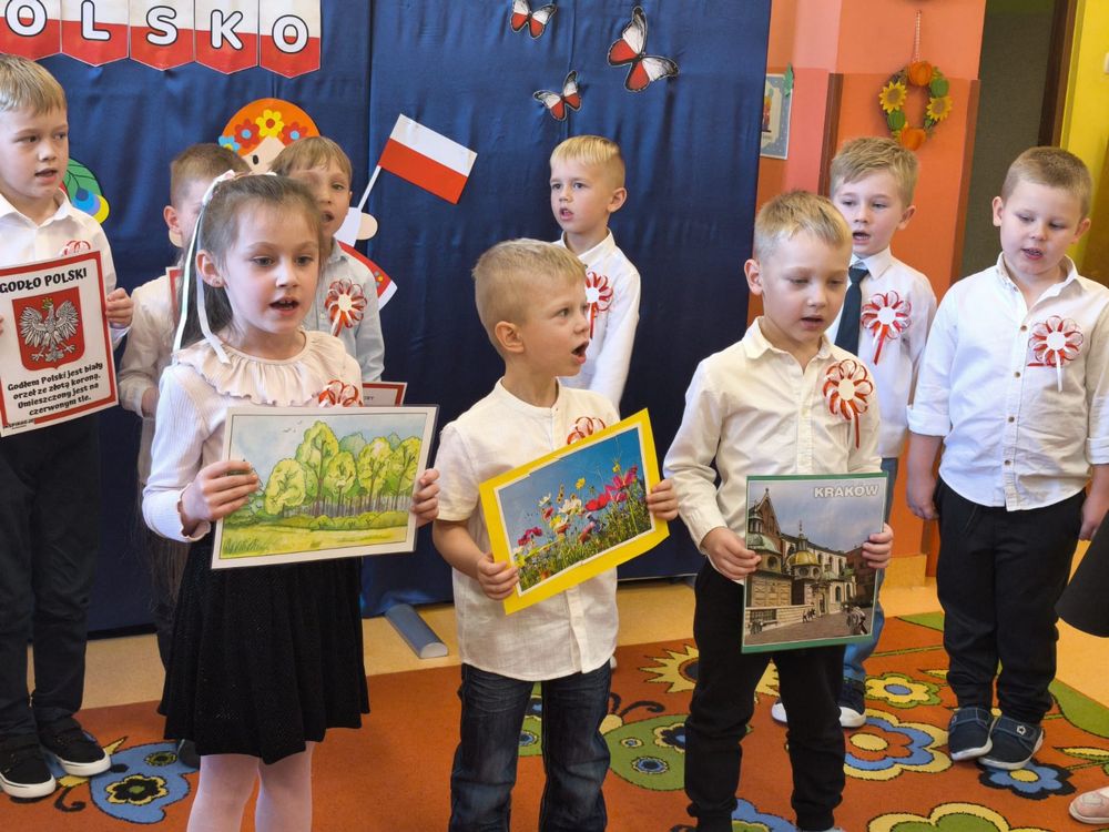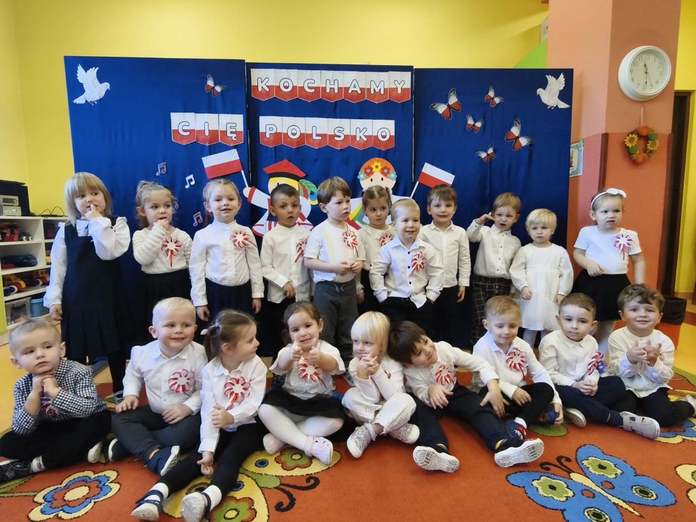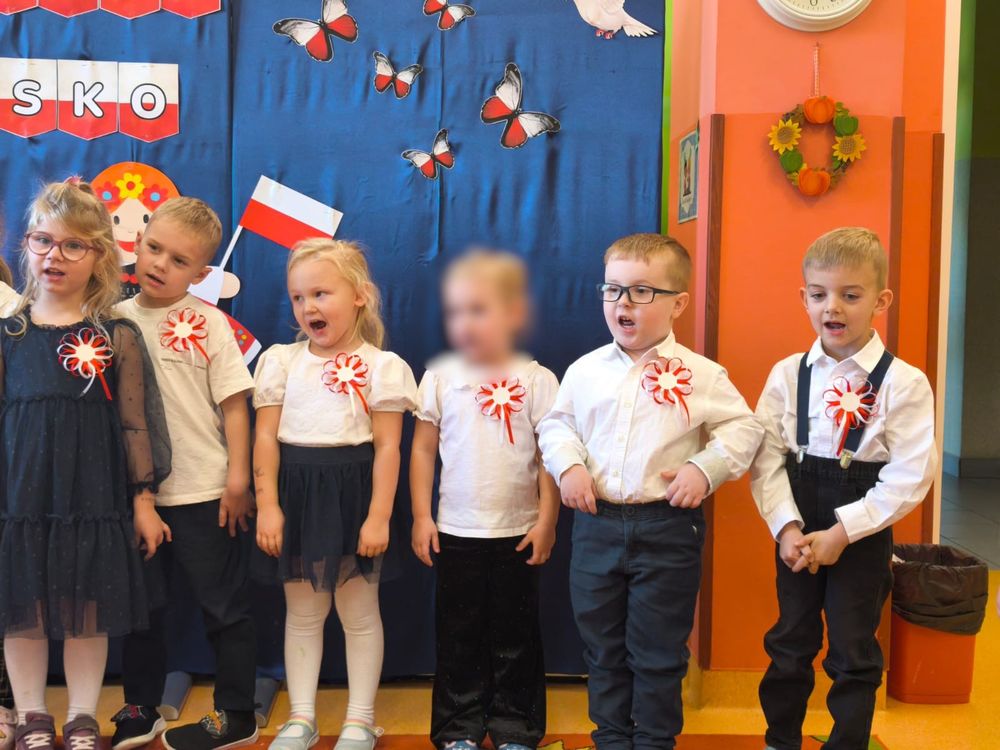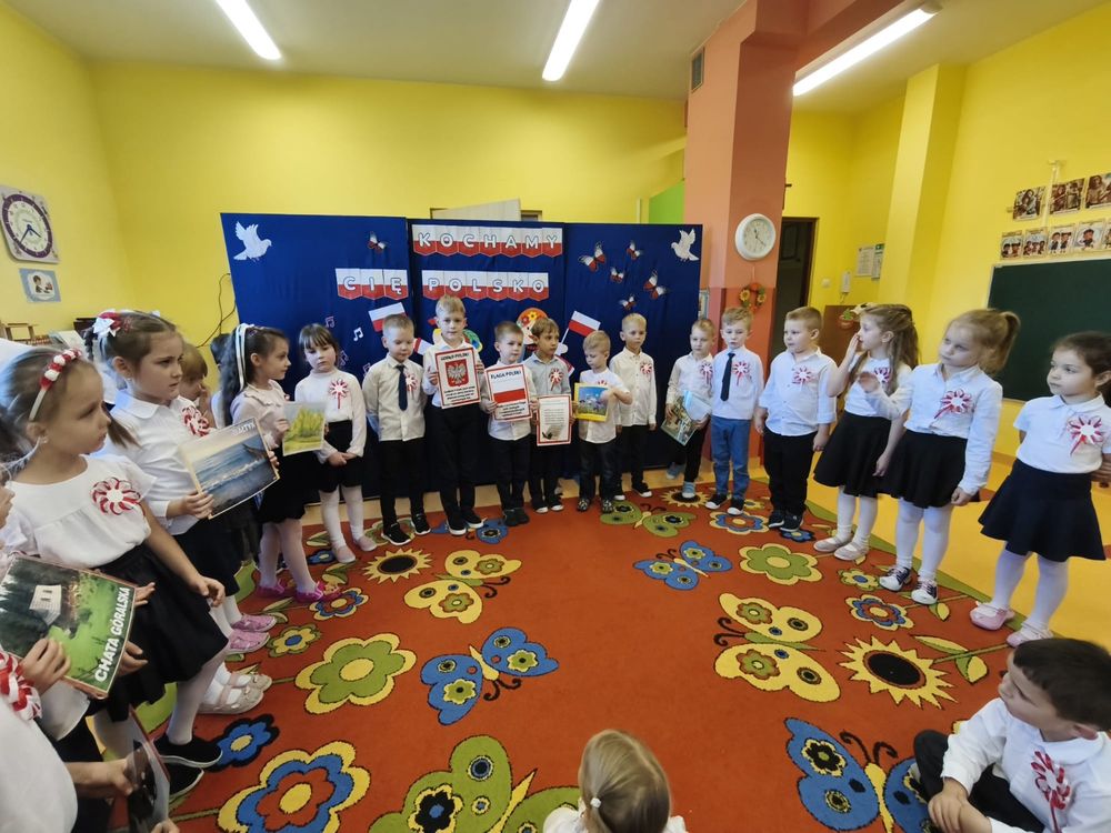 W piątek 7 listopada, jak każdego roku nasze przedszkole dołączyło do akcji „Szkoła do hymnu.” Z okazji zbliżającego się Święta Niepodległości, wszystkie dzieci zebrały się w jednej sali, aby o symbolicznej godzinie 11:11 uroczyście odśpiewać hymn narodowy. Następnie, każda grupa wykonała przygotowane krótkie programy artystyczne, które dawały wyraz pięknej patriotycznej postawy przedszkolaków i potrafiły wzruszyć do łez.