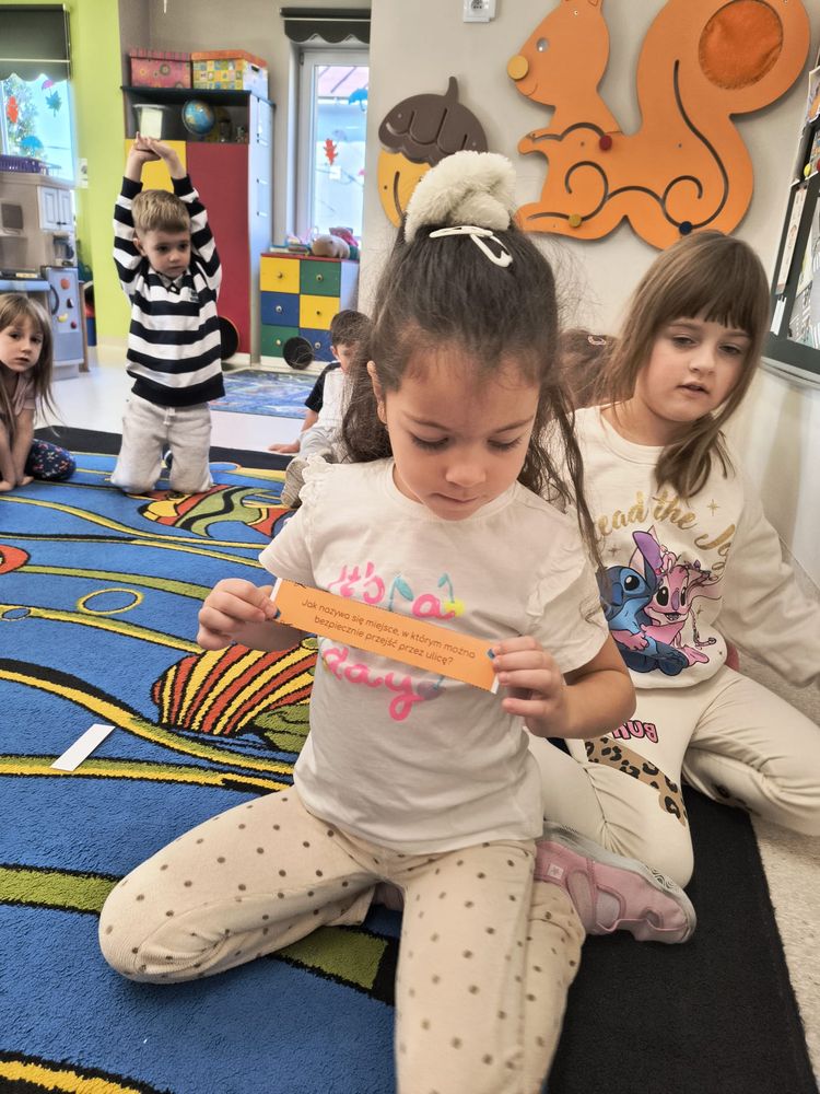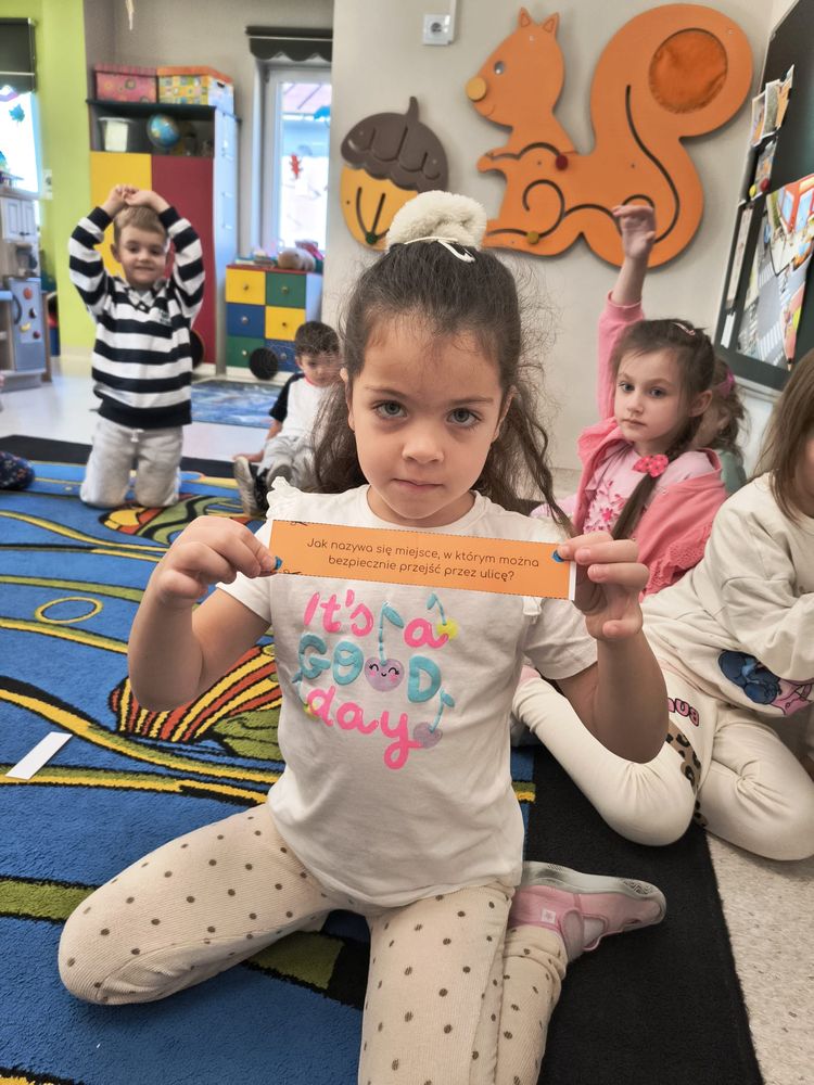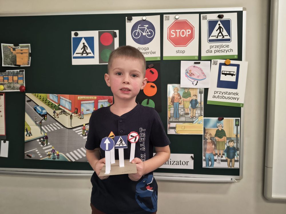- poznały znaczenie sygnalizacji świetlnej i znaków drogowych, bawiąc się w zabawy tematyczne i odgrywając scenki związane z ruchem drogowym.
