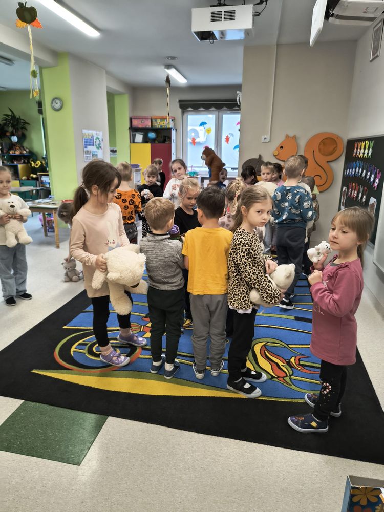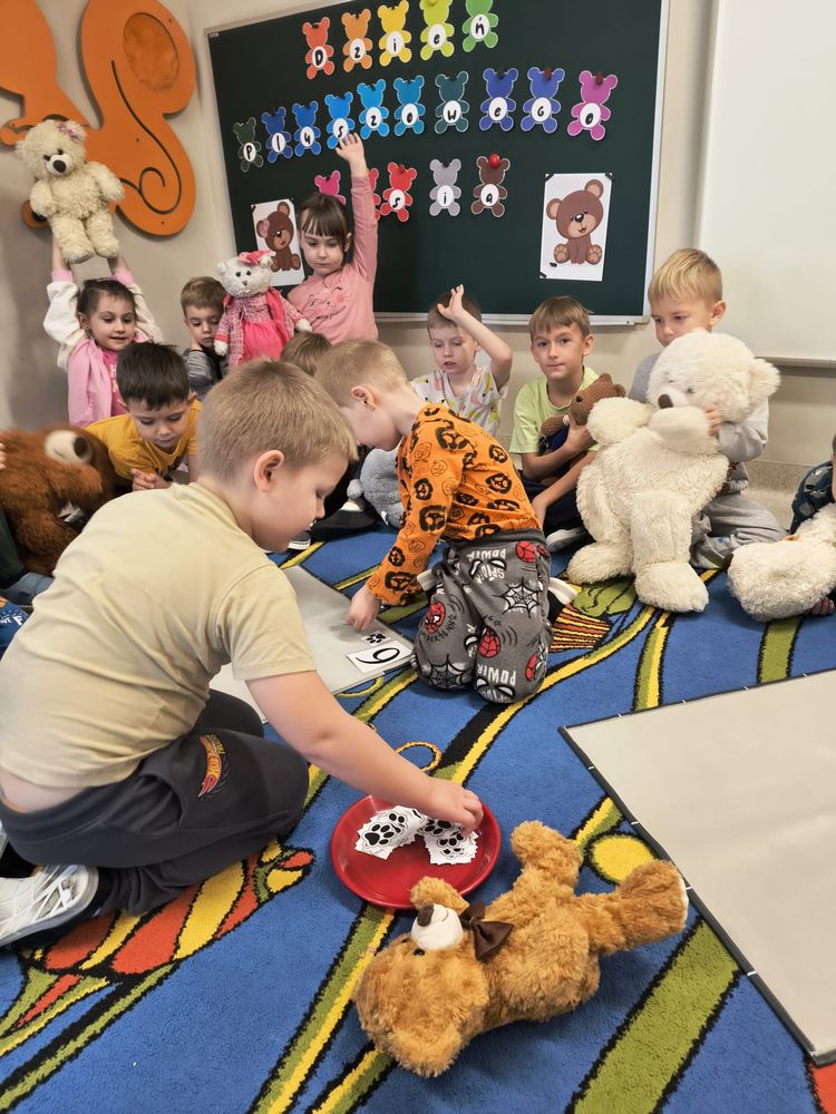 W dniu 25.11.2025r. grupa „Pszczółek” świętowała Międzynarodowy Dzień Pluszowego Misia. Tego dnia do przedszkola zawitały ukochane pluszaki dzieci, a zajęcia wypełniły misiowe zadania i wspólna zabawa. Na początku dzieci obejrzały filmik edukacyjny, dzięki któremu dowiedziały się, skąd wziął się pomysł na ustanowienie tego święta oraz dlaczego pluszowy miś jest tak wyjątkowym przyjacielem najmłodszych. Podczas zajęć przedszkolaki: