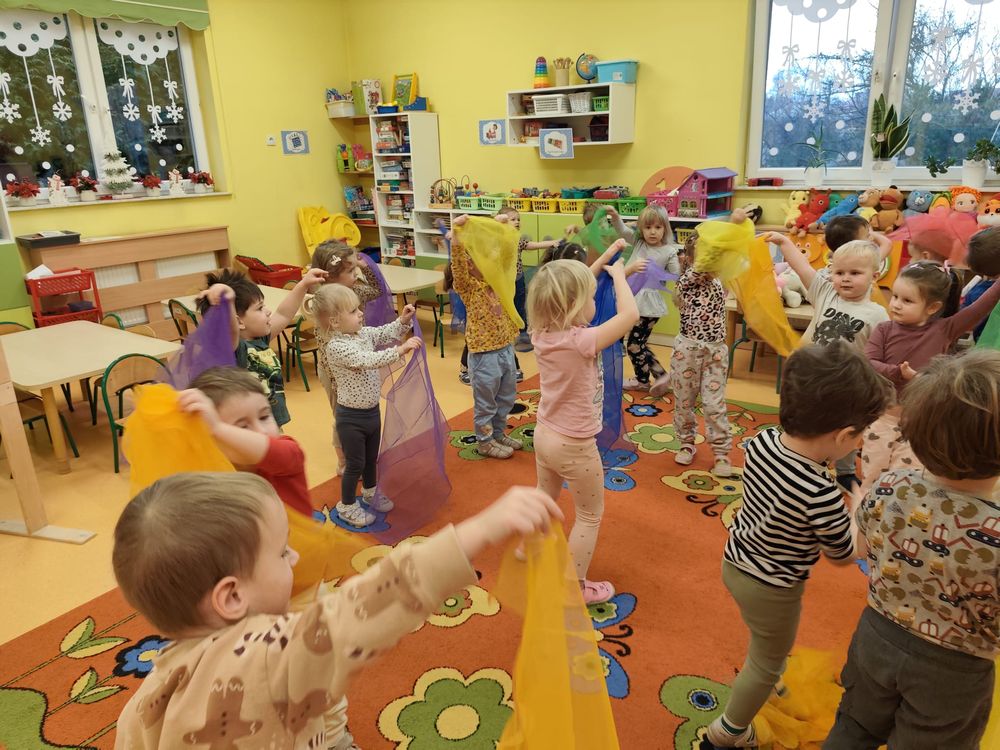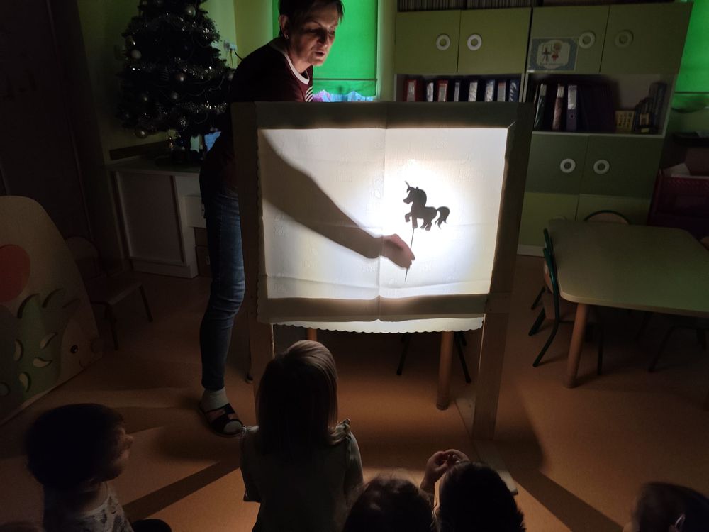 W grupie Motylków grudniowe zajęcia w ramach innowacji pedagogicznej pt. ,,Czuciaki z Krainy Emocji", poświęcone były kolejnej emocji - tym razem był to strach. Dzieci poznały Bojka, nowego Czuciaka, który mieszka na Wyspie Strachu. Oglądając bajkę o Janku, który bał się cieniowego potwora, Motylki zobaczyły jak w jego lękach zawsze towarzyszył mu Bojek. Dzieci podawały przykłady sytuacji, które wywołują u nich strach oraz sposoby na jego przezwyciężanie. Podczas zabawy ruchowej z chustami , towarzyszyła nam muzyka klasyczna, w trakcie której dzieci odzwierciedlały ruchem jej łagodny lub groźny nastrój. Jak się okazało, ciekawą metodą na pokonywanie strachu był teatrzyk cieni, który sprawił dzieciom wiele radości. Na zakończenie Motylki tradycyjnie pokolorowały sylwetę Bojka i otrzymały kolejną naklejkę do swoich czuciakowych książeczek.