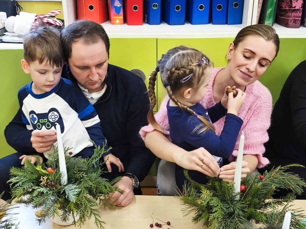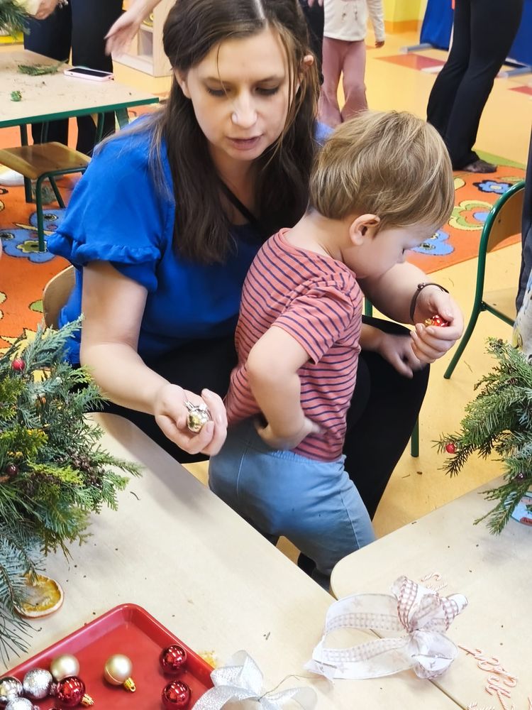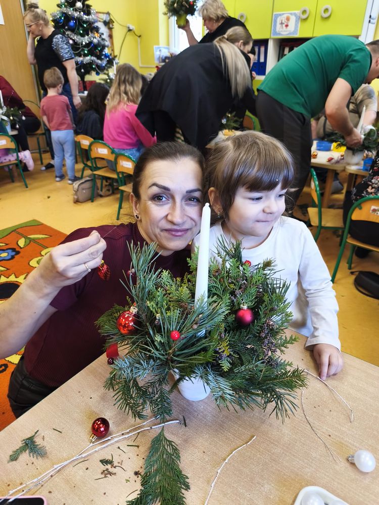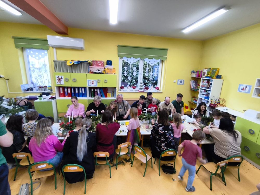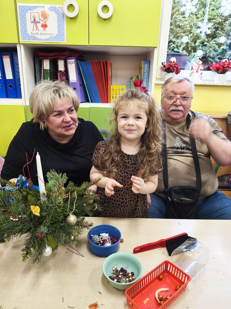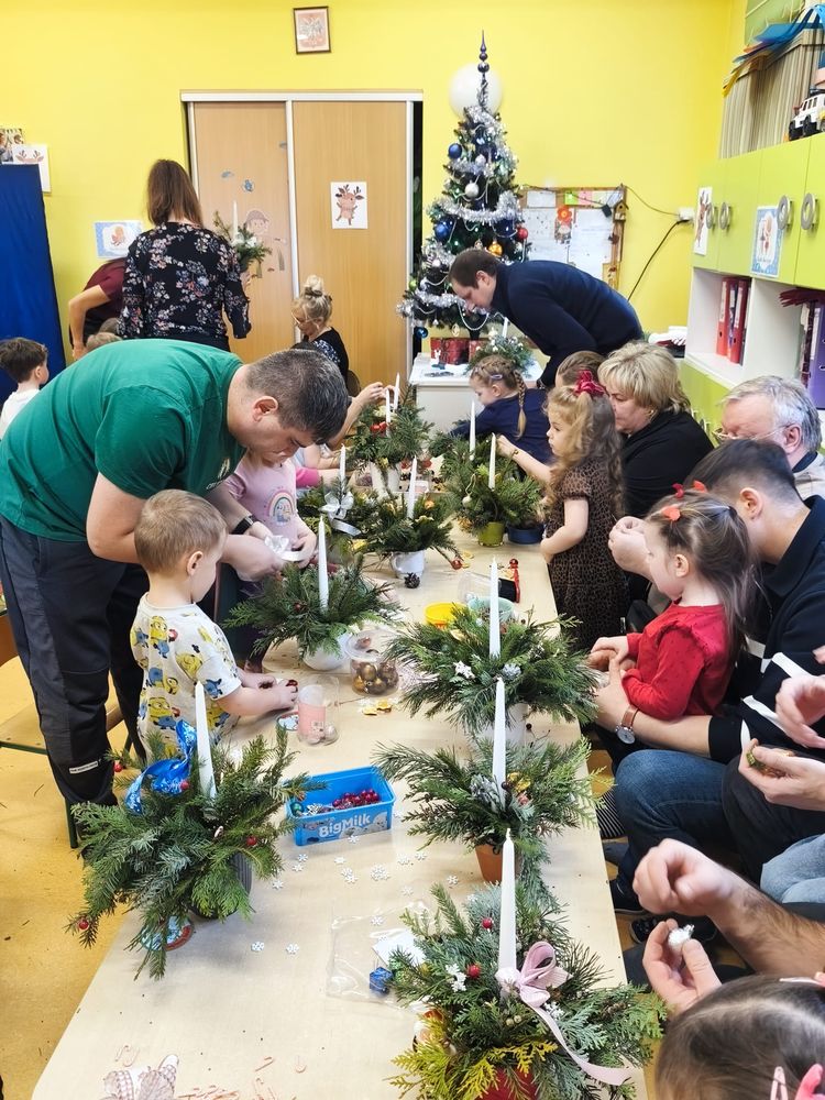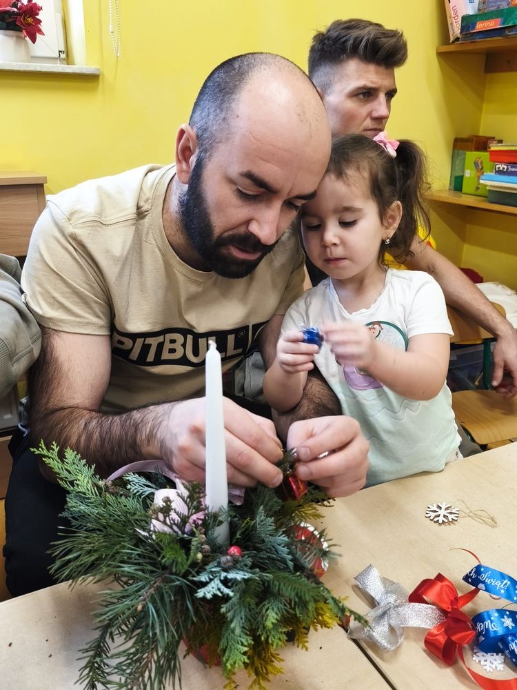 Tuż przed Świętami Bożego Narodzenia Motylki gościły w swojej sali rodziców i dziadków, a wszystko za sprawa zajęć otwarty. Goście mogli zobaczyć jak wygląda nauka i zabawa w najmłodszej grupie oraz jak zachowują się ich dzieci w relacji z rówieśnikami i nauczycielem. Po zajęciach rozpoczęła się część warsztatowa, którą poprowadziła nasza Pani Agnieszka Wojtaszczyk. Rodzice wspólnie z dziecmi wykonywali świąteczne stroiki, a wszystko to odbywało się w świątecznej atmosferze przy dźwiękach kolęd. Była również okazja do zrobienia zdjęcia w świątecznej fotobudce.