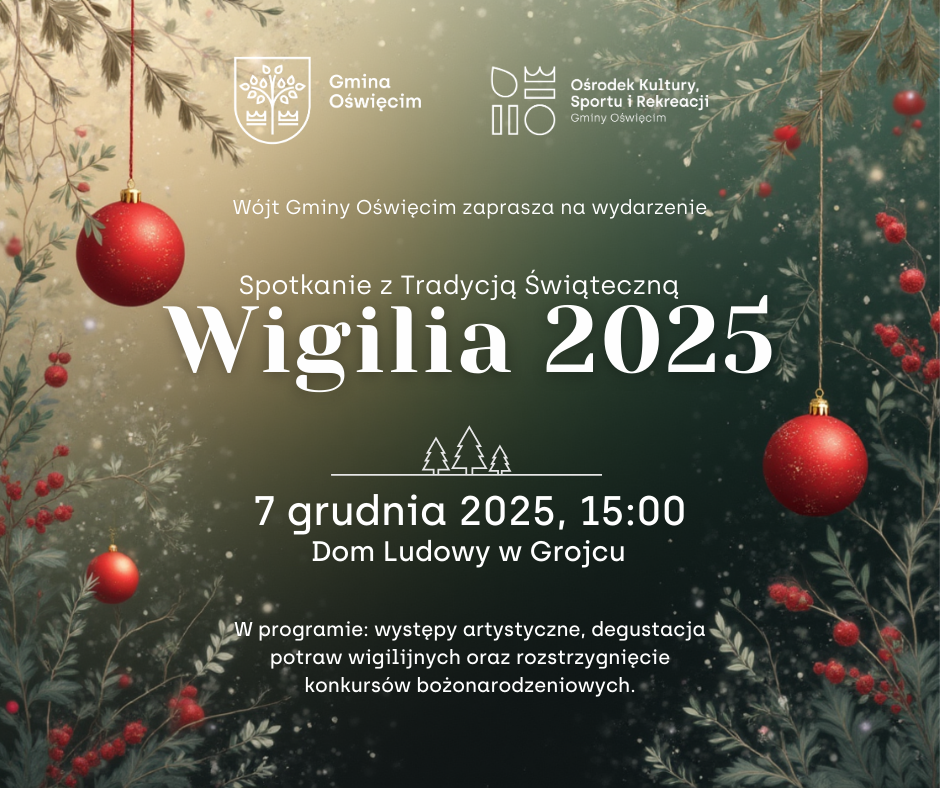 W programie: występy artystyczne: Grojczanie - ludowy zespół śpiewaczy oraz uczniowie Szkoła Podstawowa im. Henryka Sienkiewicza w Grojcu, degustacja potraw świątecznych przygotowanych przez Koła Gospodyń Wiejskich i Uniwersytet Każdego Wieku oraz rozstrzygnięcie konkursów bożonarodzeniowych.