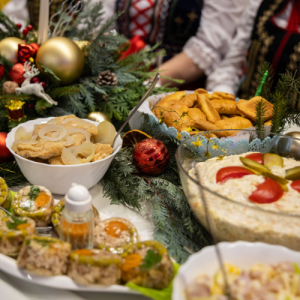 Na uczestników czekała degustacja tradycyjnych potraw wigilijnych przygotowanych przez Panie z Kół Gospodyń Wiejskich z Grojca, Dworów Drugich, Poręby Wielkiej, Stawów Monowskich, Włosienicy, Monowic, Stawów Grojeckich, Dworów oraz przez Uniwersytet Każdego Wieku we Włosienicy. Stoły wypełniły się świątecznymi smakami, które przywoływały wspomnienia rodzinnych wigilii.