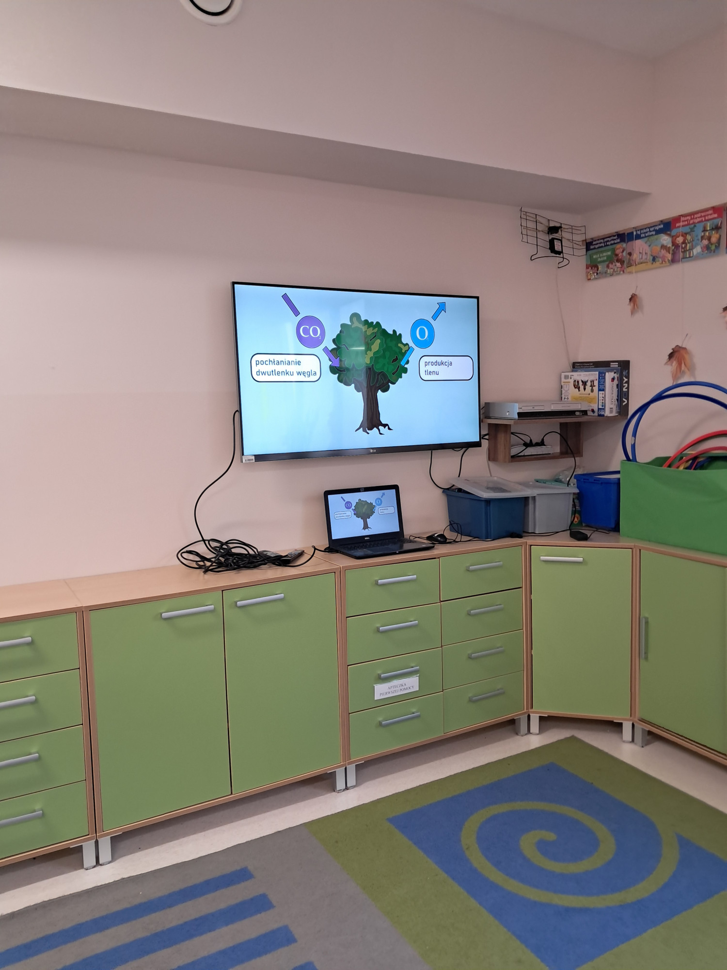 Dzieci na świetlicy również mogły poznać ogromne znaczenie drzew dla naszej planety. Oglądały filmik edukacyjny „Poznaj świat drzew”- zdobyły garść informacji o rodzajach drzew, ważności drzew na naszej planecie i w naszym codziennym życiu.