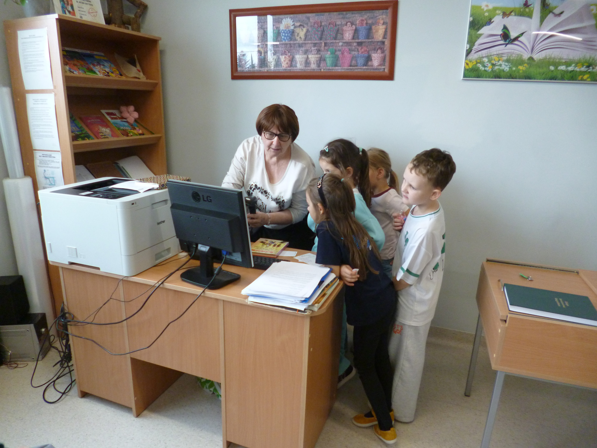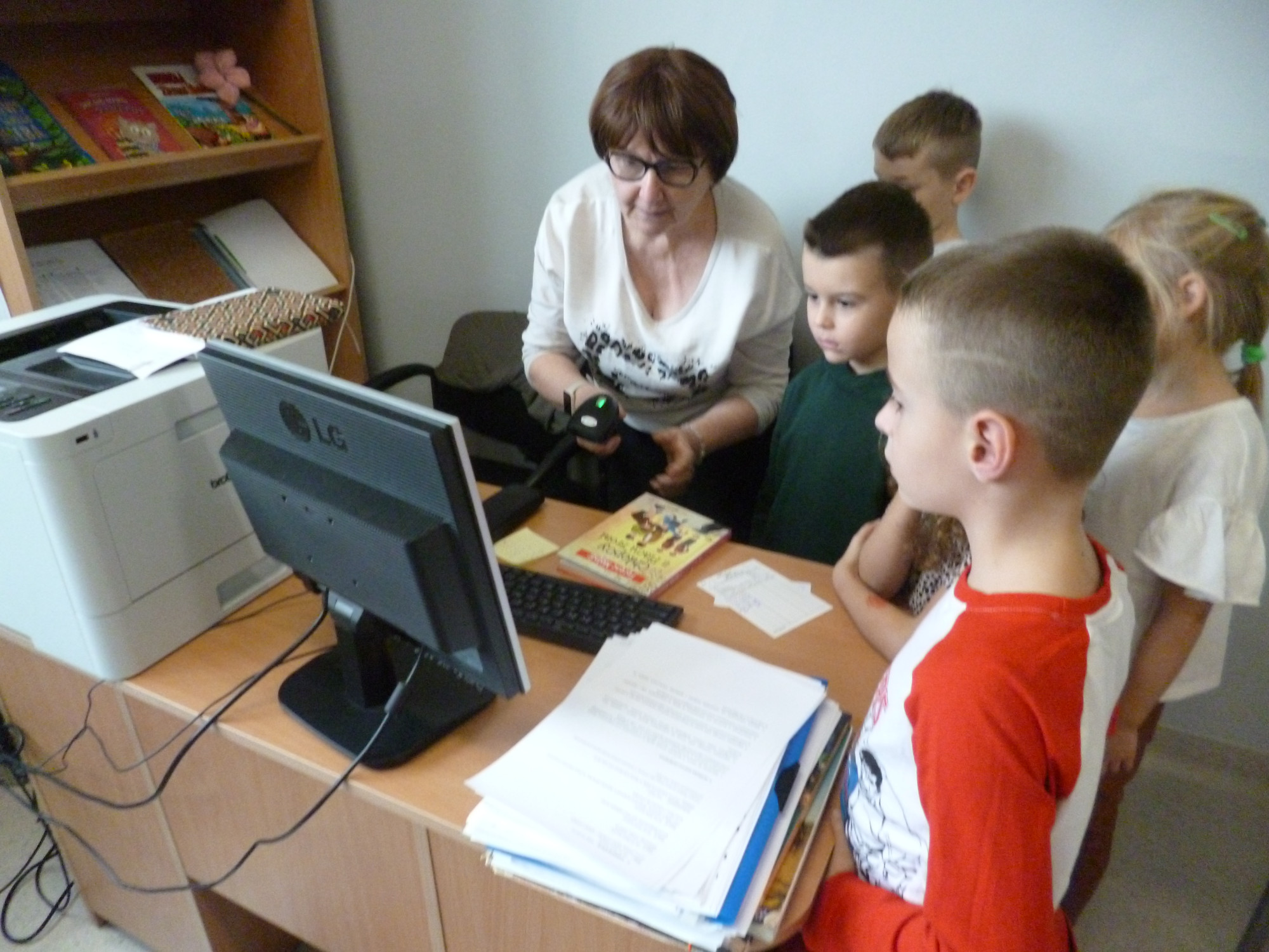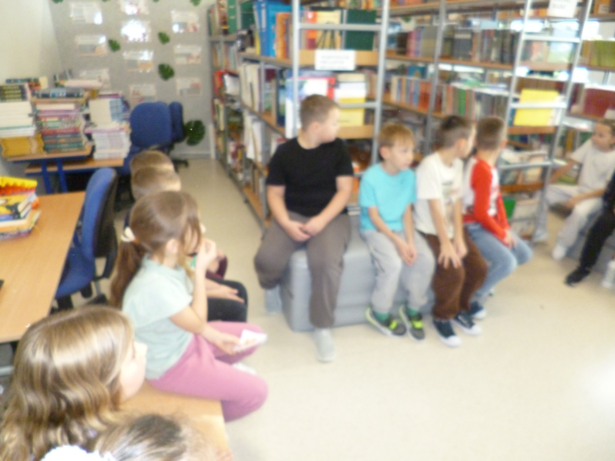 Dzieciaki chętnie odpowiadały na pytania pani bibliotekarki np. jakie książki czytają, czy warto czytać, czy często wypożyczają książki i czy lubią czytać. Spotkanie miało na celu przybliżenie najmłodszym roli biblioteki w życiu szkoły, zachęcenie do czytania książek oraz rozwijanie zainteresowań czytelniczych.