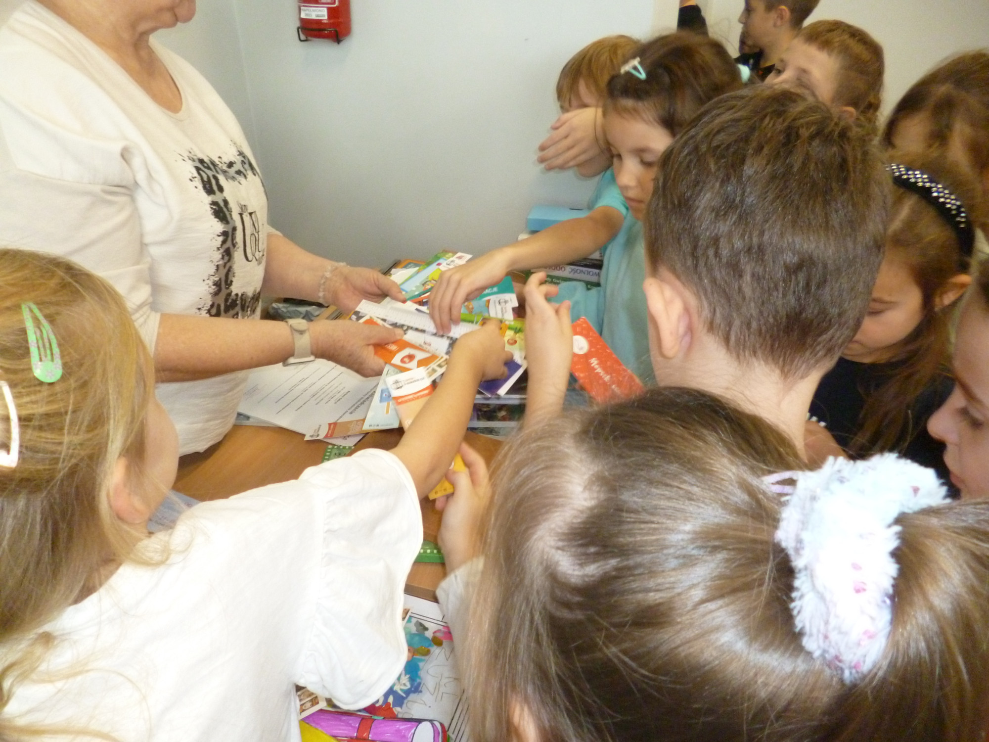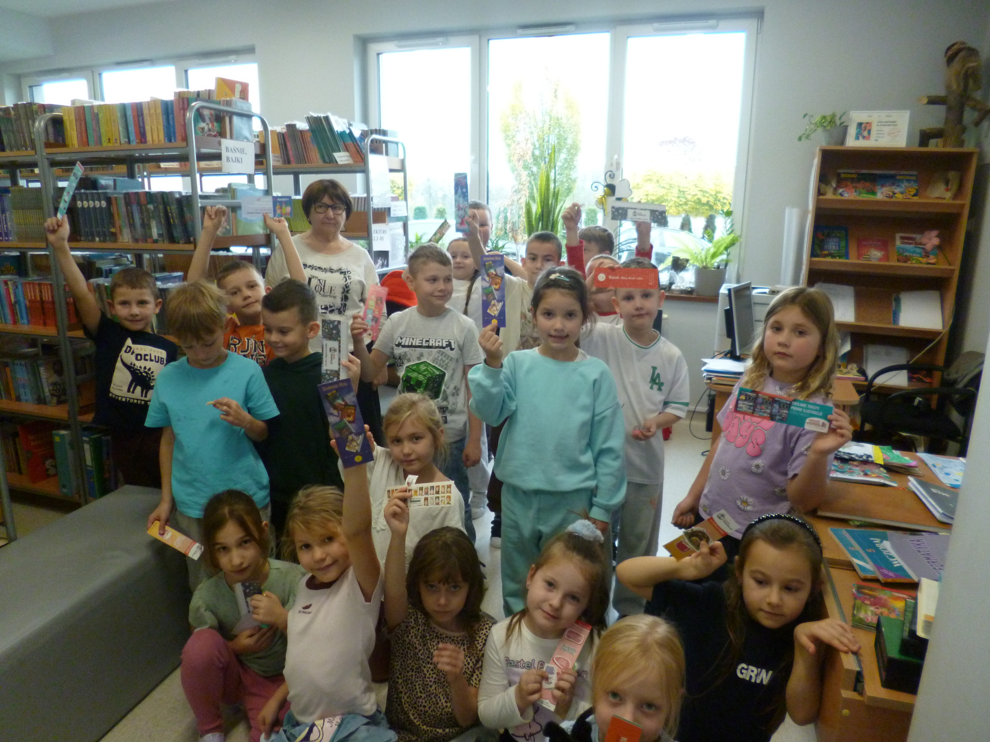 Na zakończenie każdy uczestnik otrzymał zakładkę do książki oraz zachętę do regularnych odwiedzin biblioteki szkolnej. Dzieci również miały dla pani bibliotekarki miłą niespodziankę wręczając jej swoje prace plastyczne, a mianowicie zaprojektowane okładki książek, które chciałyby przeczytać. Spotkanie przebiegło w miłej atmosferze i z pewnością przyczyniło się do wzrostu zainteresowania czytaniem wśród najmłodszych uczniów.