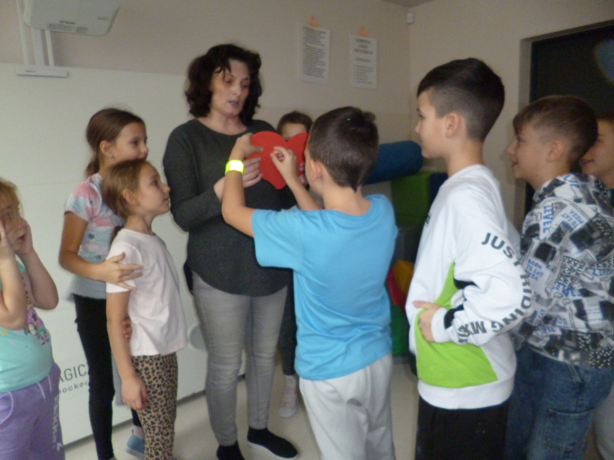 Uczniowie chętnie brali udział w zabawie „Gwiazdy prawdę powiedzą”, kręcąc kręglem wśród gwiazd z różnymi symbolami — palmami, różańcami, pieniędzmi czy innymi znakami szczęścia. Dodatkową atrakcją był rzut kośćmi i dodawanie cyfr, który pokazywał, co mogą im przynieść nadchodzące miesiące. Całym wróżbom towarzyszyła muzyka andrzejkowa, która dodawała energii i podkreślała radosny, nastrój wydarzenia.