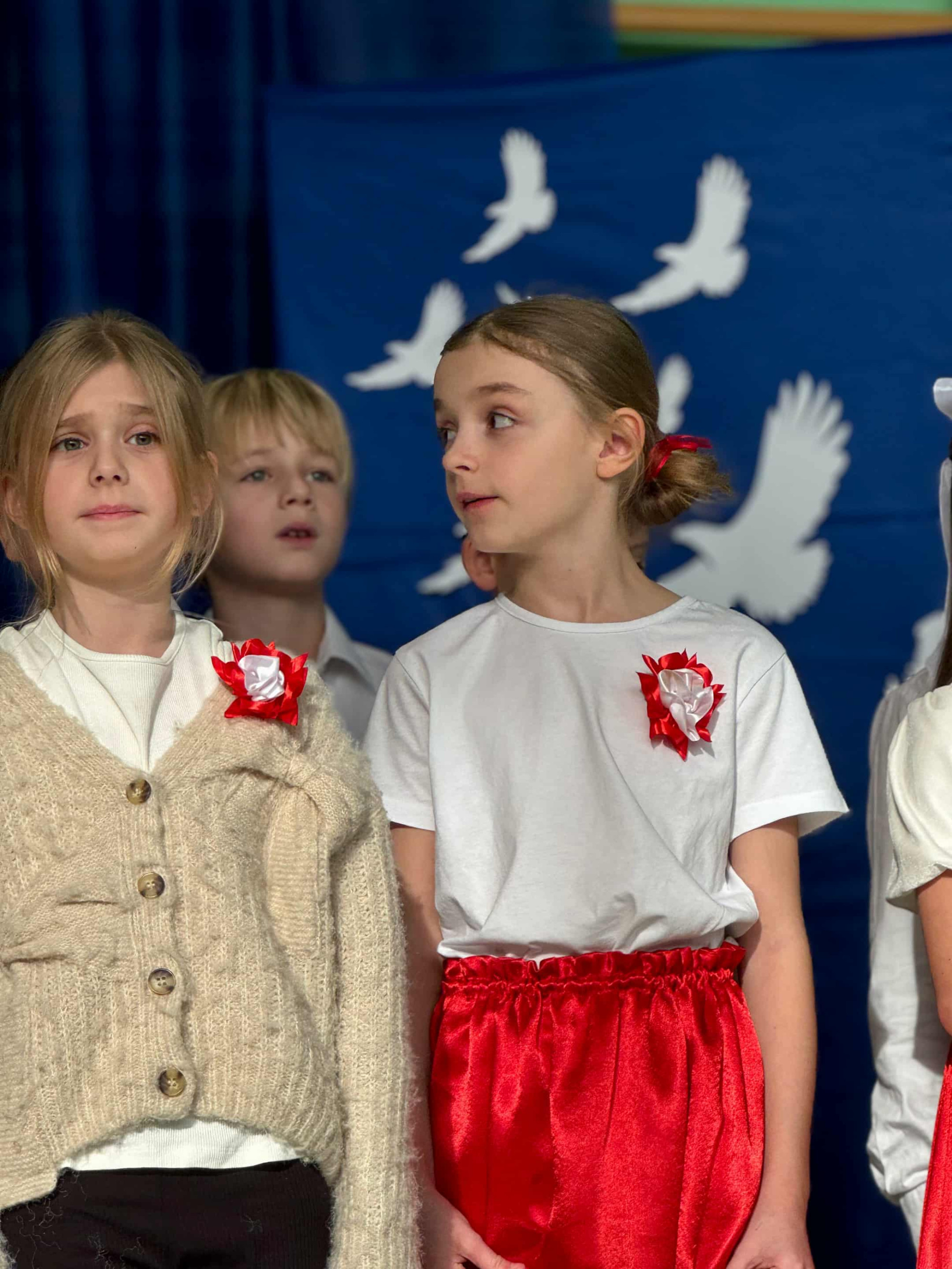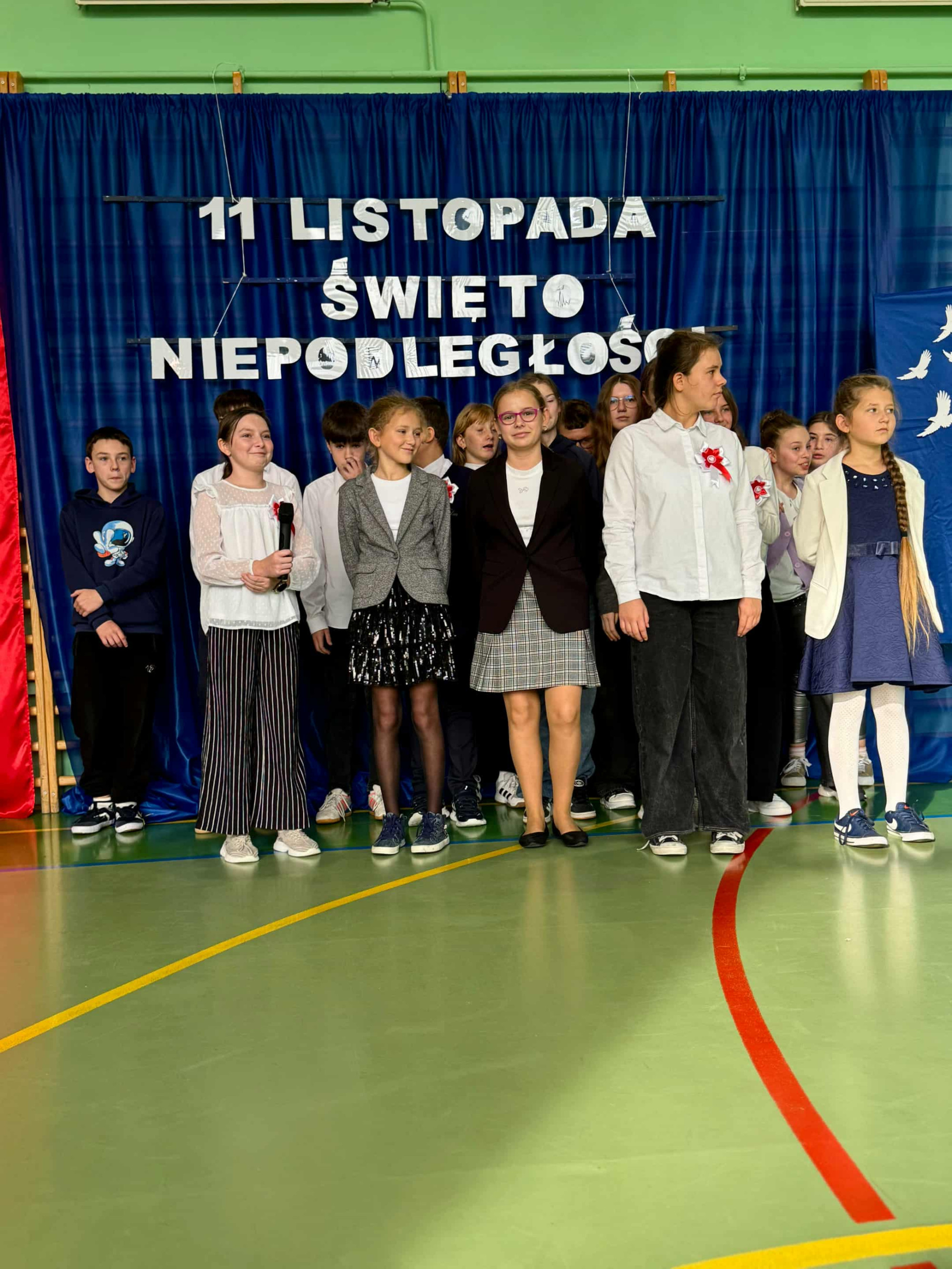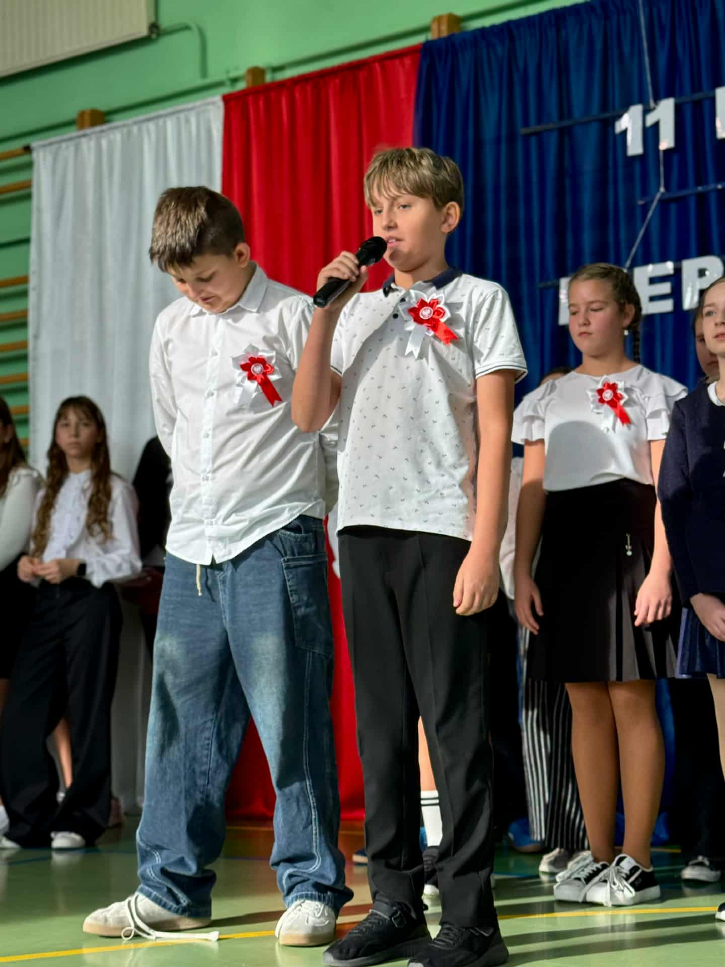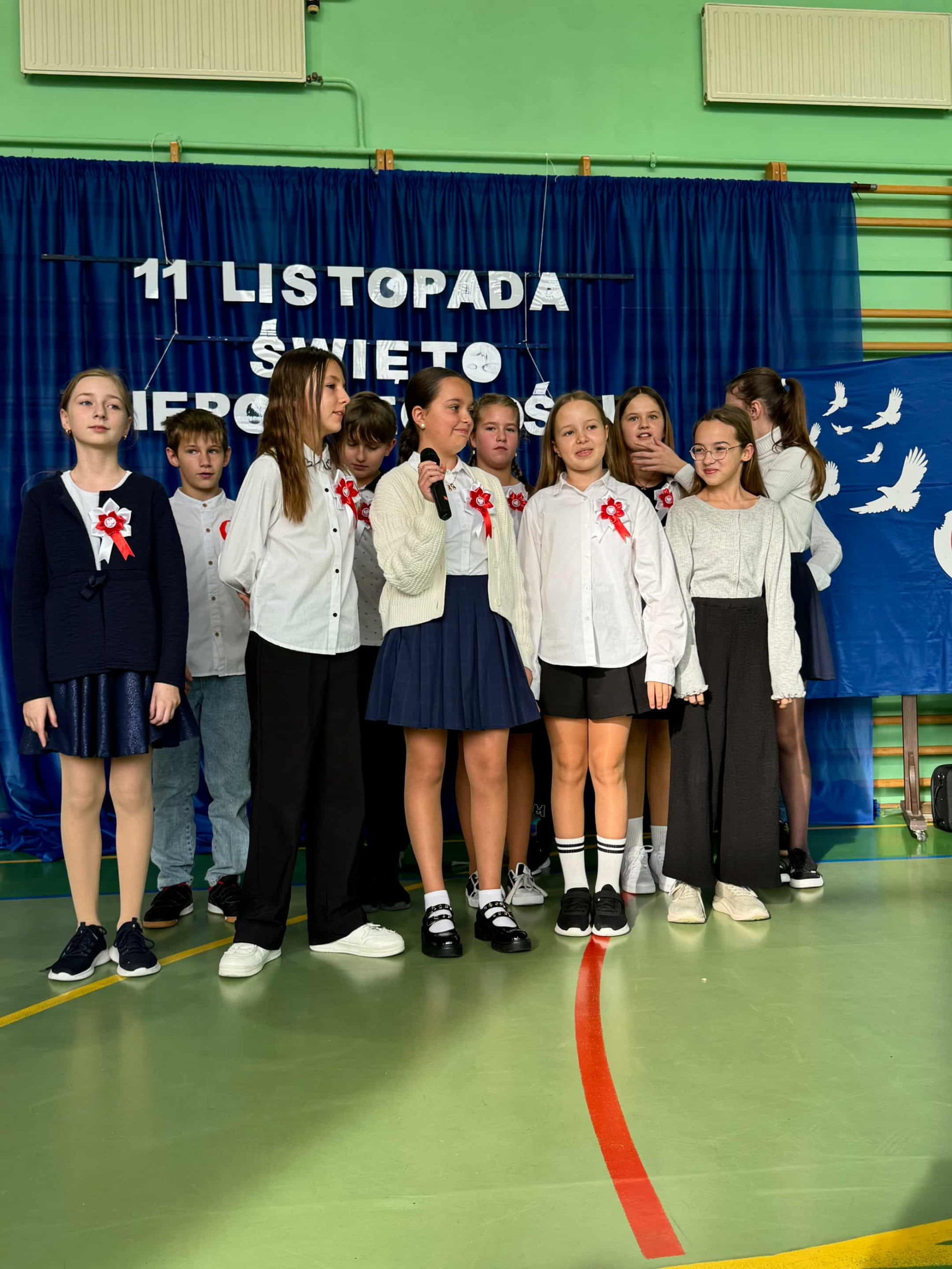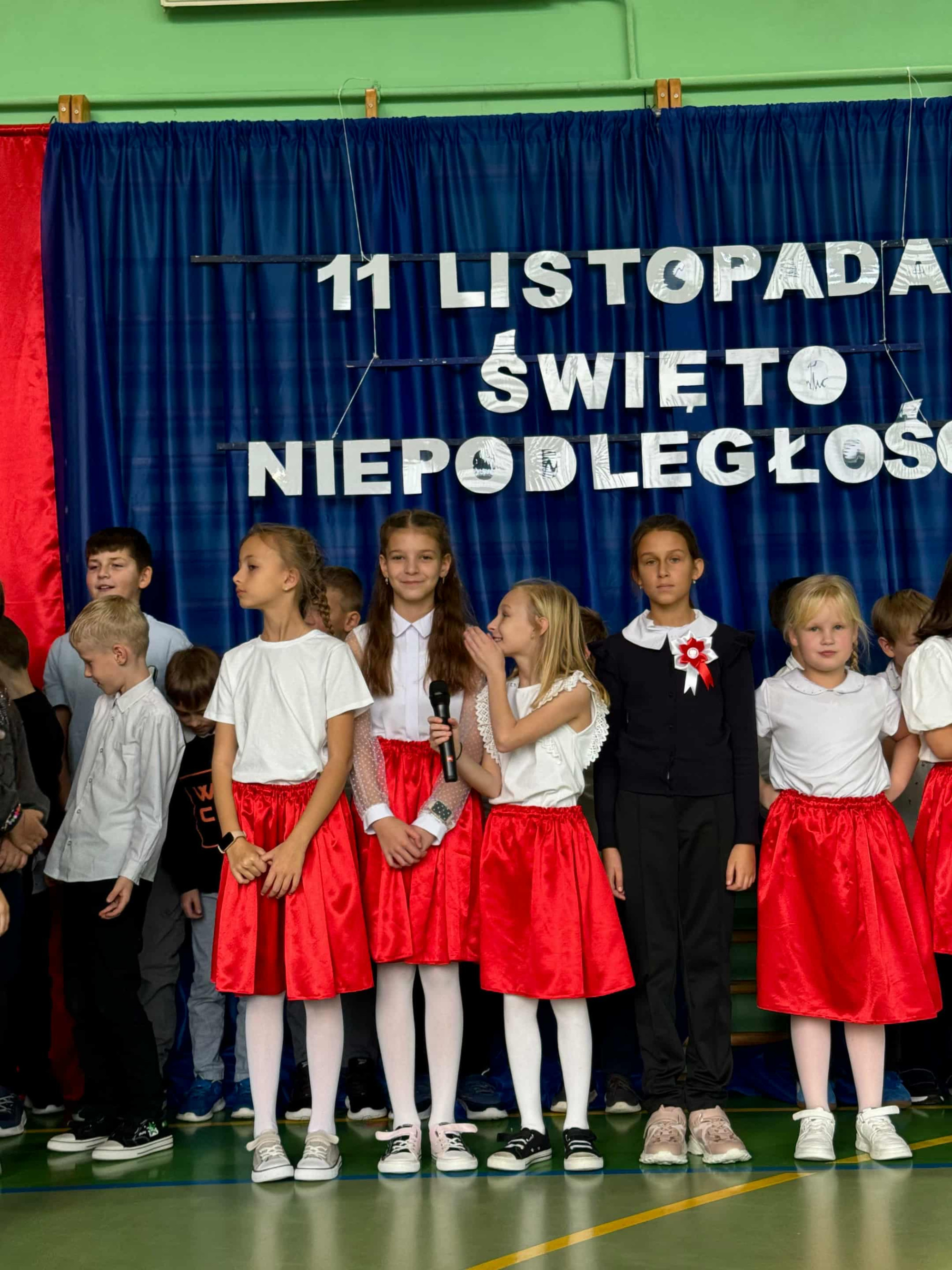 17.11.2025, Kategoria: Edukacja W czwartek 13 listopada odbyła się uroczysta akademia z okazji 107 rocznicy odzyskania przez Polskę niepodległości. Uczniowie klas 4,5 i 6 przygotowali program artystyczny, w którym zaprezentowali wiersze. O oprawę muzyczną zadbał szkolny chór. Następnie każda klasa odśpiewała wcześniej przygotowaną pieśń patriotyczną.