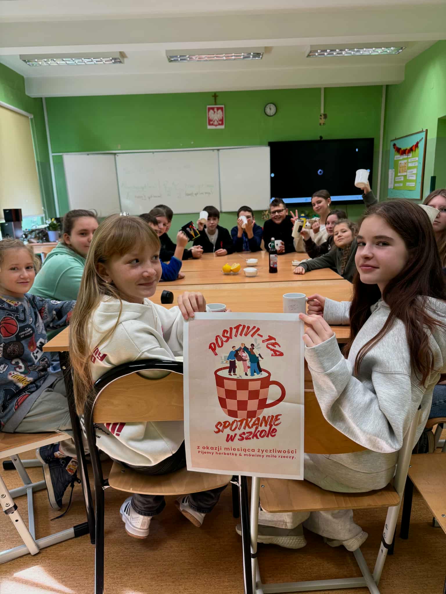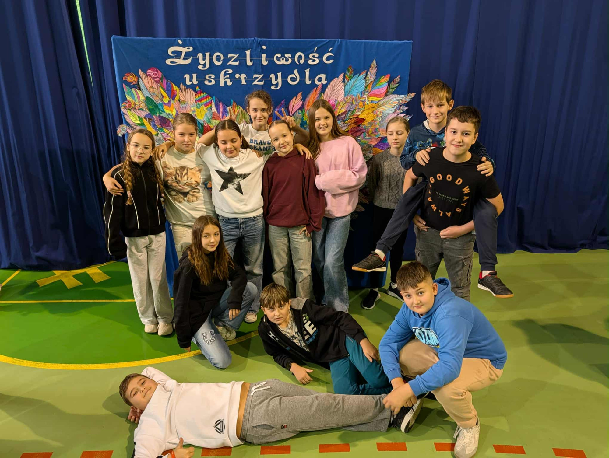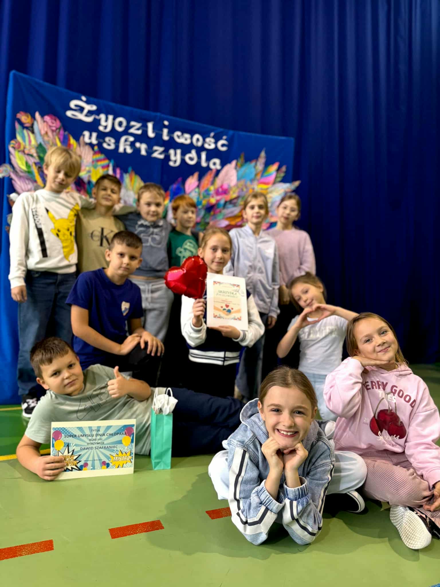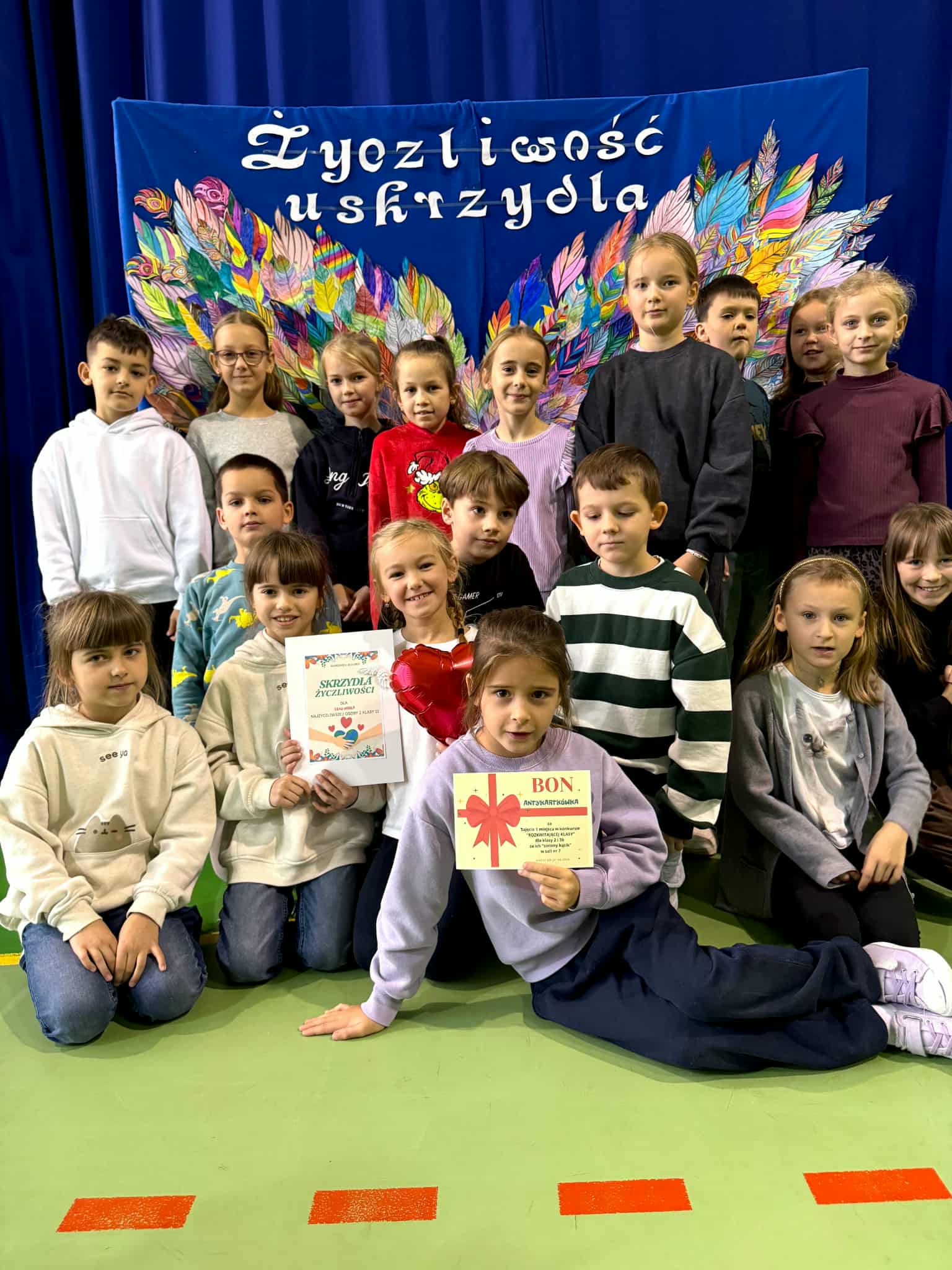 Michał z klasy 1, Lena z klasy 2, Michalina z klasy 3a, Wojciech z klasy 3b, Oliwia z klasy 4, Anna z klasy 5, Amelia z klasy 6, Aleksandra z klasy 7 i Kamil z klasy 8– dziękujemy, że codziennie pokazujecie, jak ważna jest życzliwość!