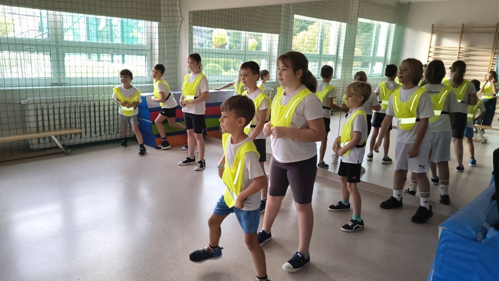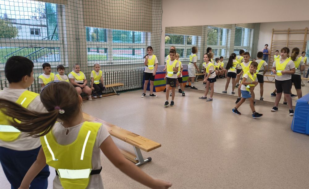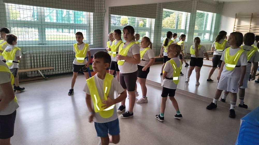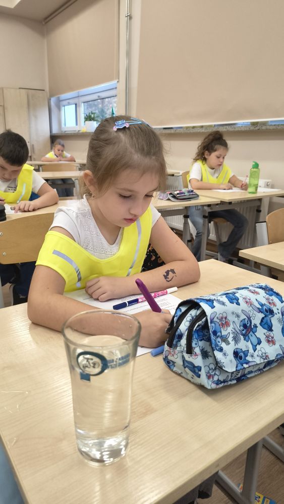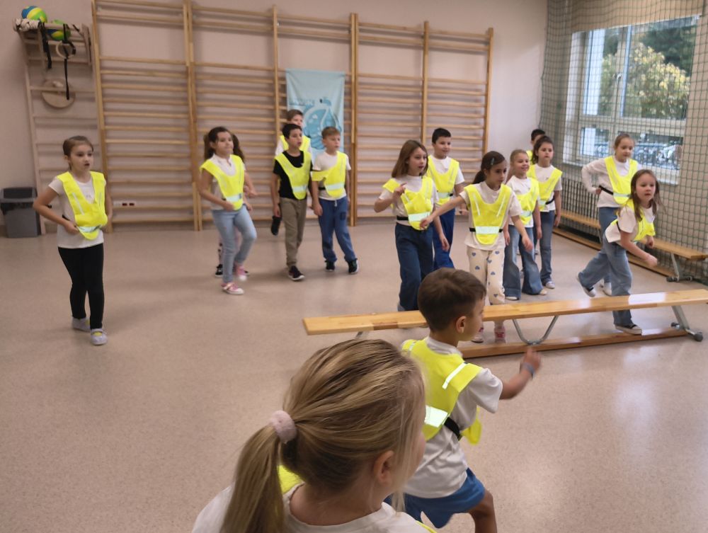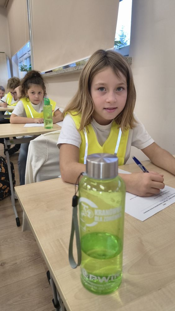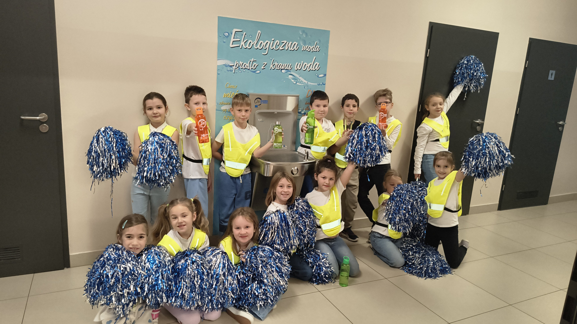 Uczniowie klas drugich dziś także mocno błyszczeli podczas zajęć, ponieważ otrzymali szelki odblaskowe, przekazane przez Przedsiębiorstwo Wodociągów i Kanalizacji w Oświęcimiu. Składamy serdeczne podziękowania Prezesowi Kazimierzowi Homa oraz Pracownikom PWiK za okazaną nam życzliwość i zrozumienie działań na rzecz poprawy bezpieczeństwa naszych uczniów. Po rozgrywkach sportowych drugoklasiści chętnie skorzystali z poidełka wody pitnej zamontowanego na korytarzu szkolnym. Oświęcimskie Wodociągi dbają od lat, by woda w poidełku była zdrowa, bo woda to skarb najcenniejszy. „Kranówka dla zdrówka” przydała się także podczas pisania testu wiedzy o bezpieczeństwie w ruchu drogowym.