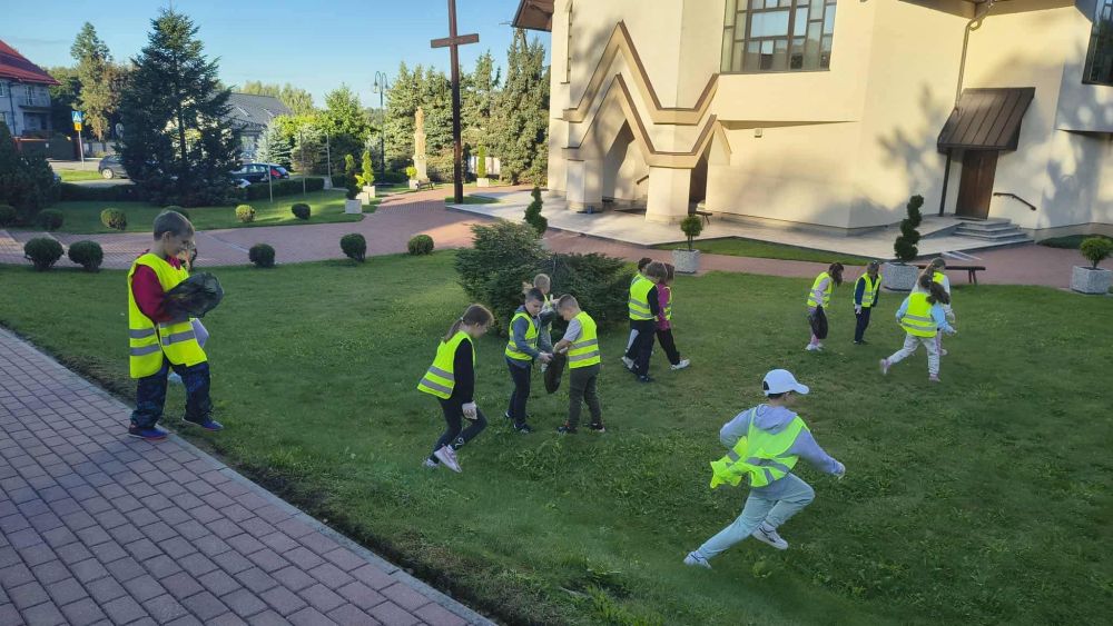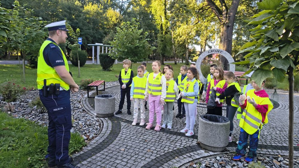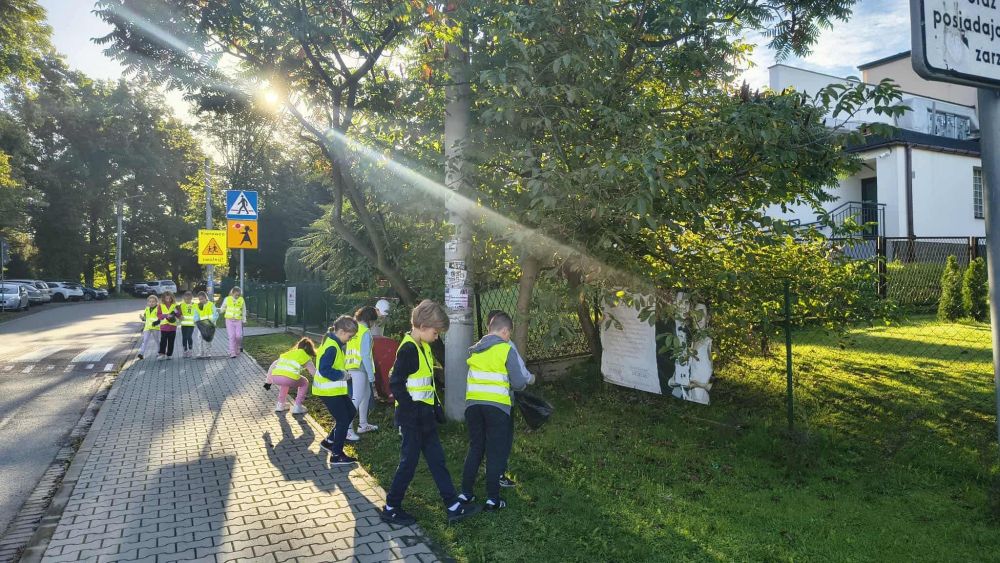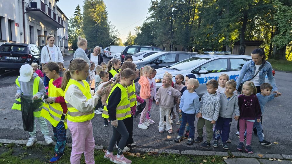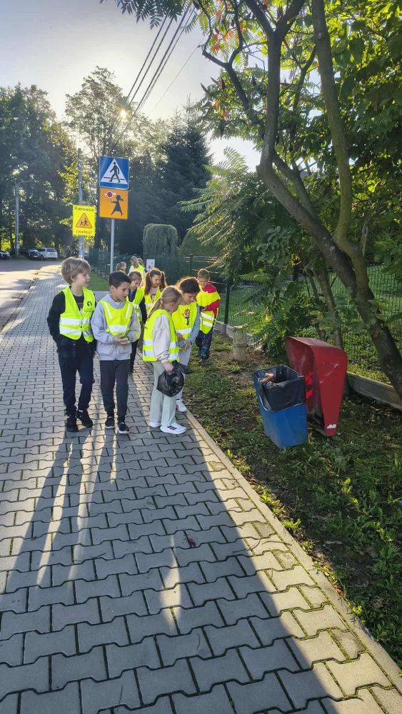 Z zapałem porządkowaliśmy okolicę, zbierając śmieci i pokazując, że dbanie o środowisko zaczyna się od nas samych. Tegoroczna edycja miała jednak podwójne przesłanie – oprócz działań proekologicznych promowaliśmy także bezpieczeństwo na drodze. Dzięki odblaskowym kamizelkom, opaskom i brelokom uczniowie świecili przykładem – dosłownie i w przenośni! Nasze starania zostały docenoine przez przedstwicieli Policji, których nieoczekiwanie drugoklasiści spotkali podczas patrolu. Pan Policjant przypomniał nam o zasadach bezpiecznego poruszania się w przestrzeni publicznej. Później wspólnie zachęciliśmy do noszenia odblasków wybierających się na wycieczkę przedszkolaków.