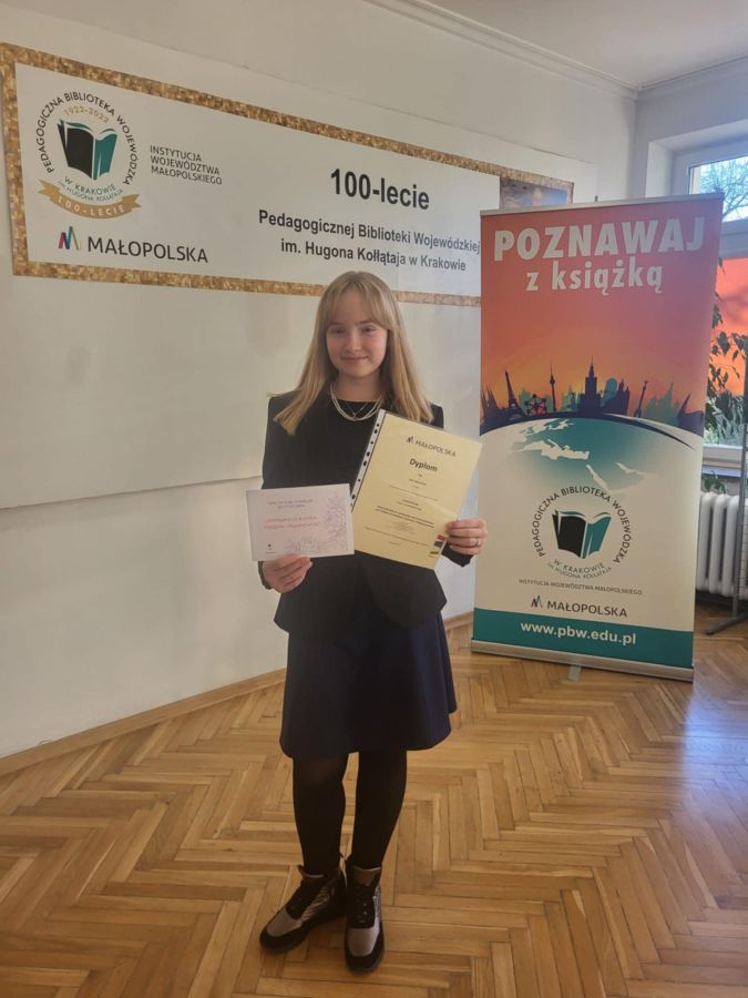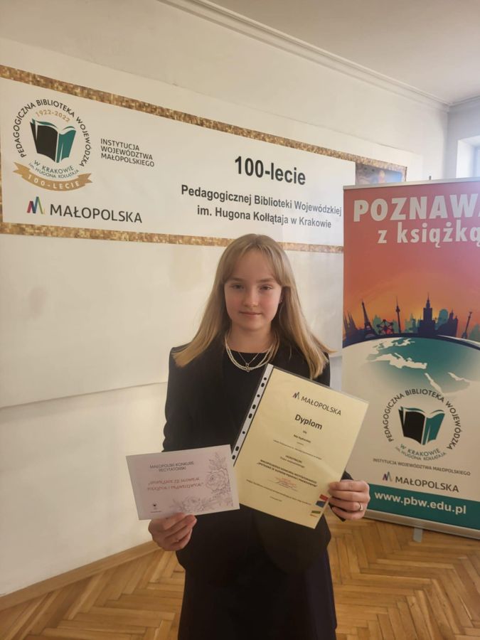 Naszej utalentowanej recytatorce składamy serdeczne gratulacje oraz życzymy dalszych sukcesów na kolejnych etapach jej artystycznej drogi. Jesteśmy przekonani, że to dopiero pierwszy, lecz niezwykle znaczący krok w jej przyszłej karierze.