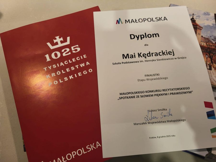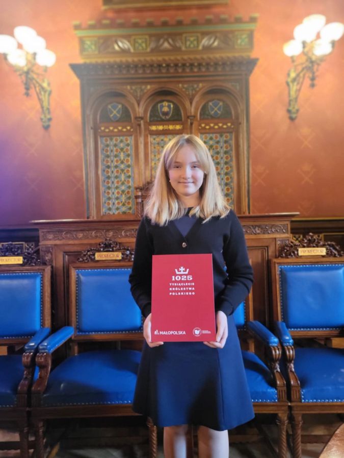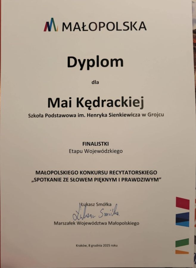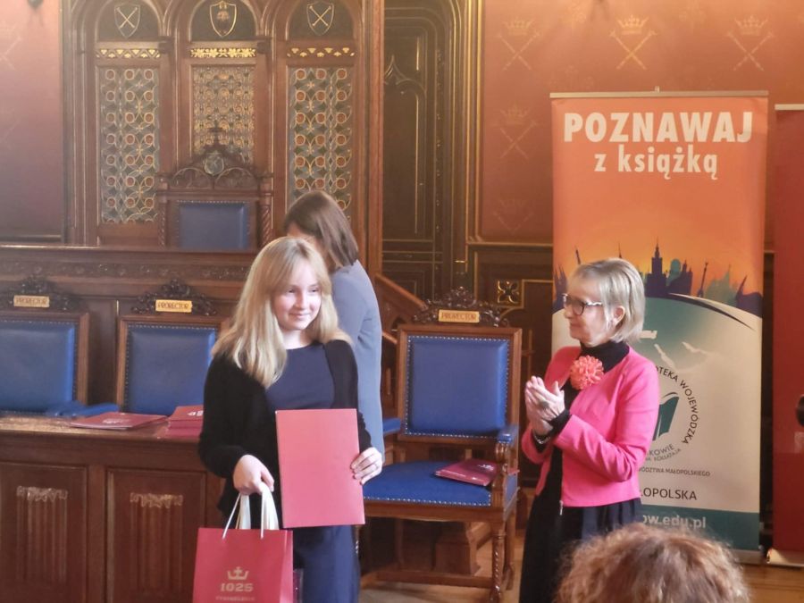 Maja dołączyła tym samym do elitarnego grona sześćdziesięciu najzdolniejszych młodych recytatorów z całego województwa małopolskiego. Honorowy patronat nad wydarzeniem objęła Pani Gabriela Olszowska – Małopolski Kurator Oświaty, a także Departament Edukacji Urzędu Marszałkowskiego Województwa Małopolskiego.