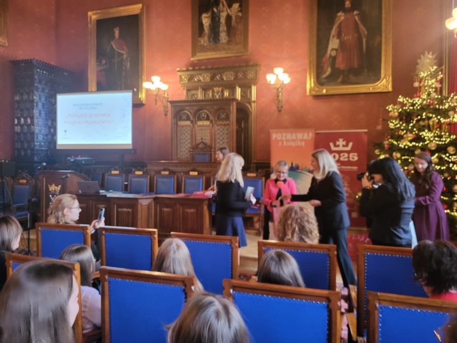 Podczas uroczystej gali Pani Marta Truszczyńska – Wicedyrektor Biblioteki Pedagogicznej w Krakowie – wręczyła finalistom dyplomy oraz nagrody, zaś Pani Agata Ślazyk, artystka kabaretu Piwnica pod Baranami, uświetniła wydarzenie wyjątkowym, poruszającym występem.